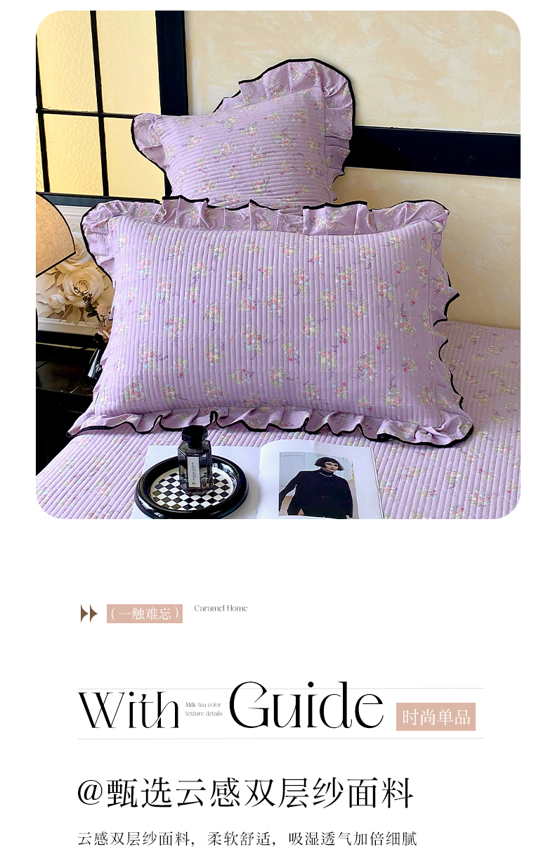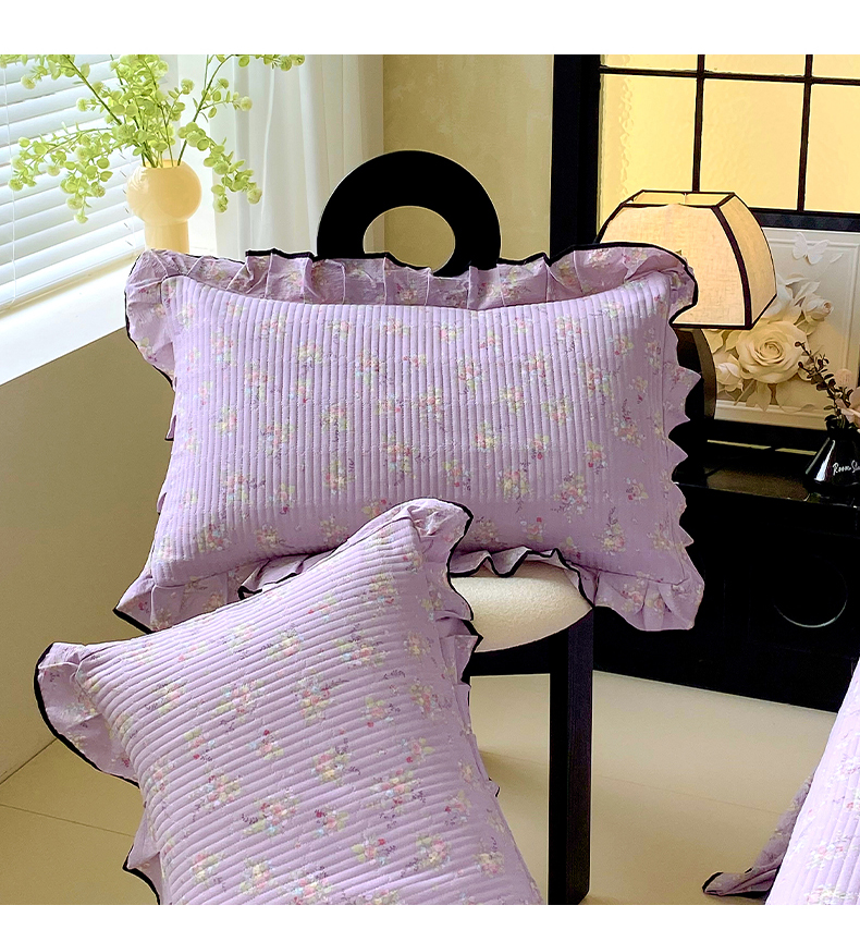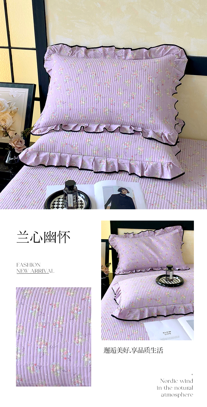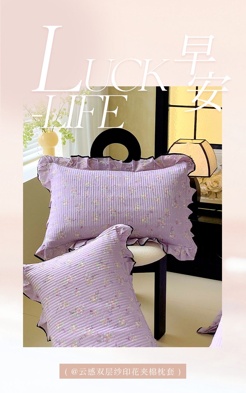 商品名称:雨彤家纺 2025新款A类云感公主风双层纱印花夹棉花边款枕套 兰心幽怀-公主风