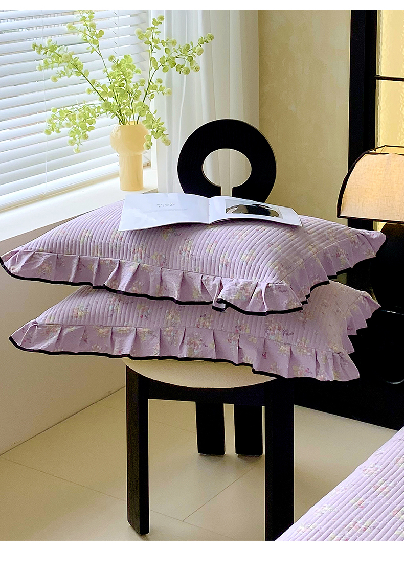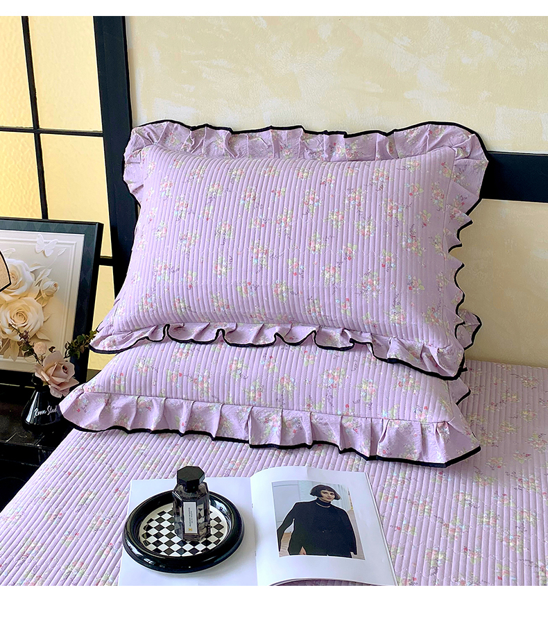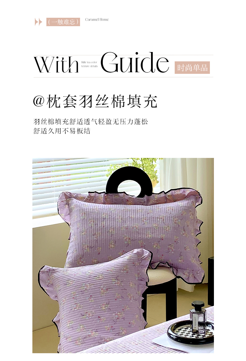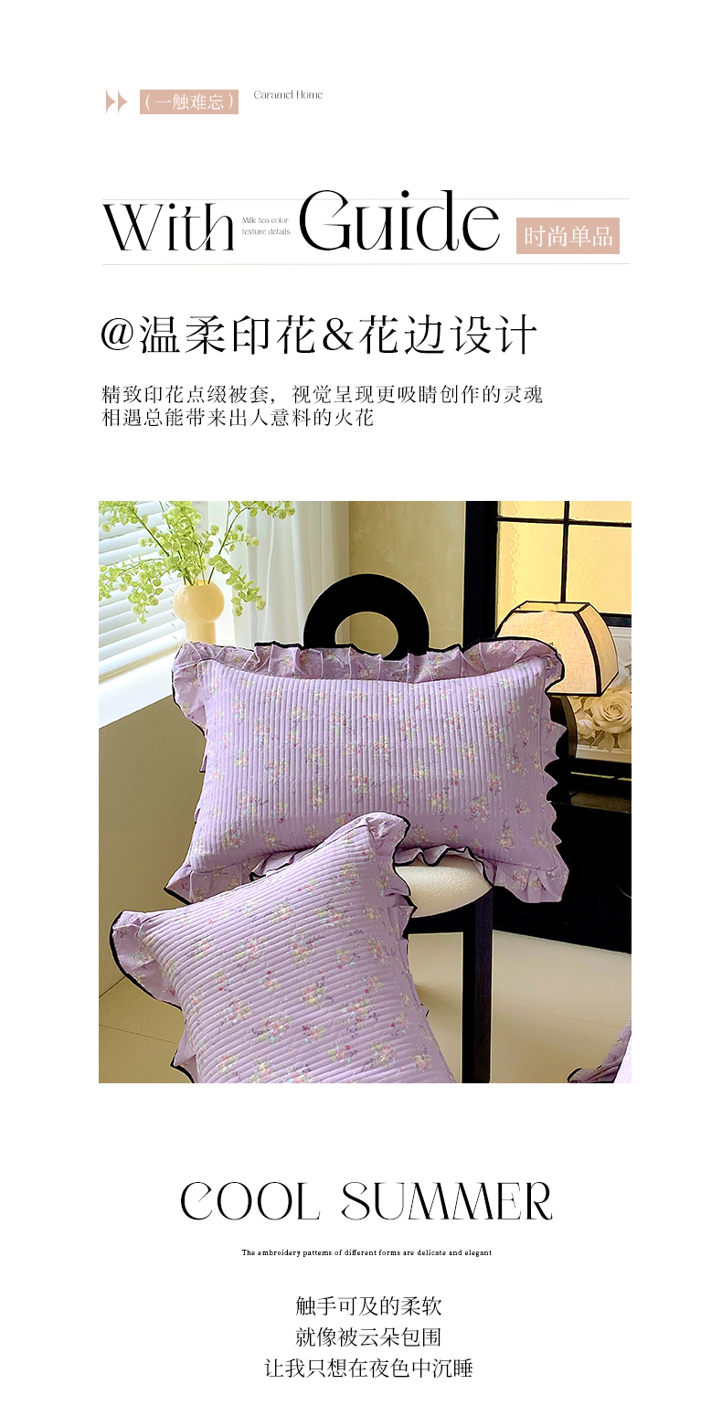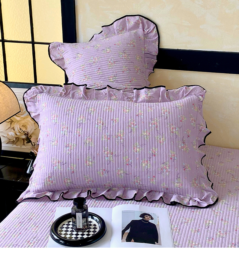 商品名称:雨彤家纺 2025新款A类云感公主风双层纱印花夹棉花边款枕套 兰心幽怀-公主风
