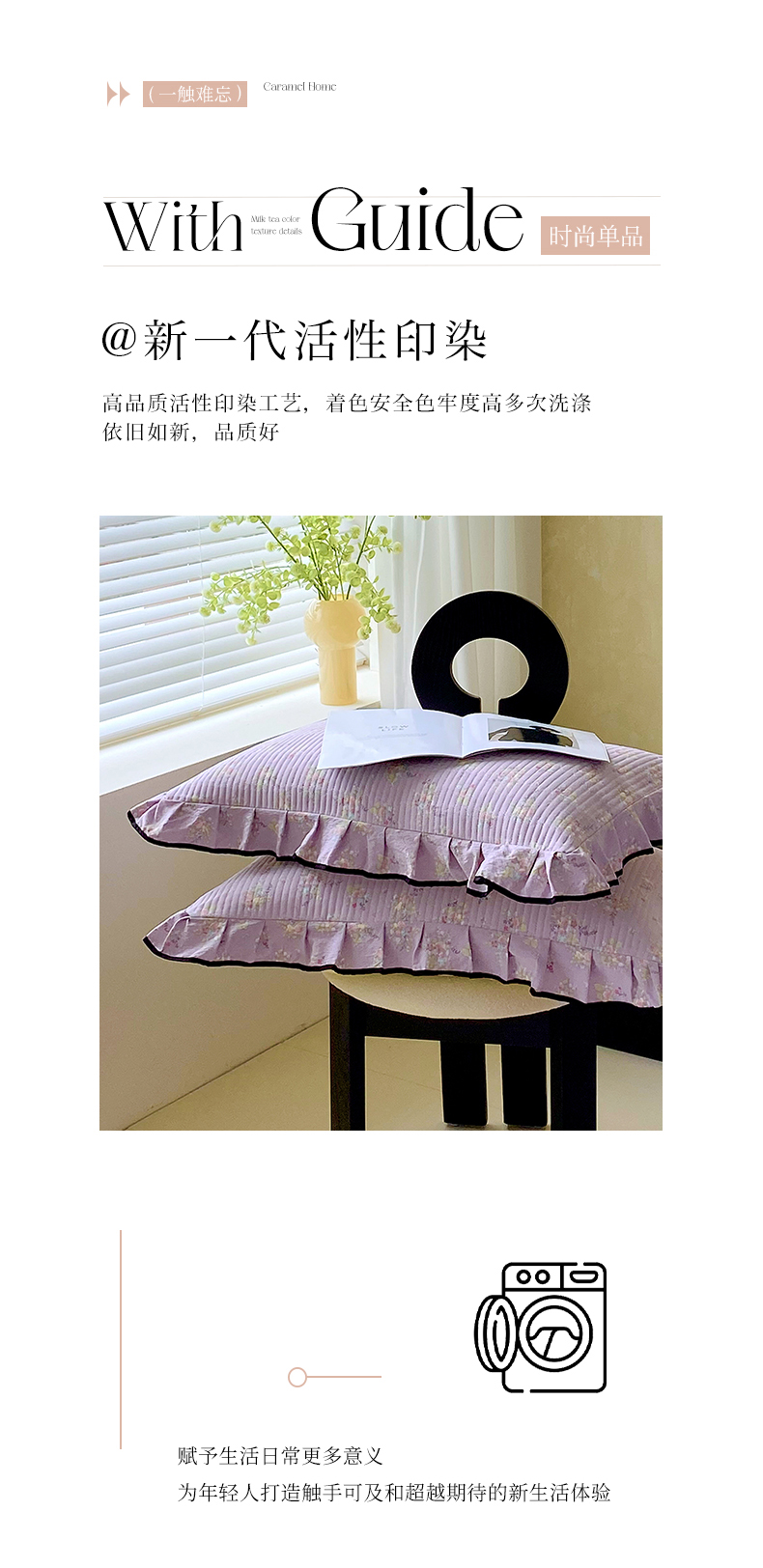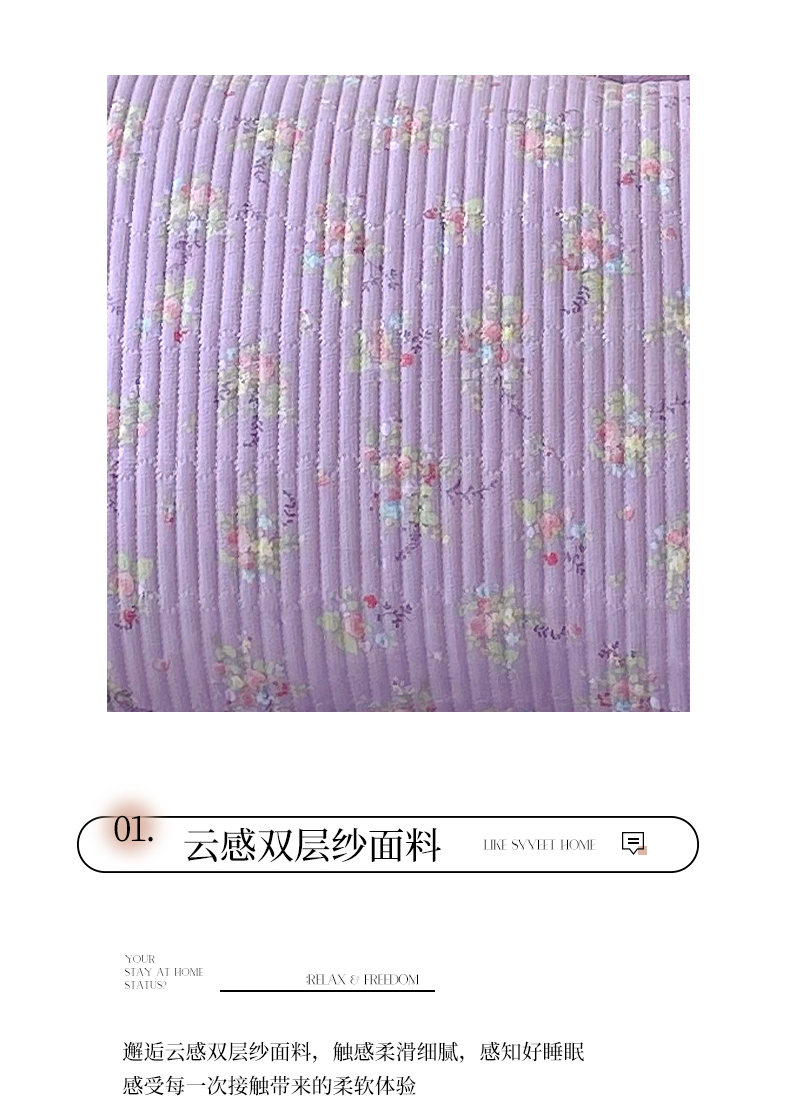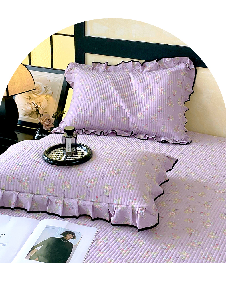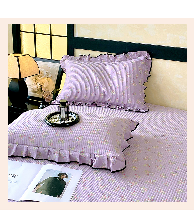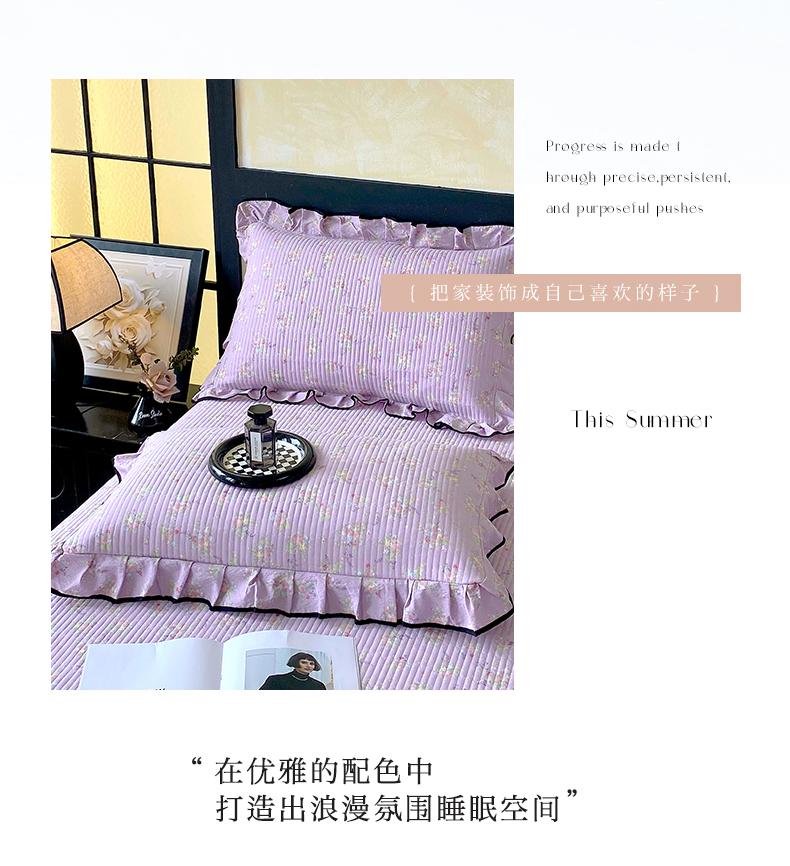 商品名称:雨彤家纺 2025新款A类云感公主风双层纱印花夹棉花边款枕套 兰心幽怀-公主风