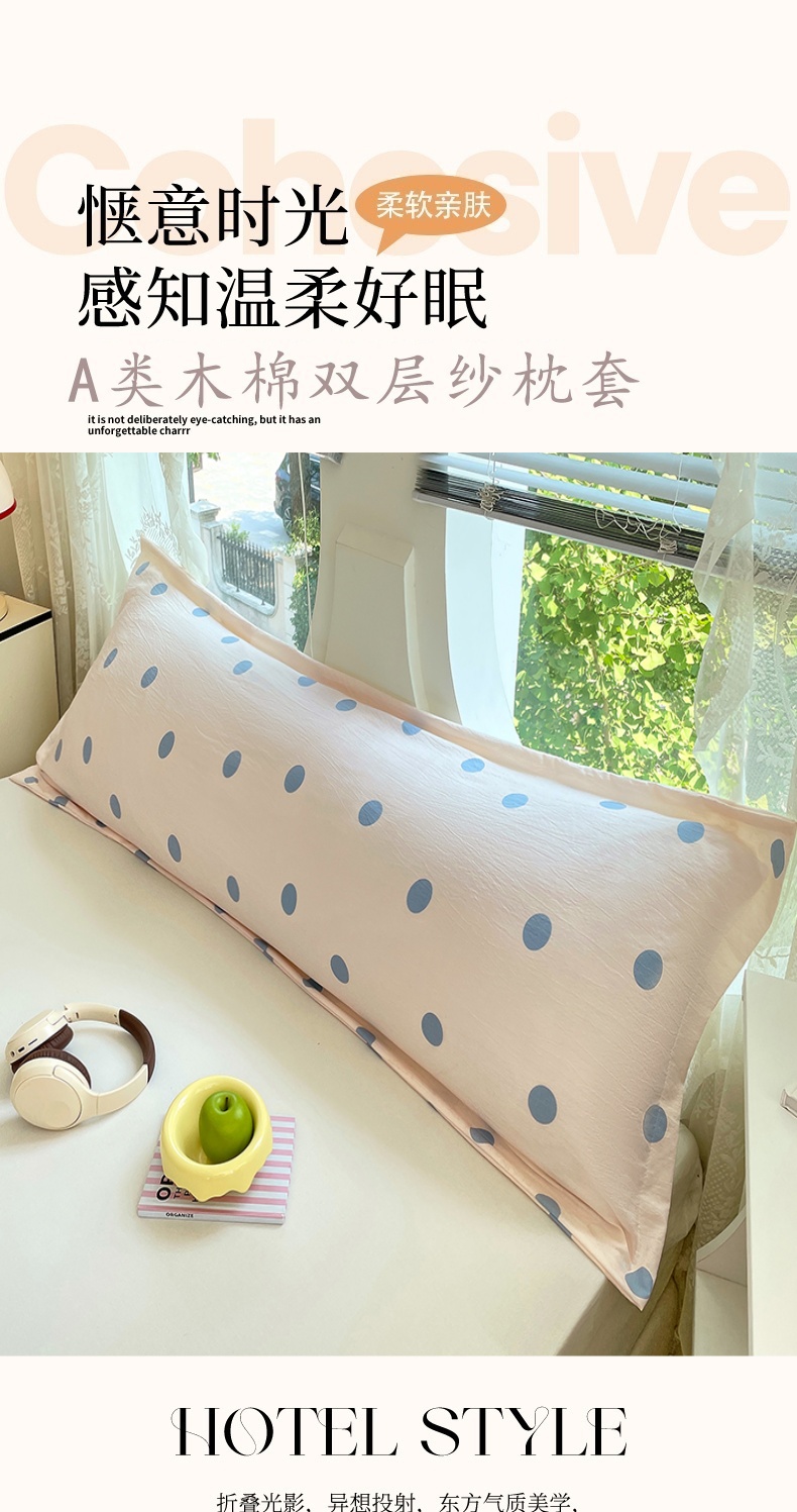 梦舒羽 2025新款双层纱双人枕套情侣学生长枕芯套枕头内胆套-缤纷波点 波点-浅天蓝