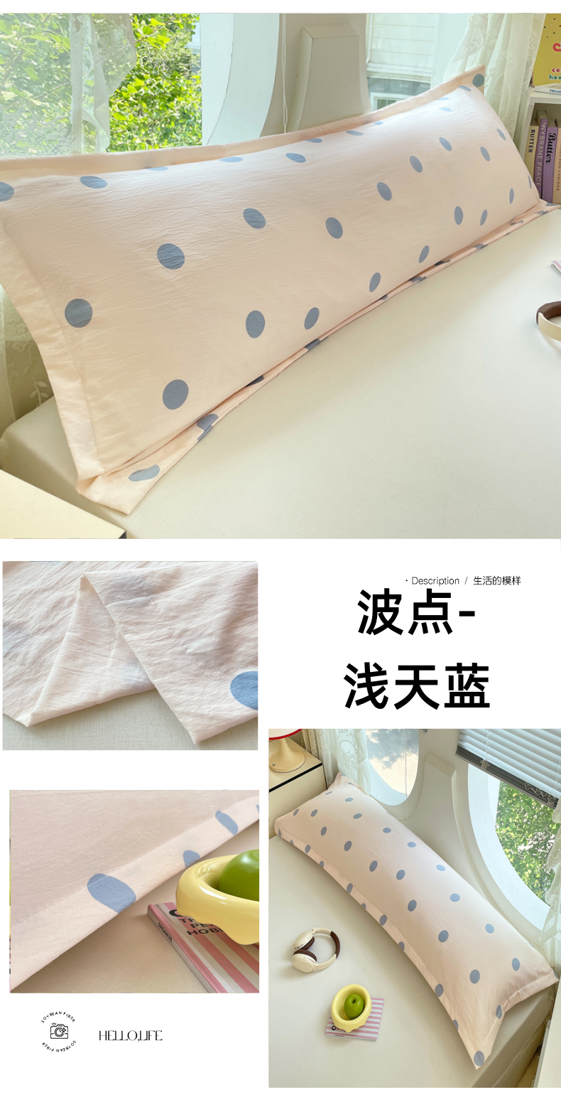 商品名称:梦舒羽 2025新款双层纱双人枕套情侣学生长枕芯套枕头内胆套-缤纷波点 波点-浅天蓝
