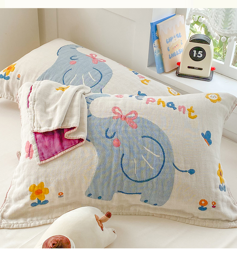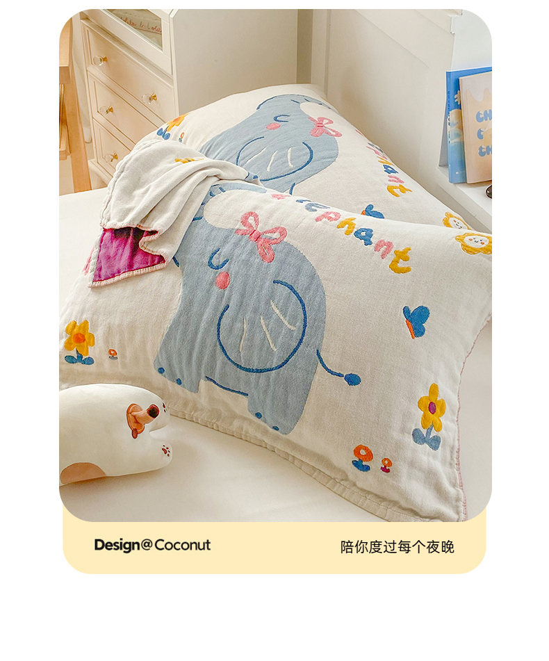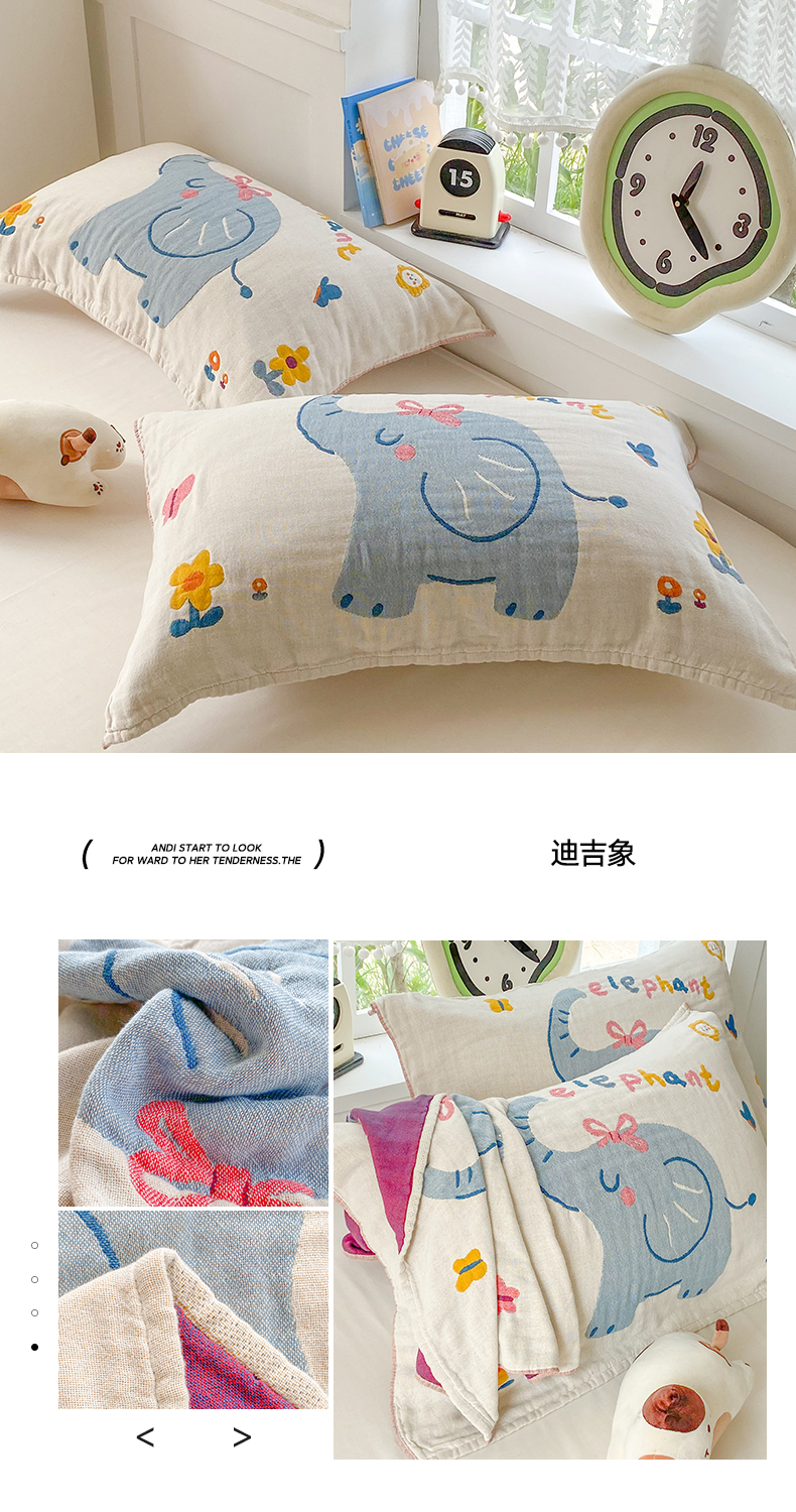 商品名称:美宜家2025新款全棉水洗纱布枕巾 迪吉象一对