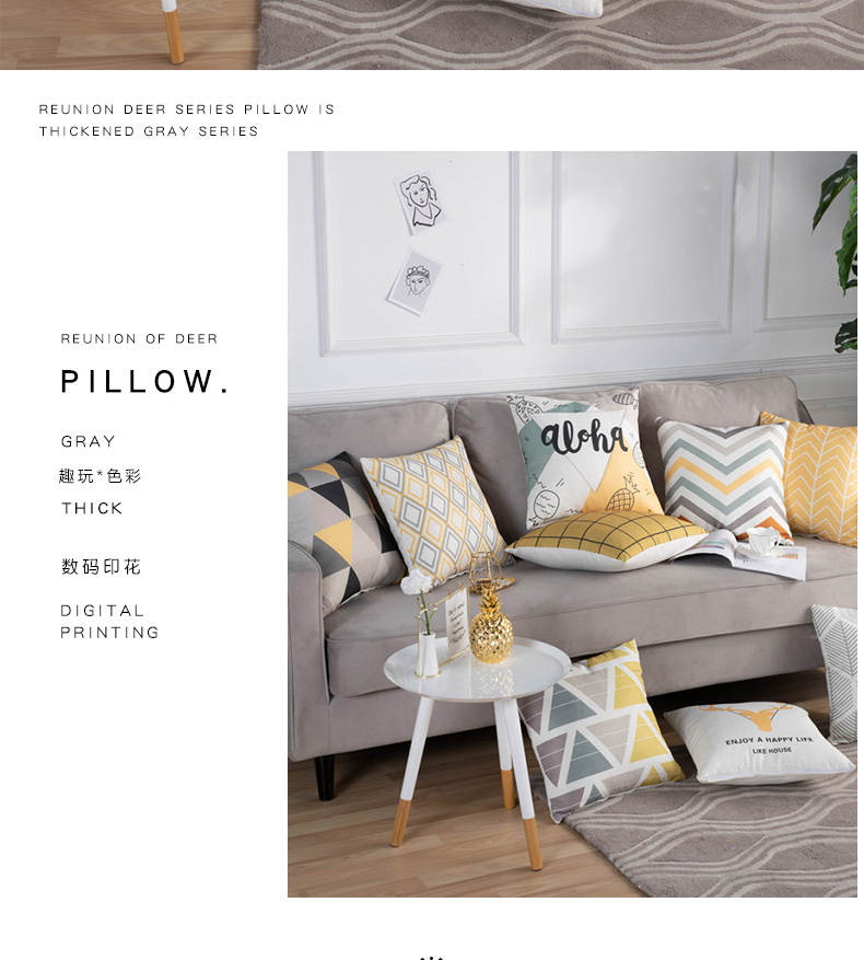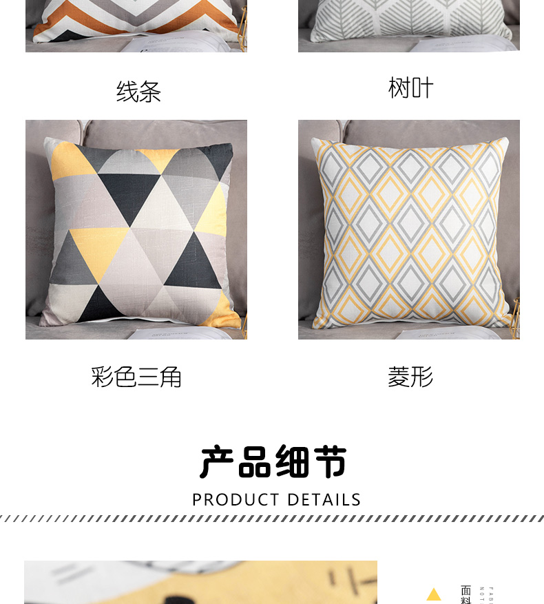 (总)新奇异 2025新款竹节麻抱枕靠垫 (支持定制),组合图仅供展示,菠萝,彩色三角,方格,箭头,立体三角,菱形,鹿头,树叶,线条