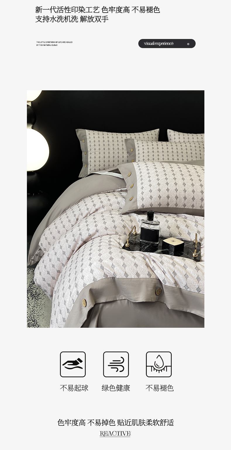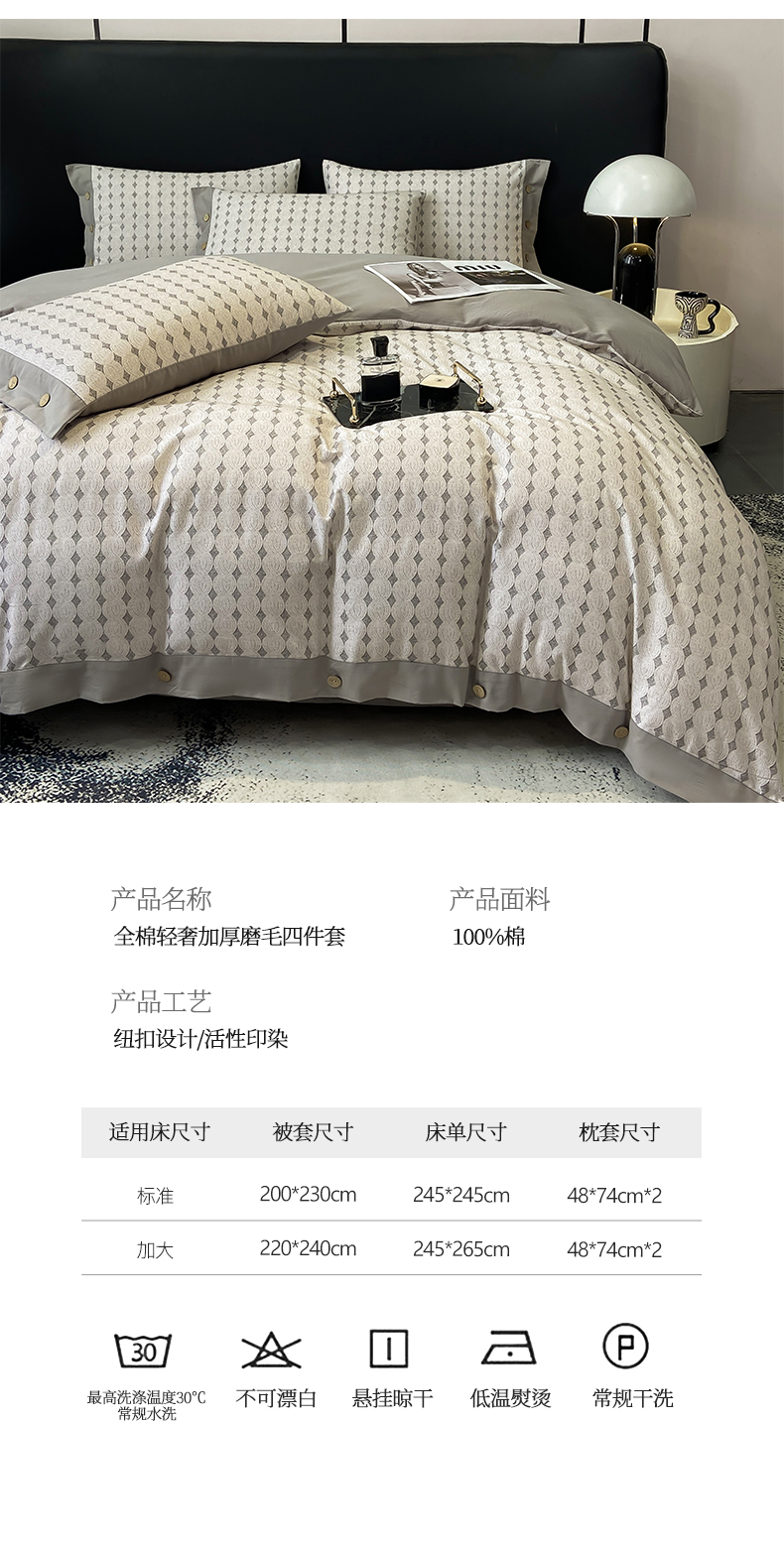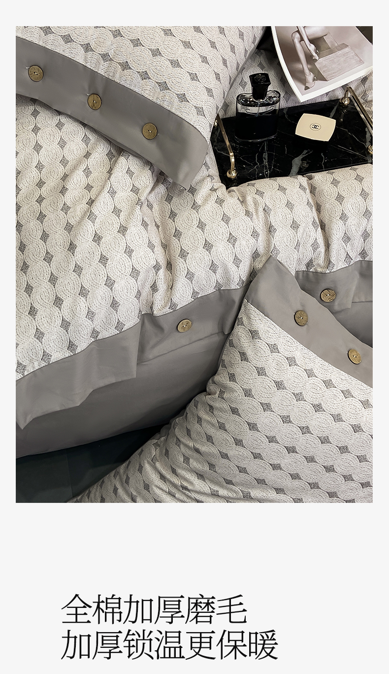 商品名称:慕希家纺 2025新款全棉纯棉轻奢加厚磨毛纽扣款四件套 拾光-灰
