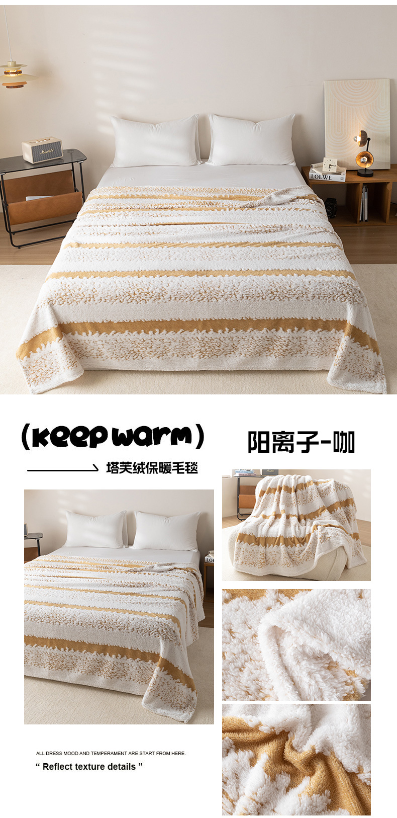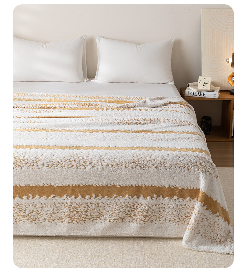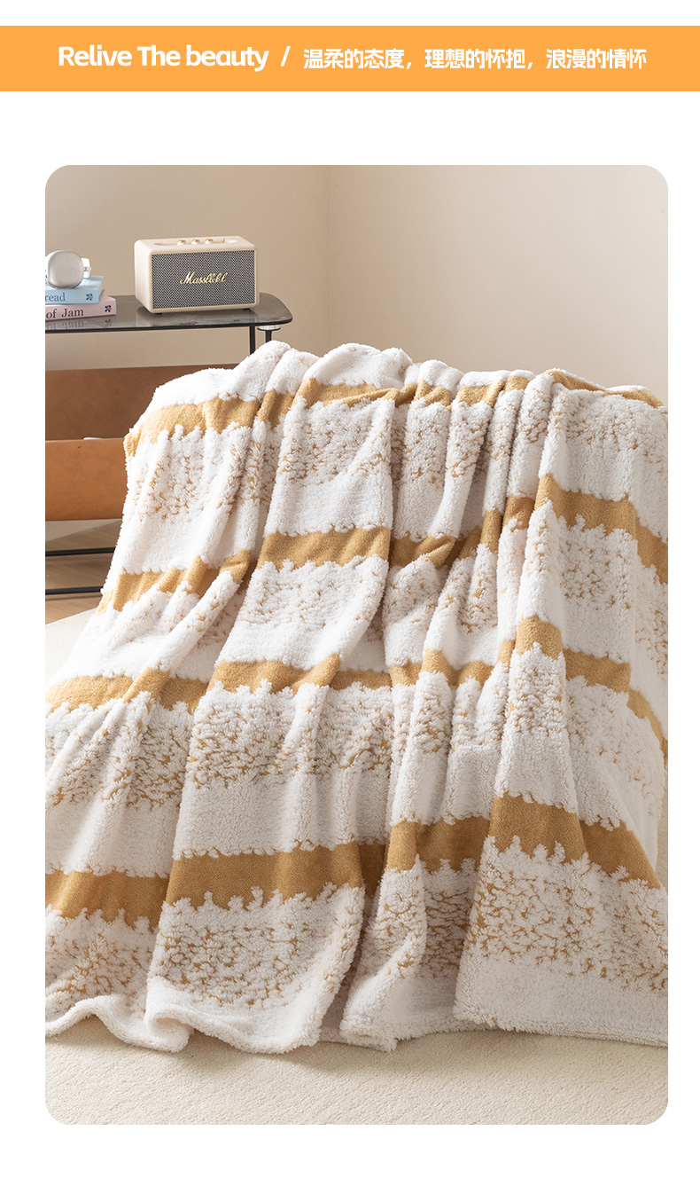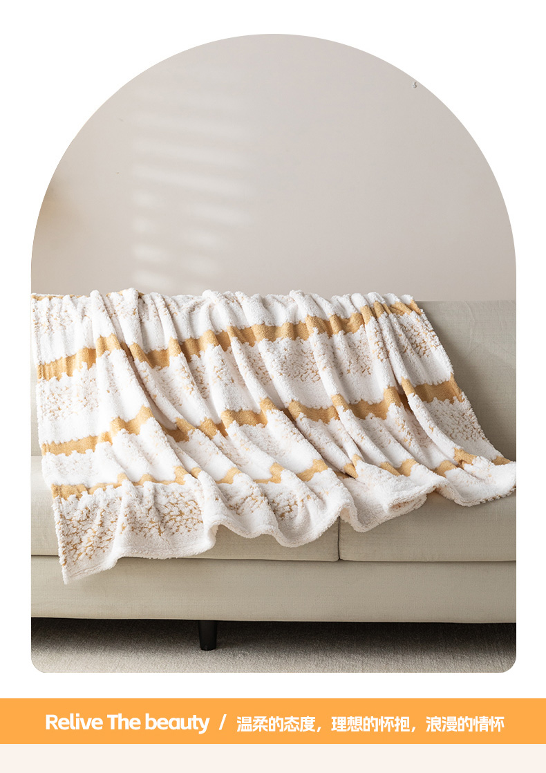 梵心家纺 2025新款阳离子双色提花毛毯清新条纹风简约时尚毯子毛毯-可供跨境电商 阳离子-咖