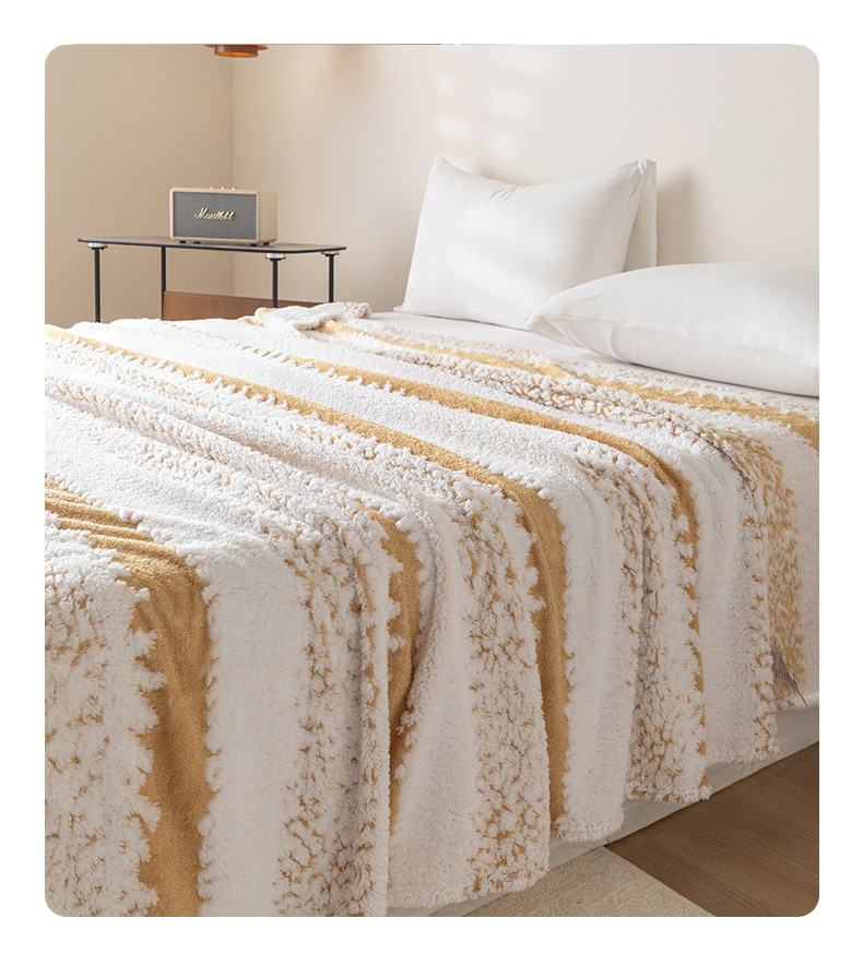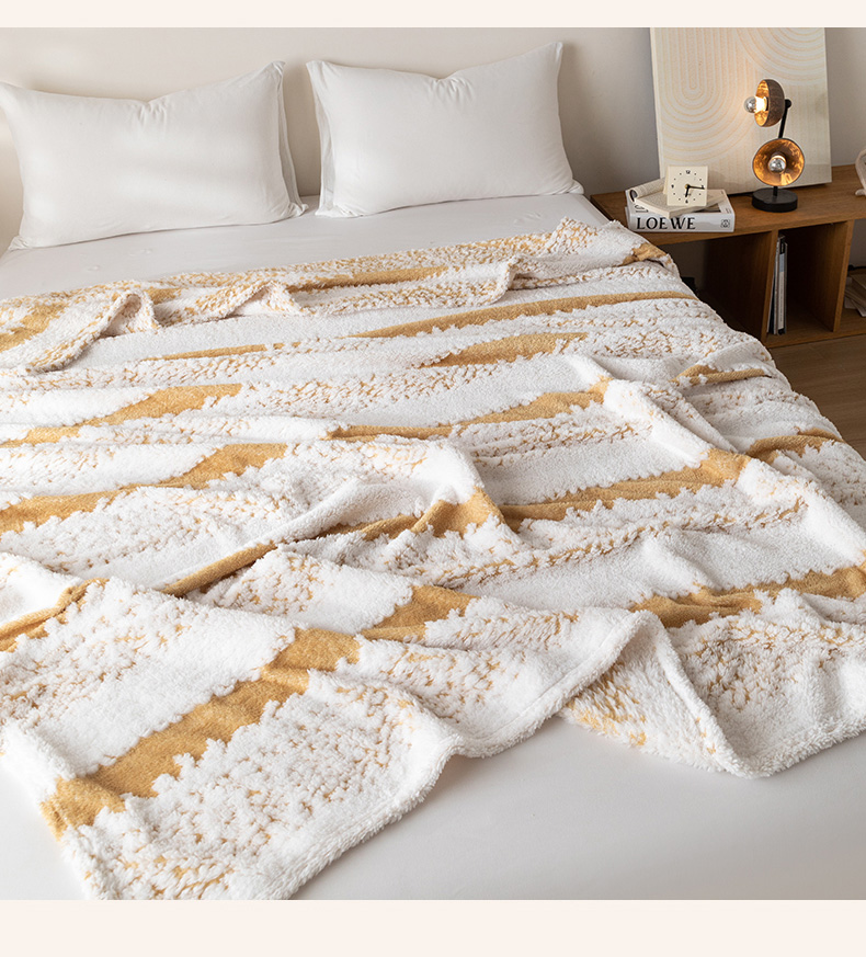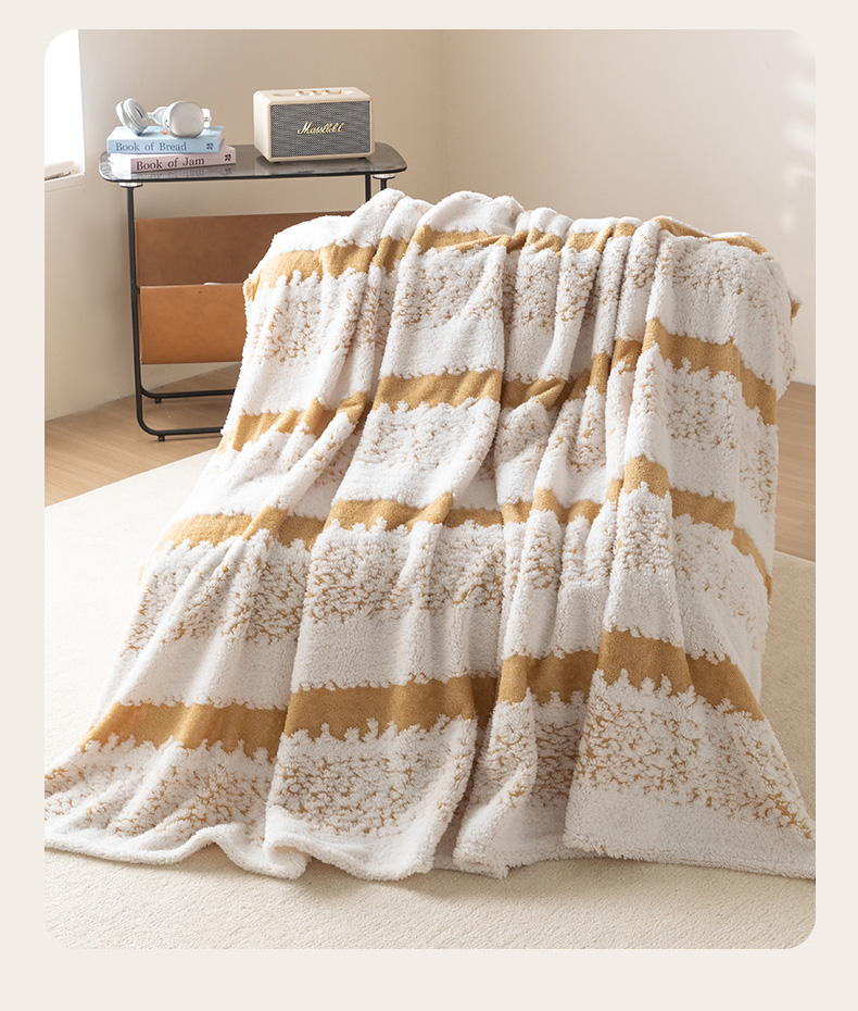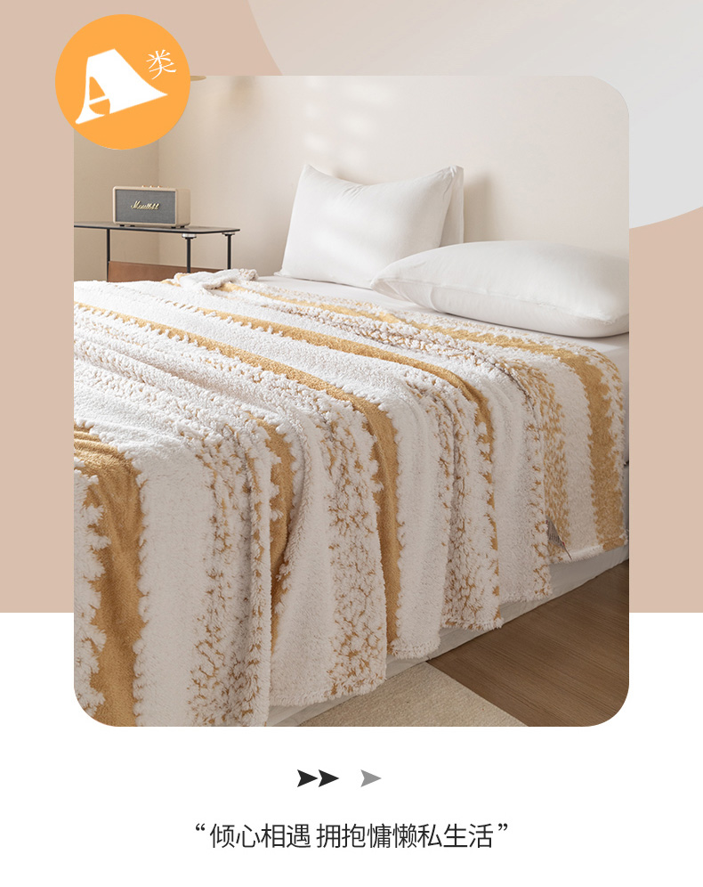 梵心家纺 2025新款阳离子双色提花毛毯清新条纹风简约时尚毯子毛毯-可供跨境电商 阳离子-咖