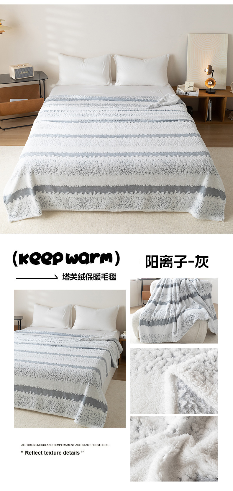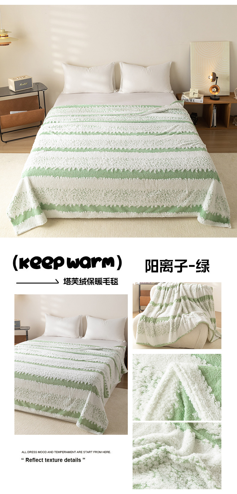 (总)梵心家纺 2025新款塔芙绒三层提花毛毯舒棉绒剪花双面毯子盖毯320g高克重毛毯-直播跨境电商,组合图仅供展示,抹茶绿,浅棕色,松露灰,香草米,香芋紫,星云蓝