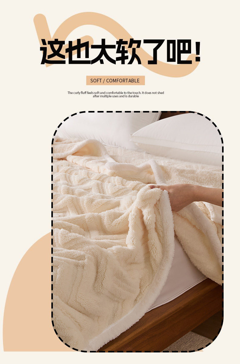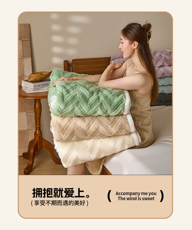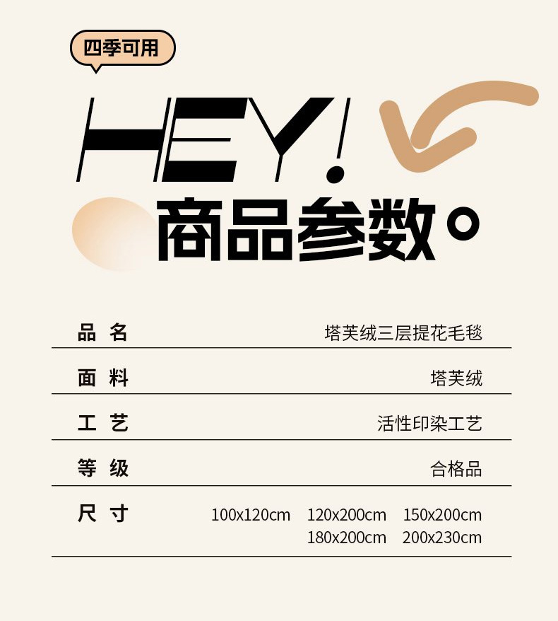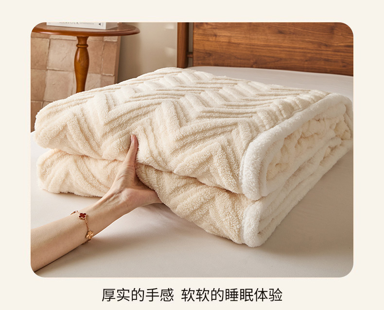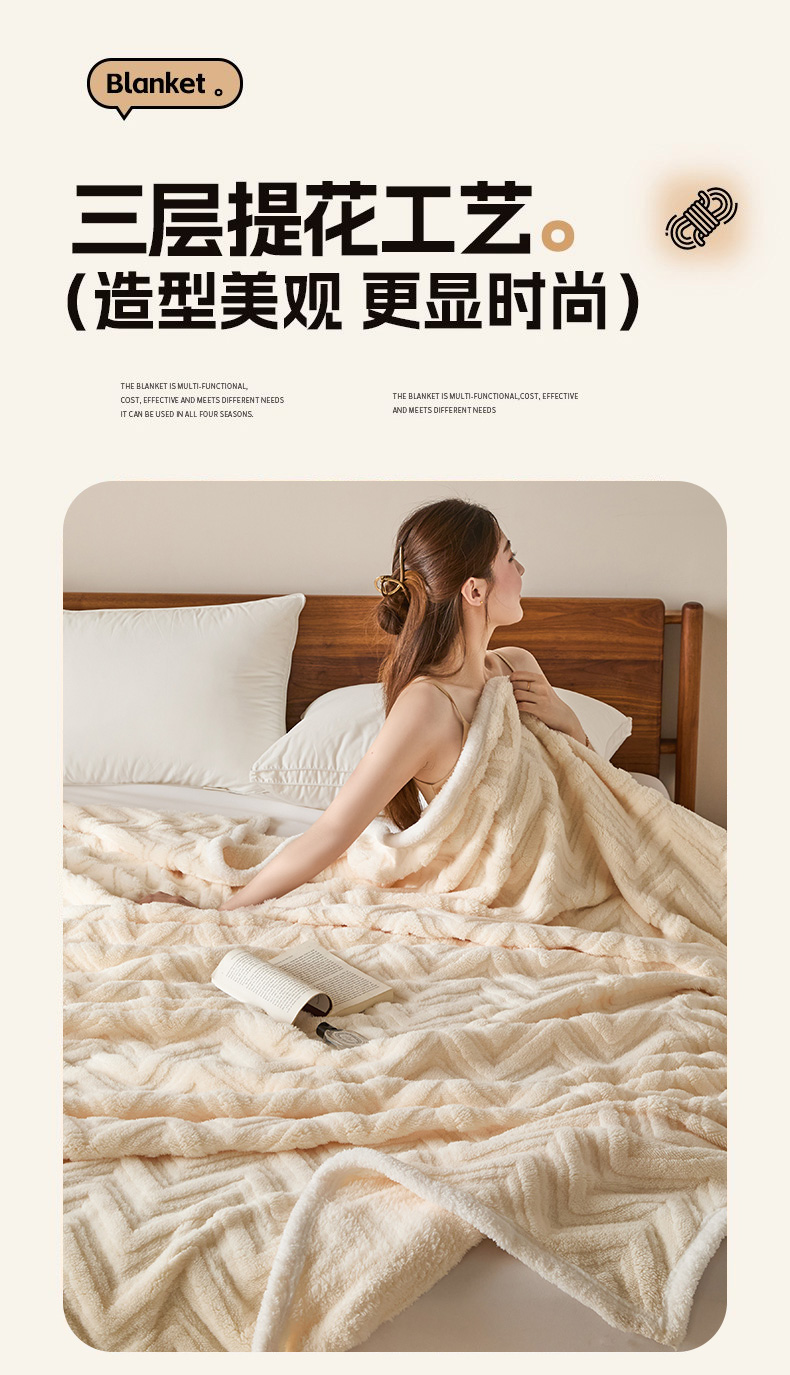 商品名称:梵心家纺 2025新款塔芙绒三层提花毛毯舒棉绒剪花双面毯子盖毯320g高克重毛毯-直播跨境电商 香草米