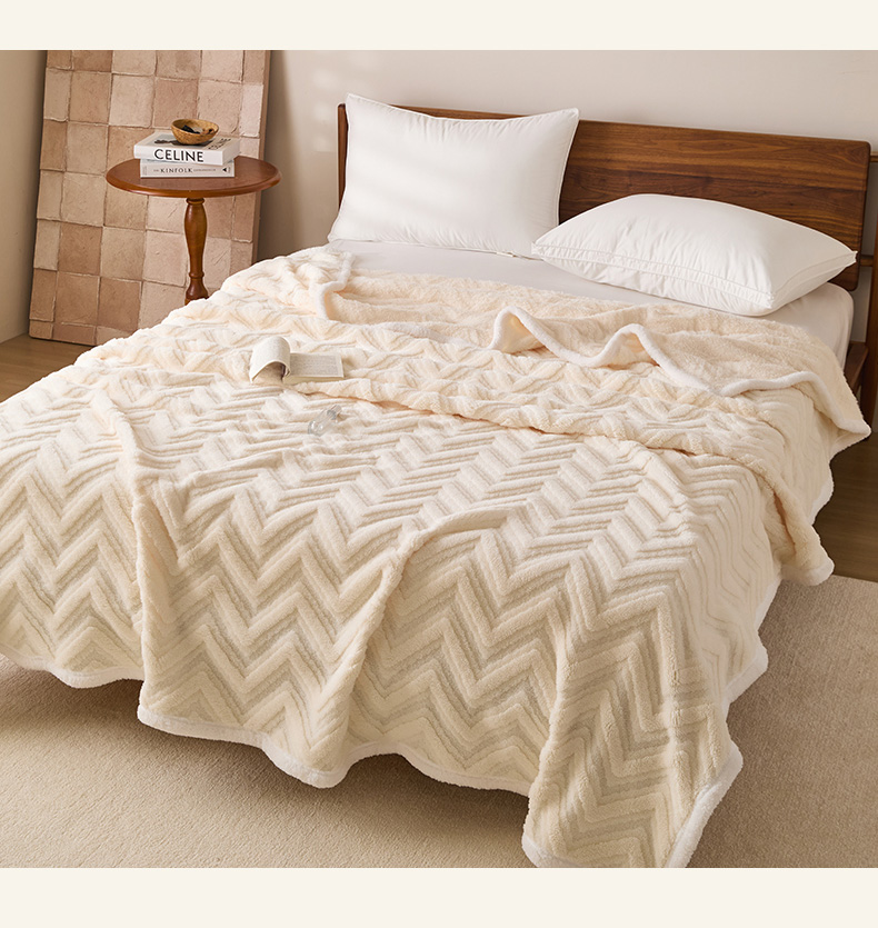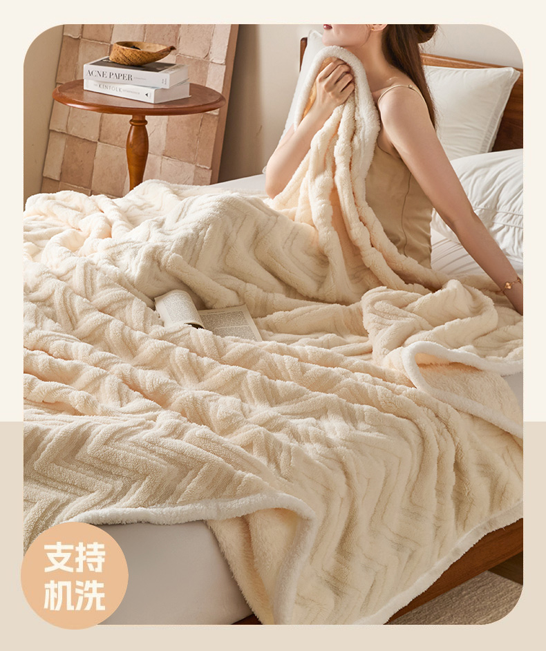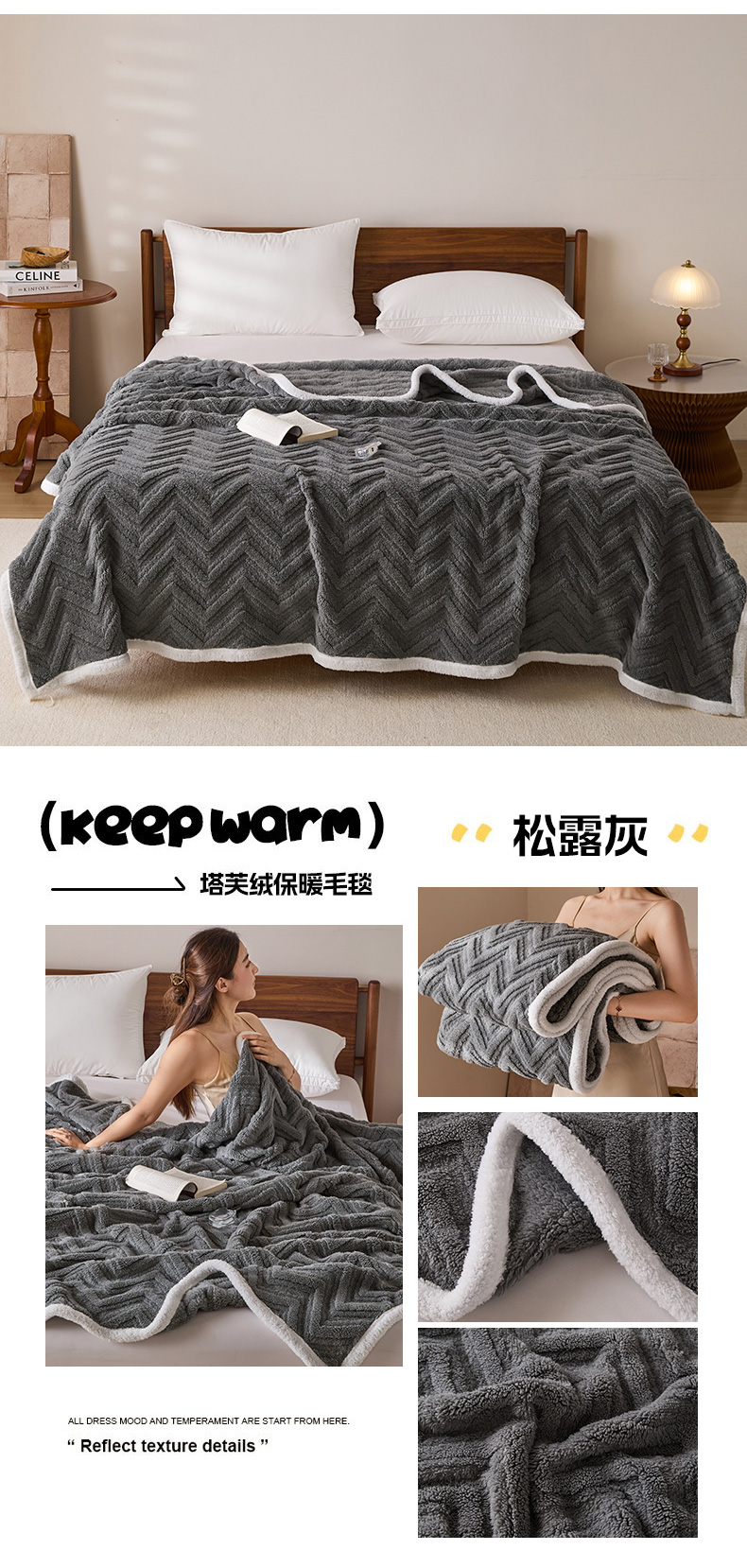 梵心家纺 2025新款塔芙绒三层提花毛毯舒棉绒剪花双面毯子盖毯320g高克重毛毯-直播跨境电商 香草米