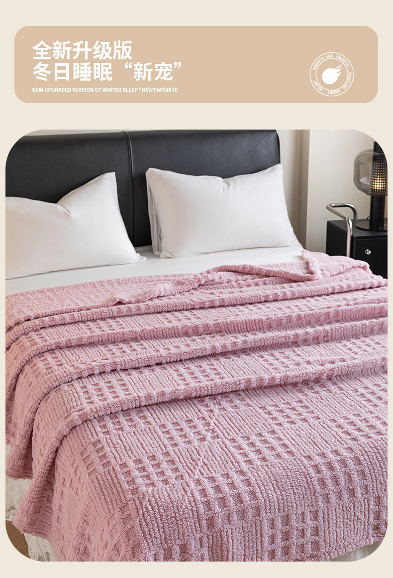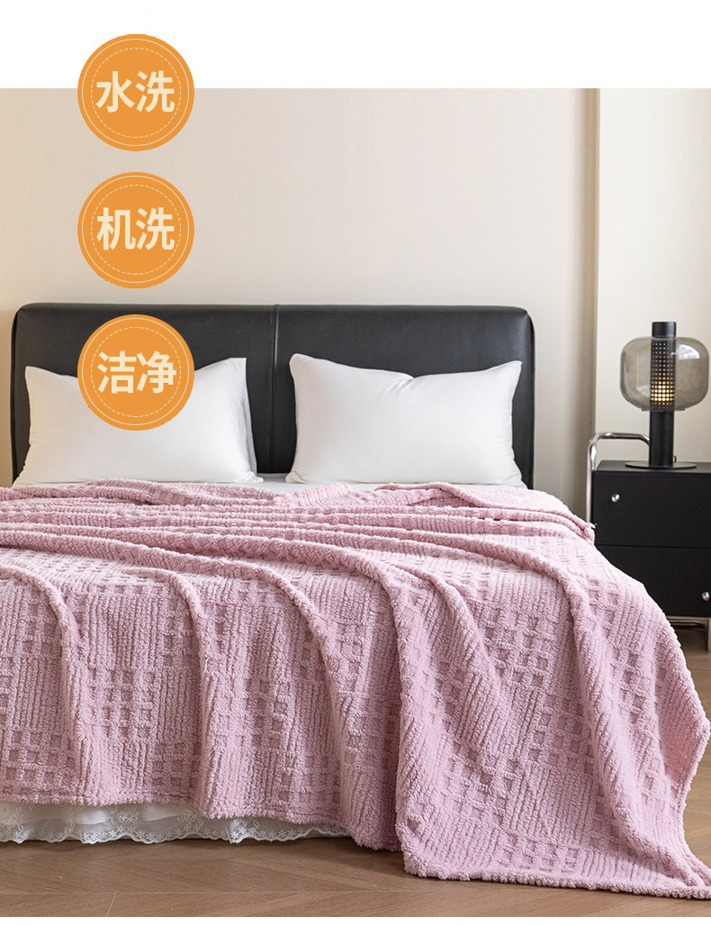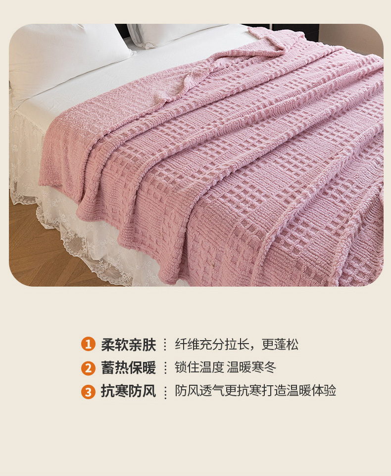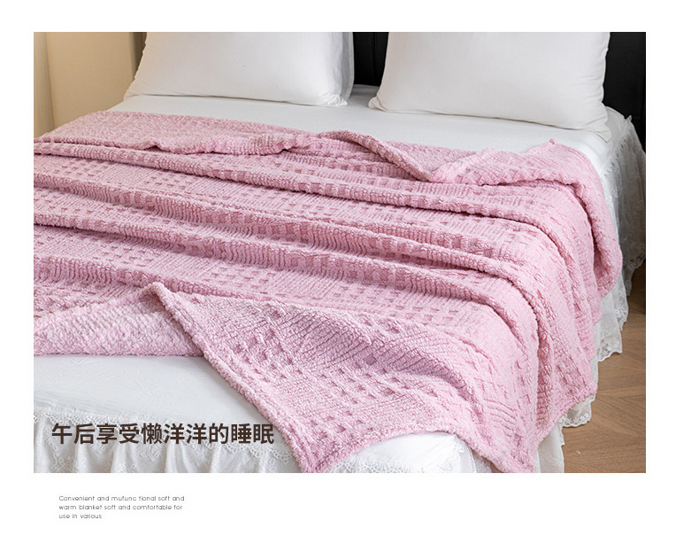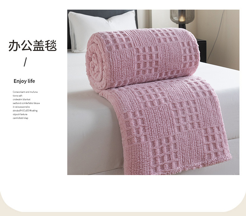商品名称:梵心家纺 2025新款塔芙绒纯色华夫格提花毛毯多功能舒棉绒盖毯午睡毛毯-跨境电商 华夫格-粉色
