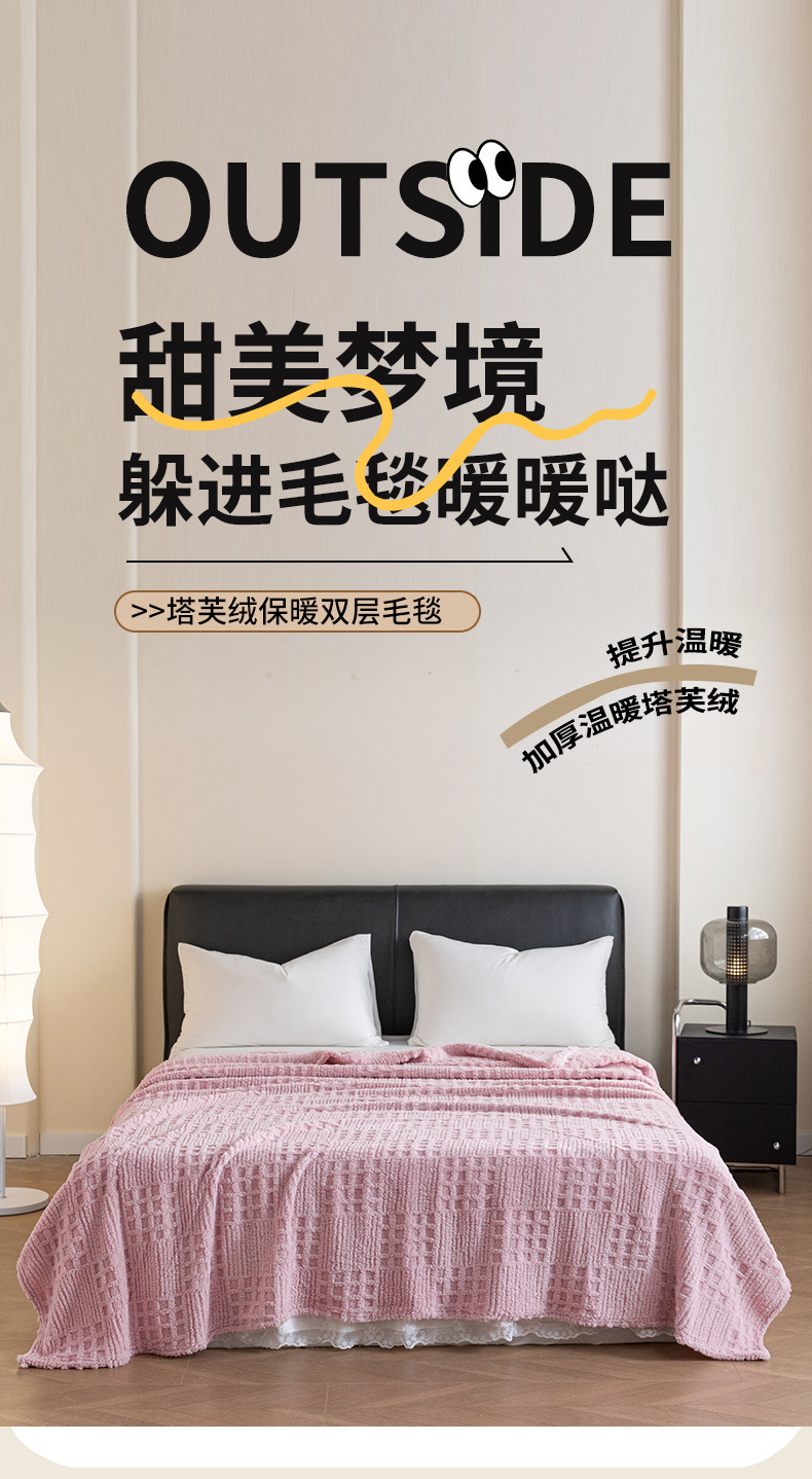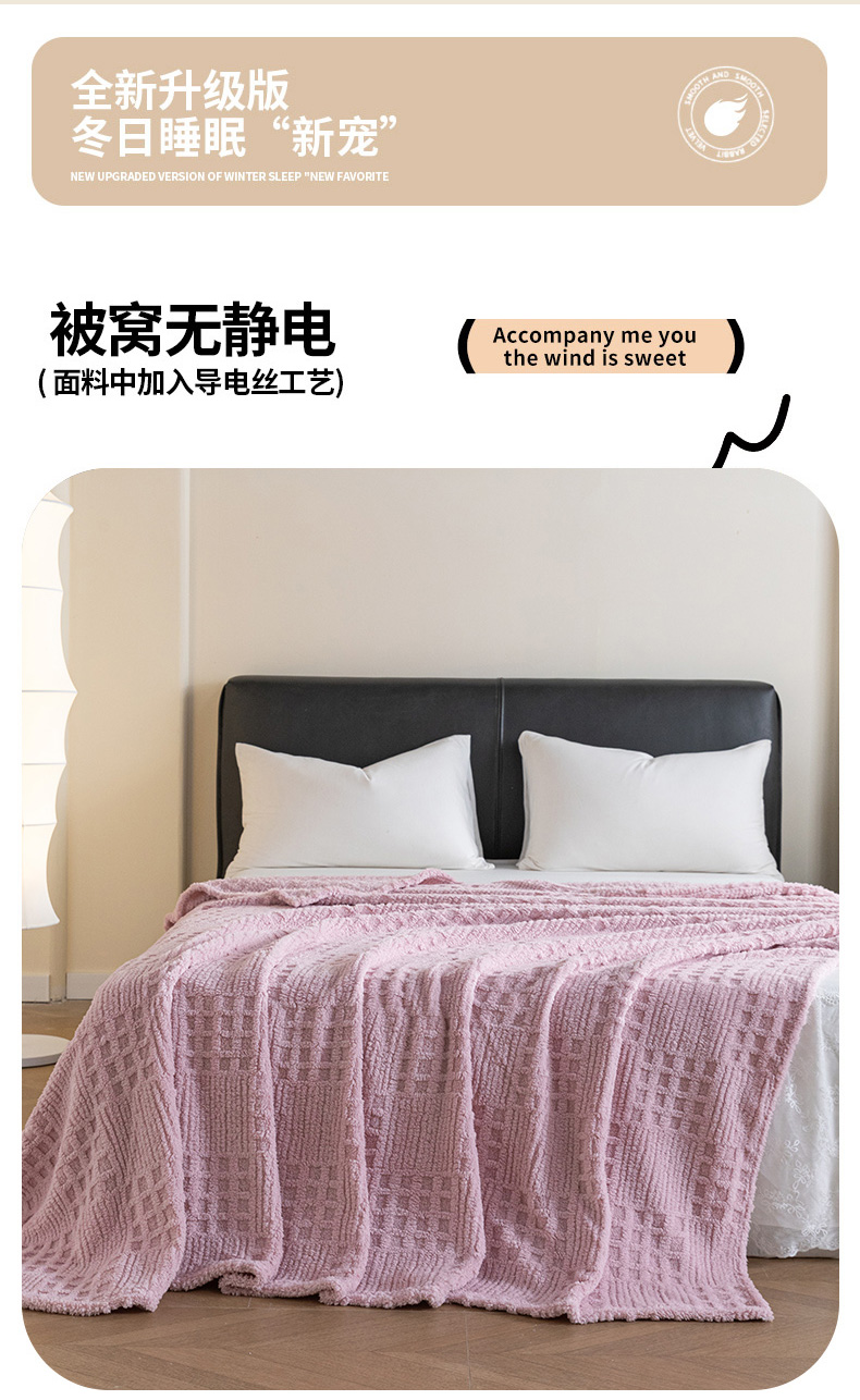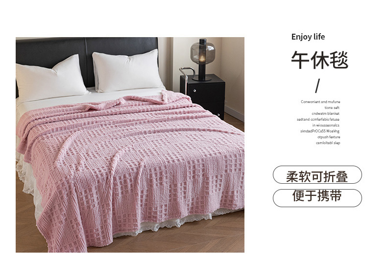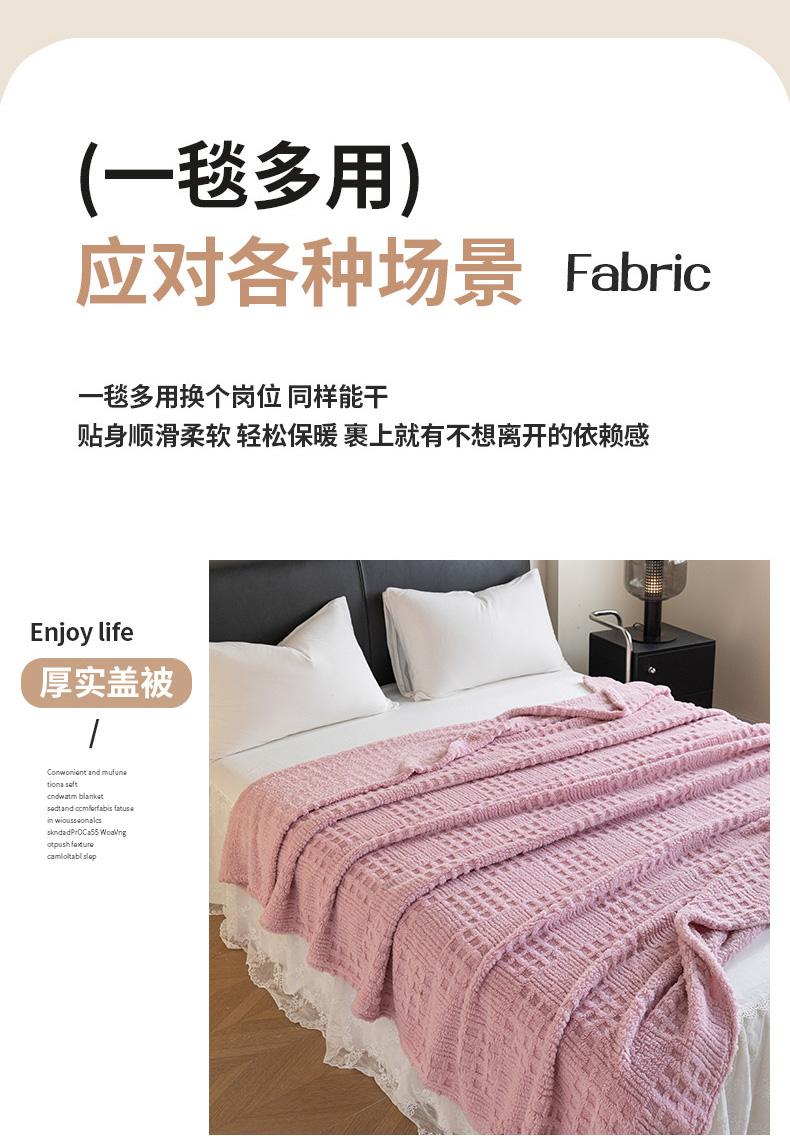 商品名称:梵心家纺 2025新款塔芙绒纯色华夫格提花毛毯多功能舒棉绒盖毯午睡毛毯-跨境电商 华夫格-粉色