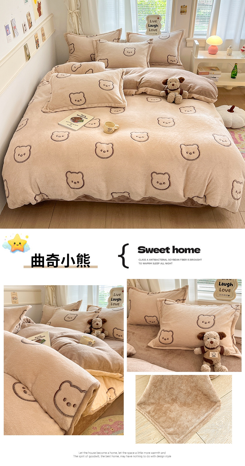 当前位置: 91家纺网 > 商品网购 > 床品套件 > 四件套 > 法莱绒四件套 > 川悦生活2025新款立体雪花绒印花大床四件套系列二场景二 月桂-浅咖