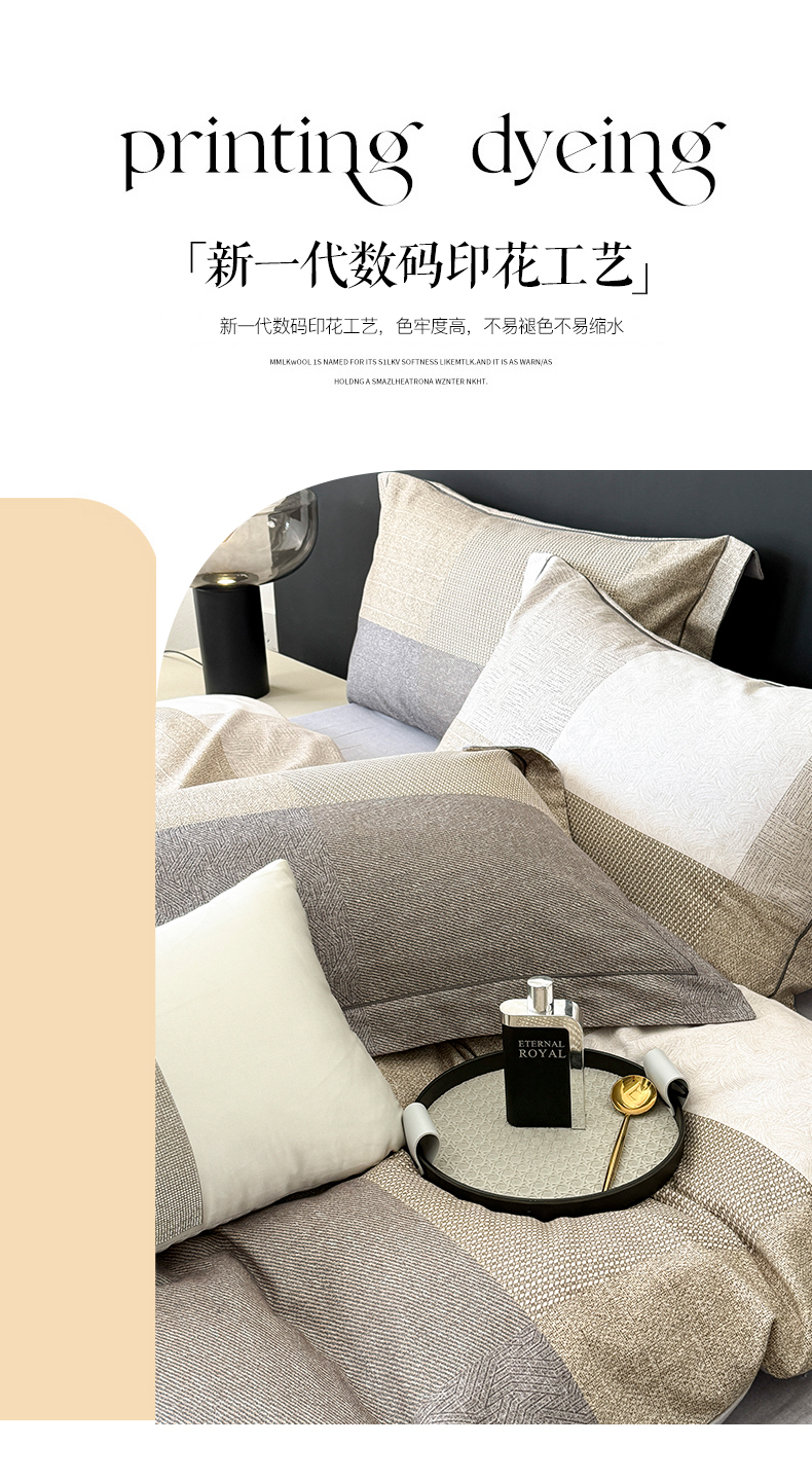 当前位置: 91家纺网 > 商品网购 > 床品套件 > 四件套 > 普通磨毛四件套 > 清雅福2025新款A类全棉磨毛数码印花四件套 杰弗里·黄灰