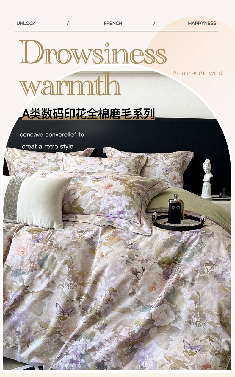当前位置: 91家纺网 > 商品网购 > 床品套件 > 四件套 > 普通磨毛四件套 > 清雅福2025新款A类全棉磨毛数码印花四件套 暮云·黄