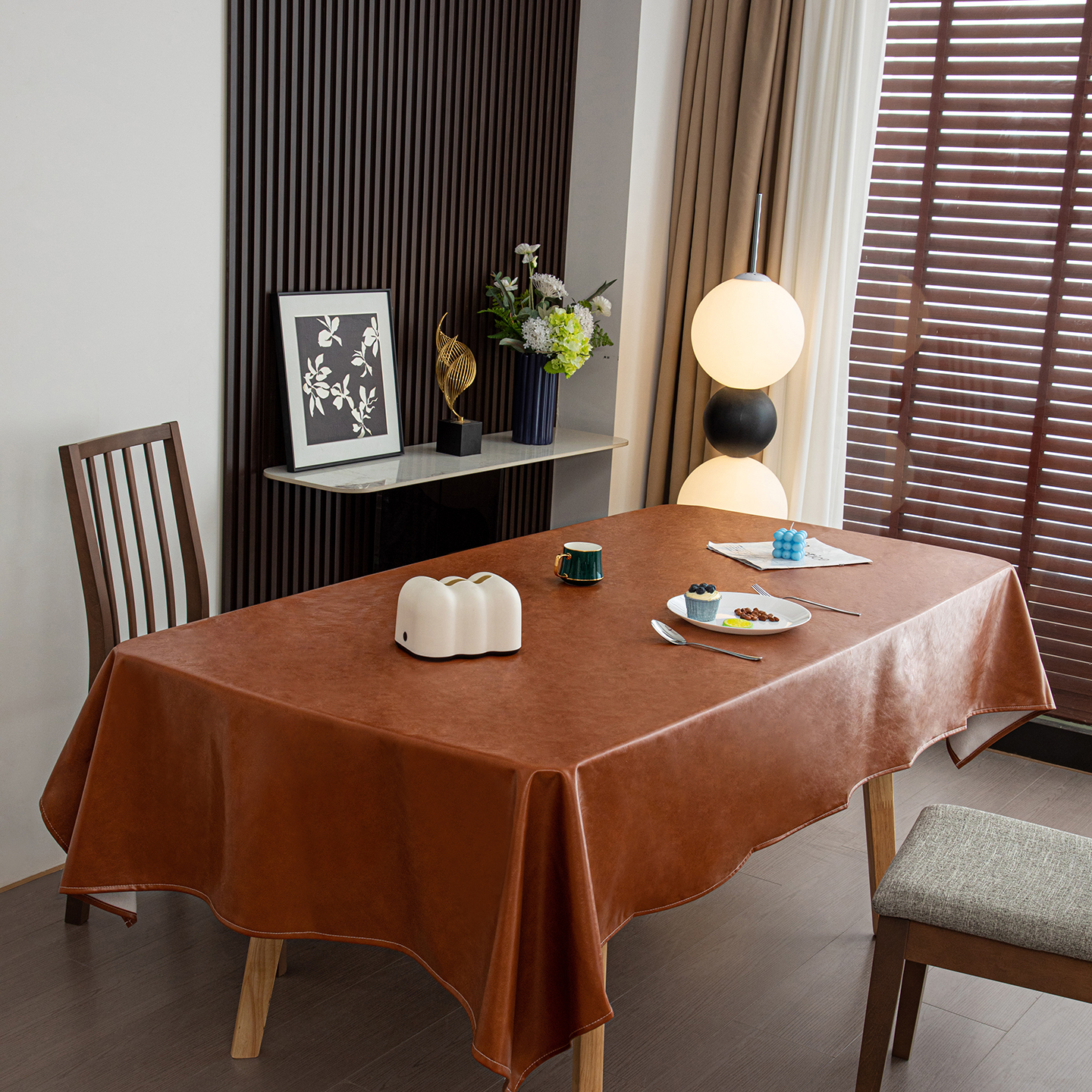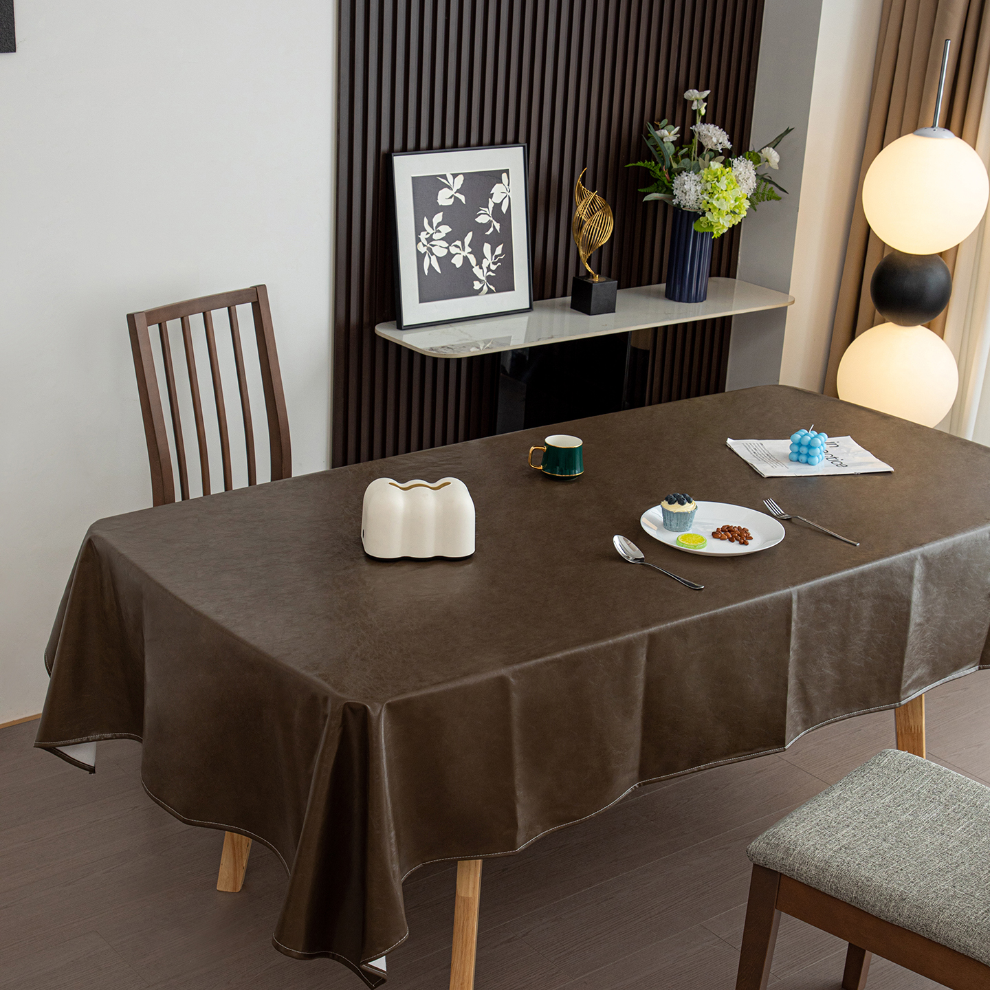 沐沐家纺 2026新款油蜡皮桌布 棕色
