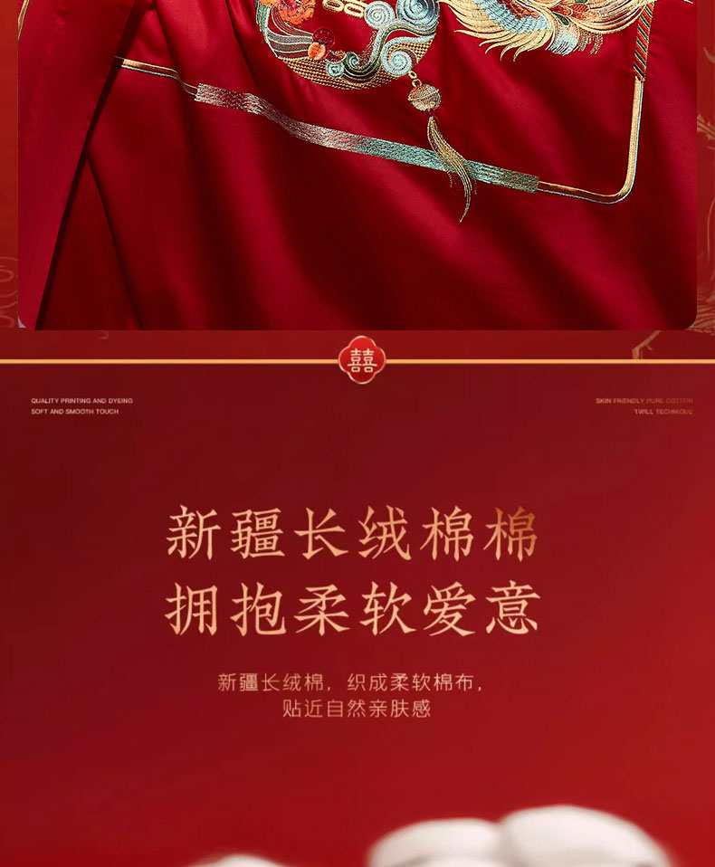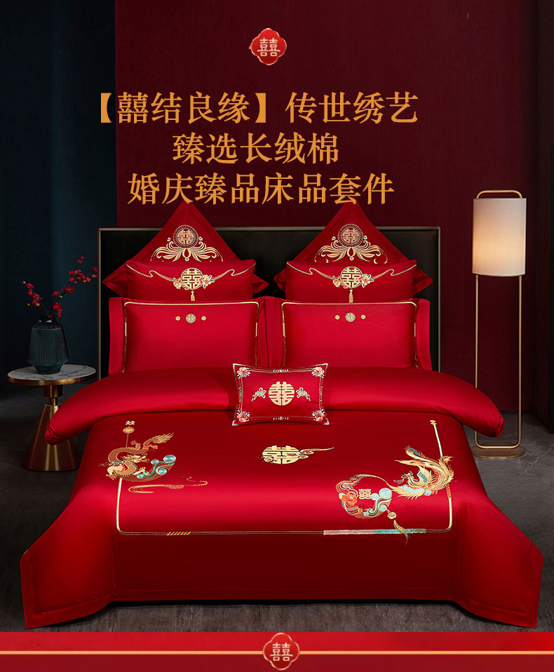 当前位置: 91家纺网 > 商品网购 > 床品套件 > 四件套 > 婚庆四件套 > 蒂爵 2025新款婚庆长绒棉时尚小红书爆款刺绣婚庆四件套多件套-无提花款 万事兴