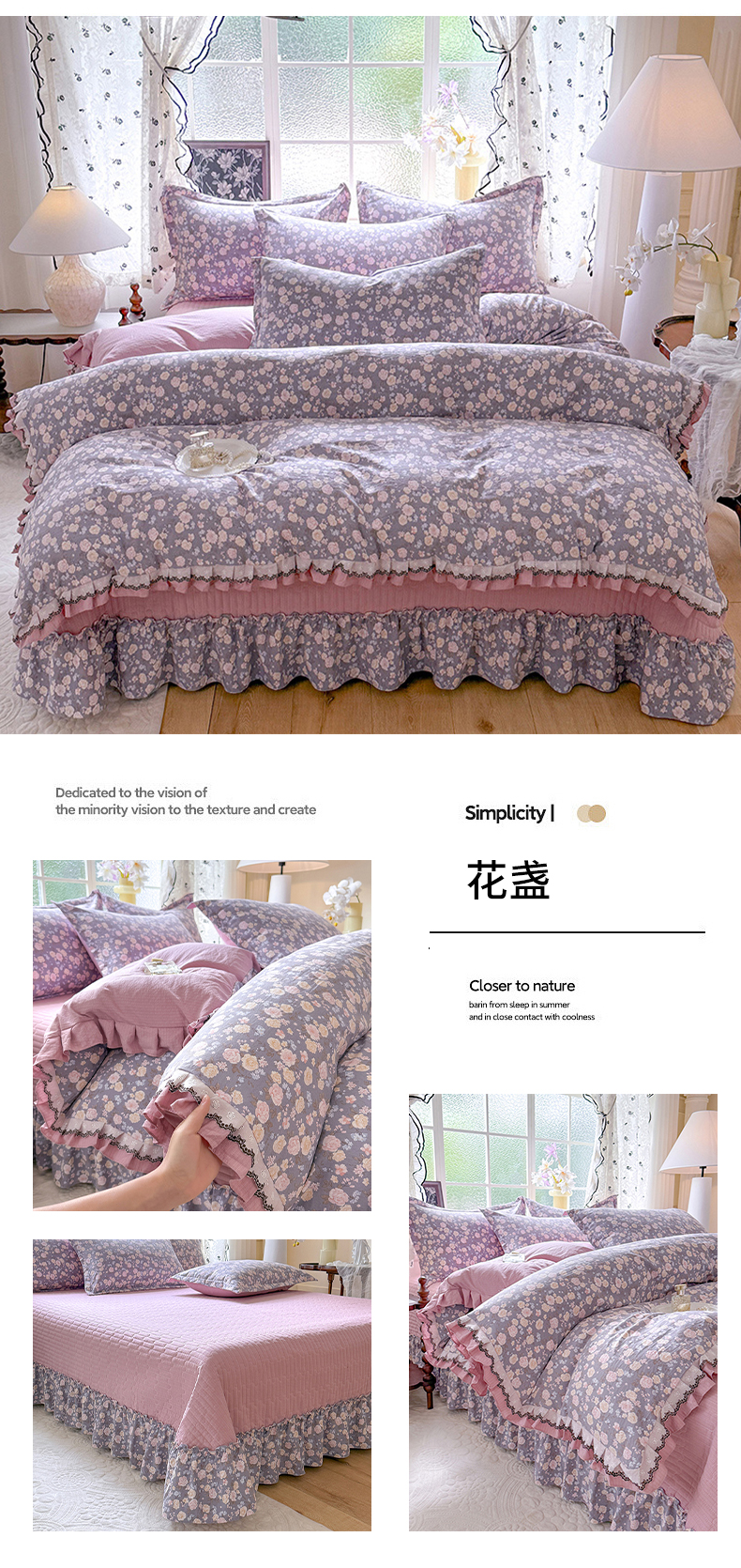 (总)韩约家纺 2026新款韩式花边古法棉感床盖四件套,知否,午后时光,漫花蝶舞,莓莓果,花影,甜心狗,初遇,萝莉,雨沫