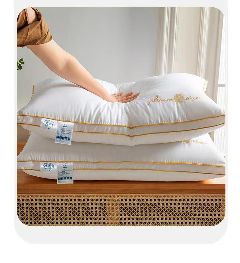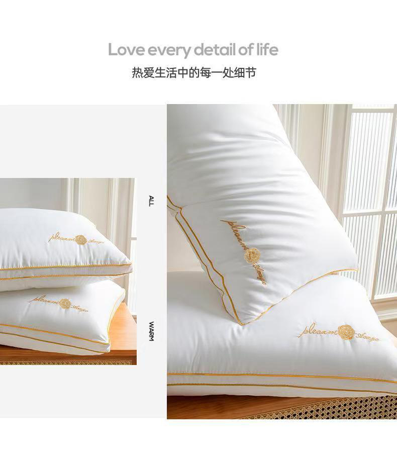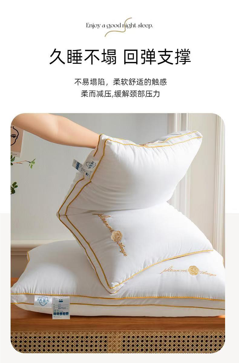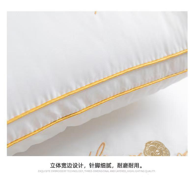 商品名称:永乐枕芯 2025新款山茶花刺绣枕枕芯羽丝绒枕芯星级酒店款枕头 金色-中枕
