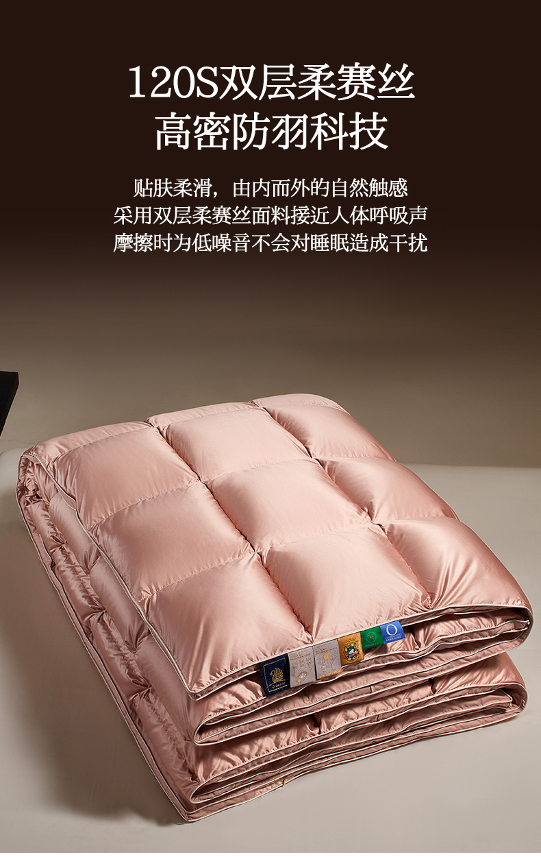• 91家纺网 家纺一手货源 找家纺 (总)织梦人羽绒工厂店 2025新款高端100支长绒棉德国进口软银丝全棉95鹅绒羽绒被,凤翎-黑金