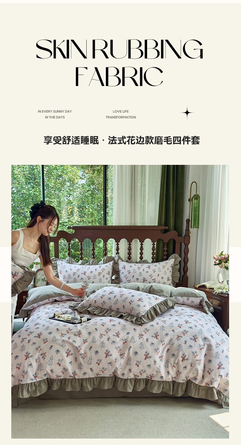 (总)未来家居 2025秋冬新款全棉法式花边款磨毛四件套