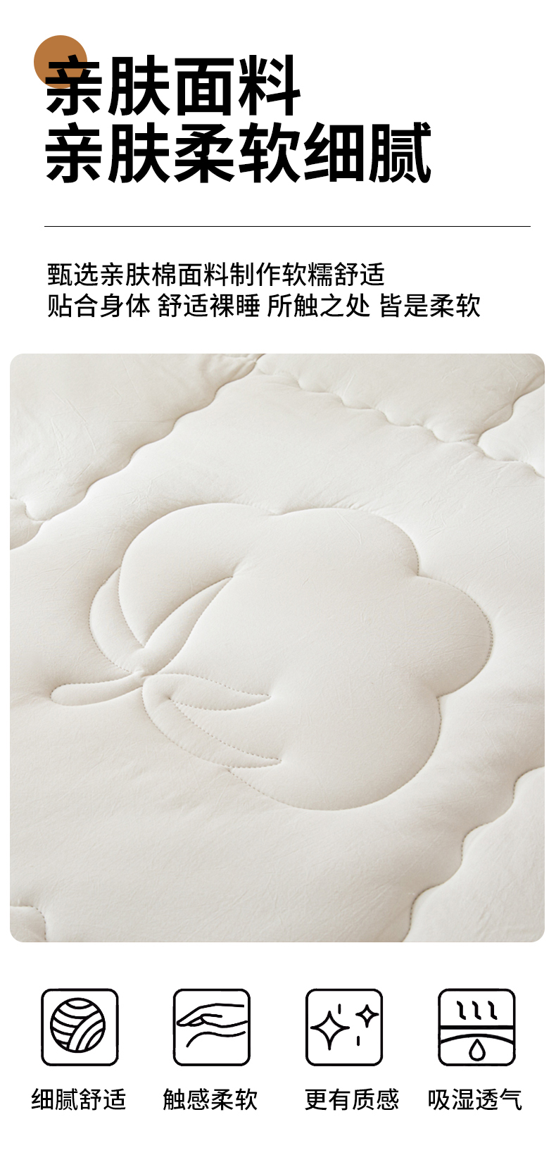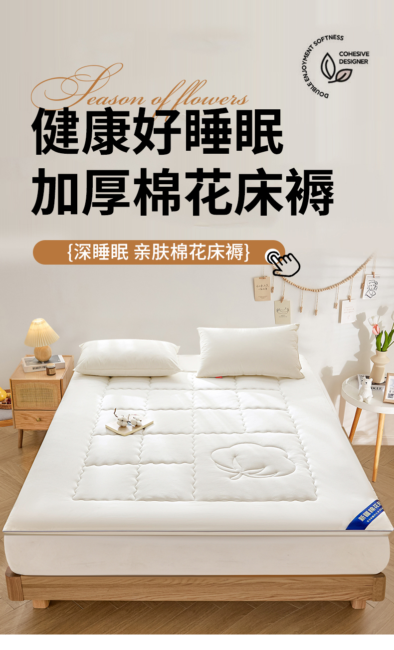 商品名称:悠米悠家 2025新款亲肤加厚棉花夹棉床褥 白色