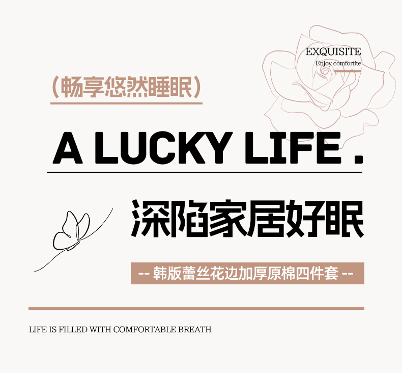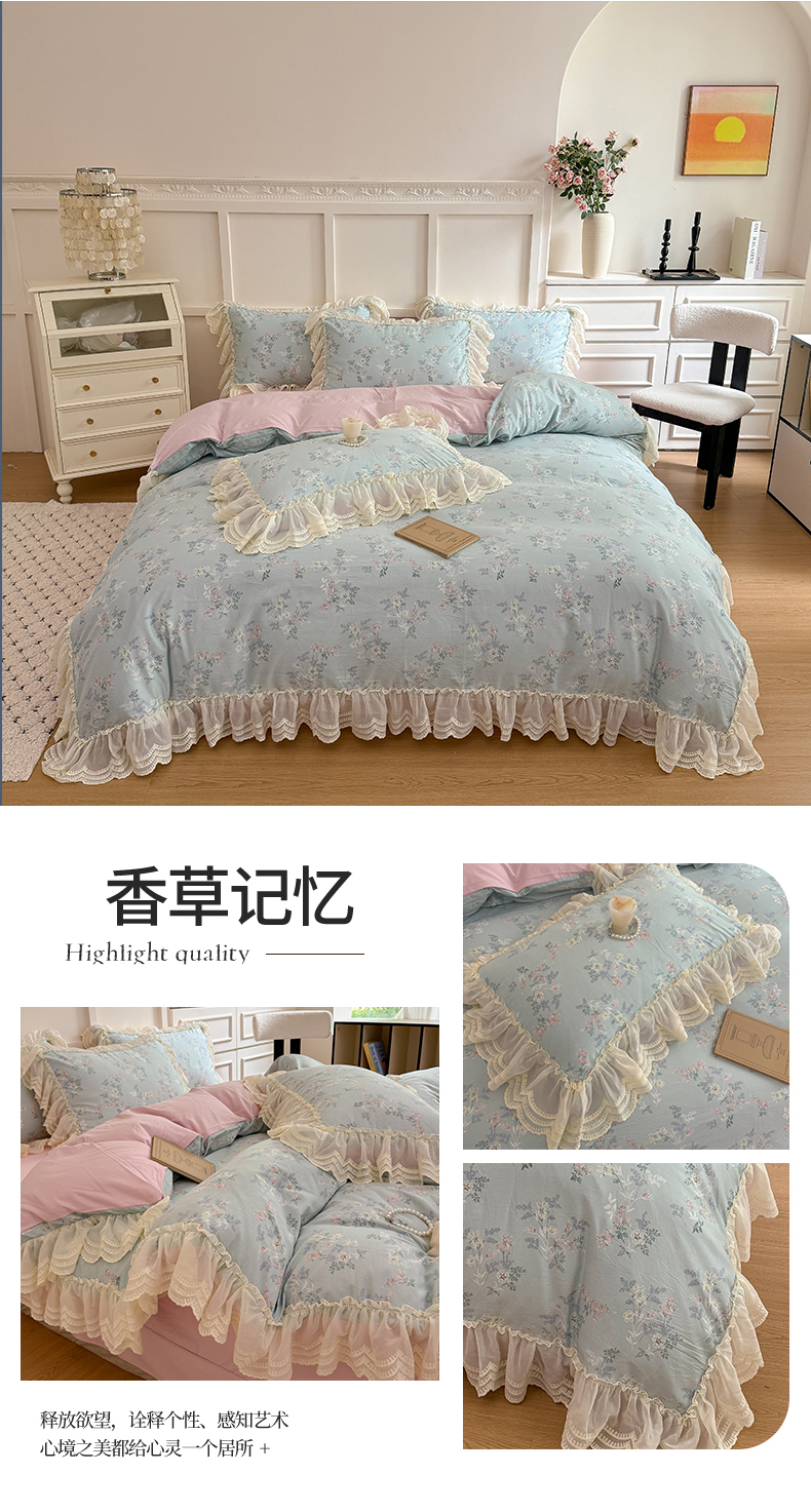 商品名称:吾欢心 2025新款韩版蕾丝花边加厚原棉四件套 粉恋白