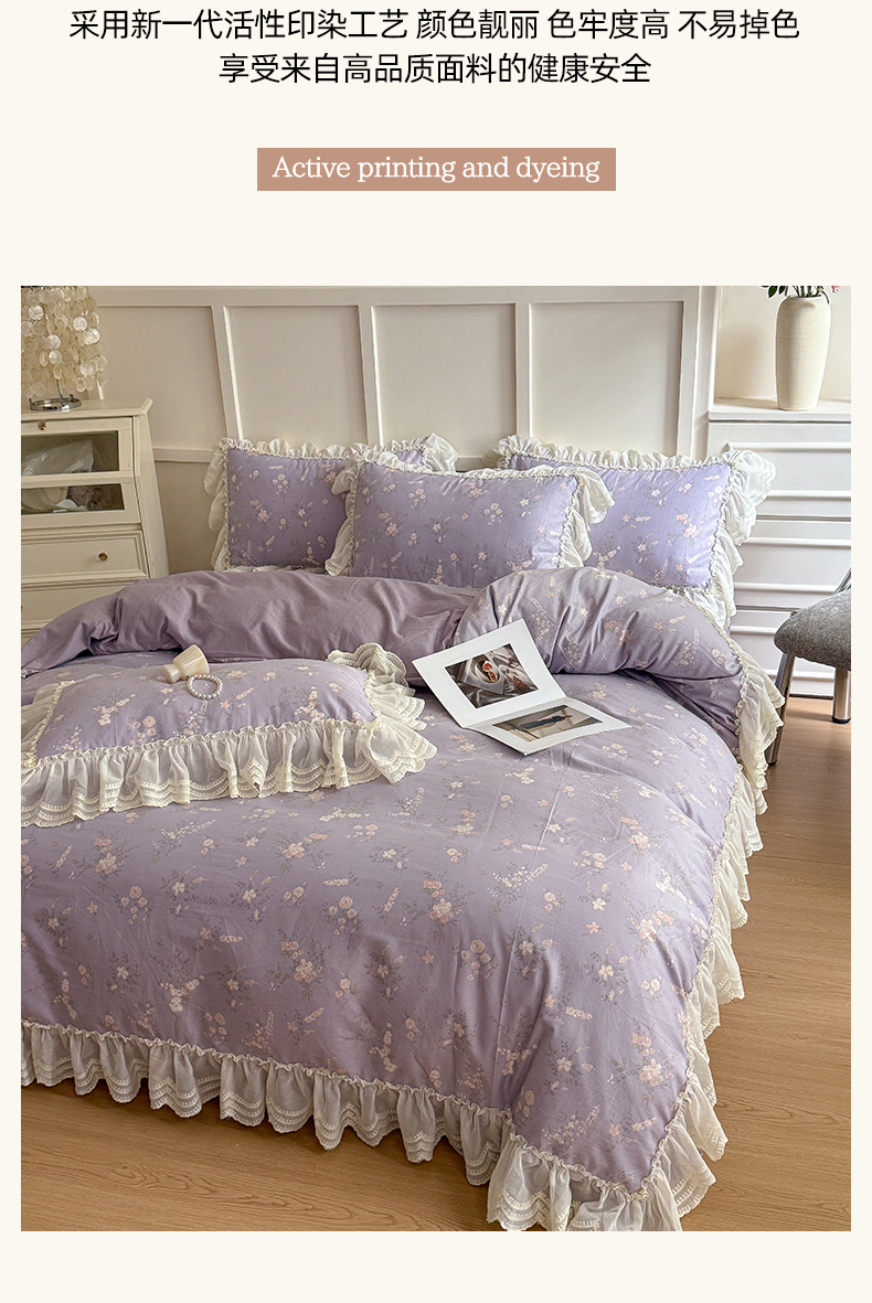 吾欢心 2025新款韩版蕾丝花边加厚原棉四件套 粉恋白