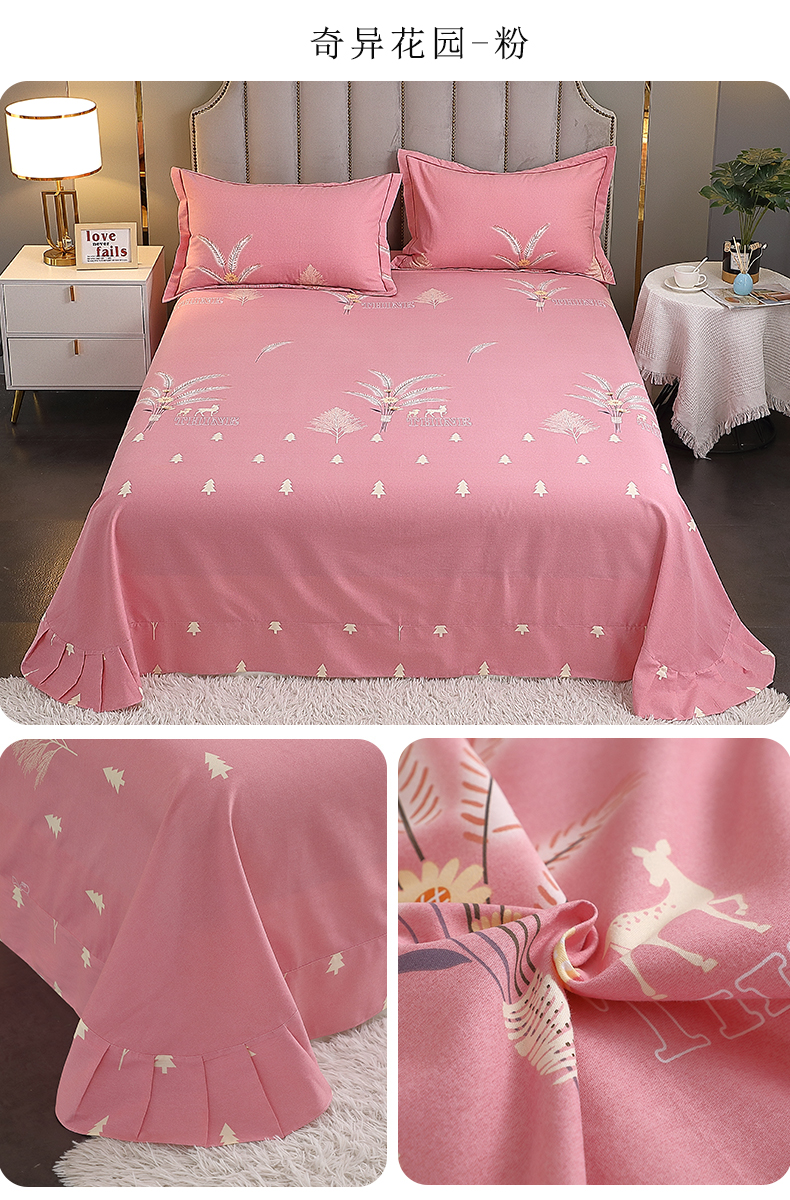 商品名称:馨雅家纺 2025新款全棉纯棉磨毛系列床单单品床单单件单床单 奇异花园-粉