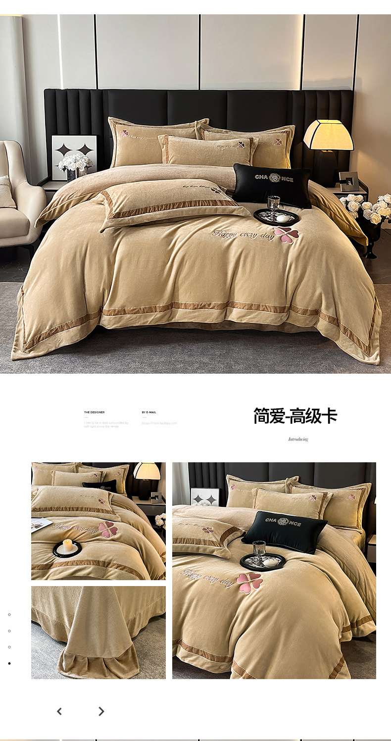 当前位置: 91家纺网 > 商品网购 > 床品套件 > 四件套 > 牛奶绒四件套 > 妮恒美家纺 2025新款牛奶绒刺绣四件套-简爱系列 简爱-白奶咖+焦糖