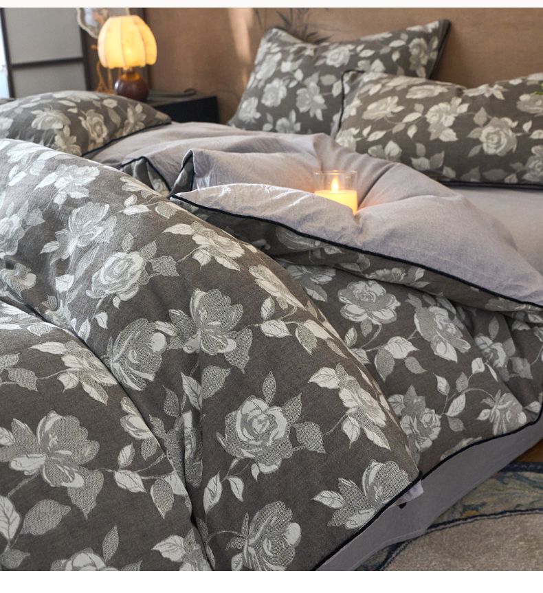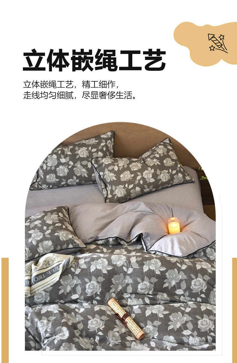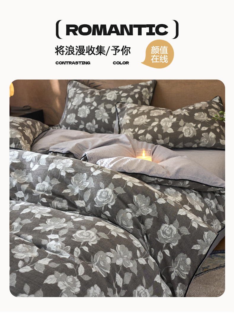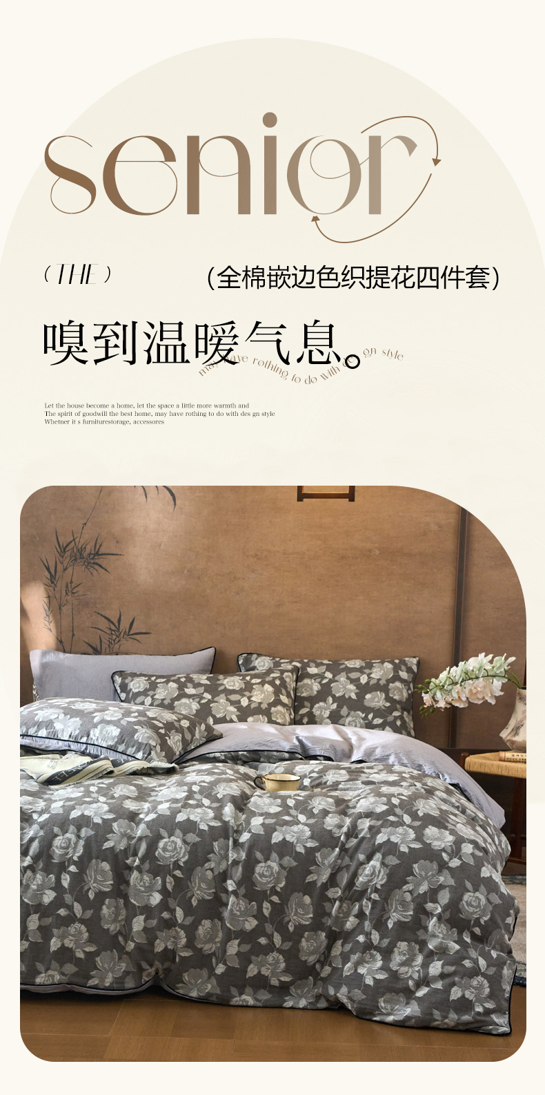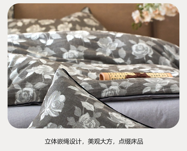 当前位置: 91家纺网 > 商品网购 > 床品套件 > 四件套 > 全棉普通四件套 > 兰紫橙家纺 2025新款全棉纯棉嵌边色织提花四件套 玫瑰之约-咖啡
