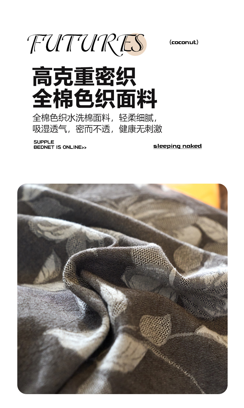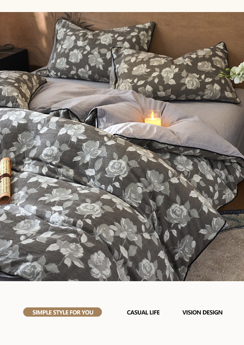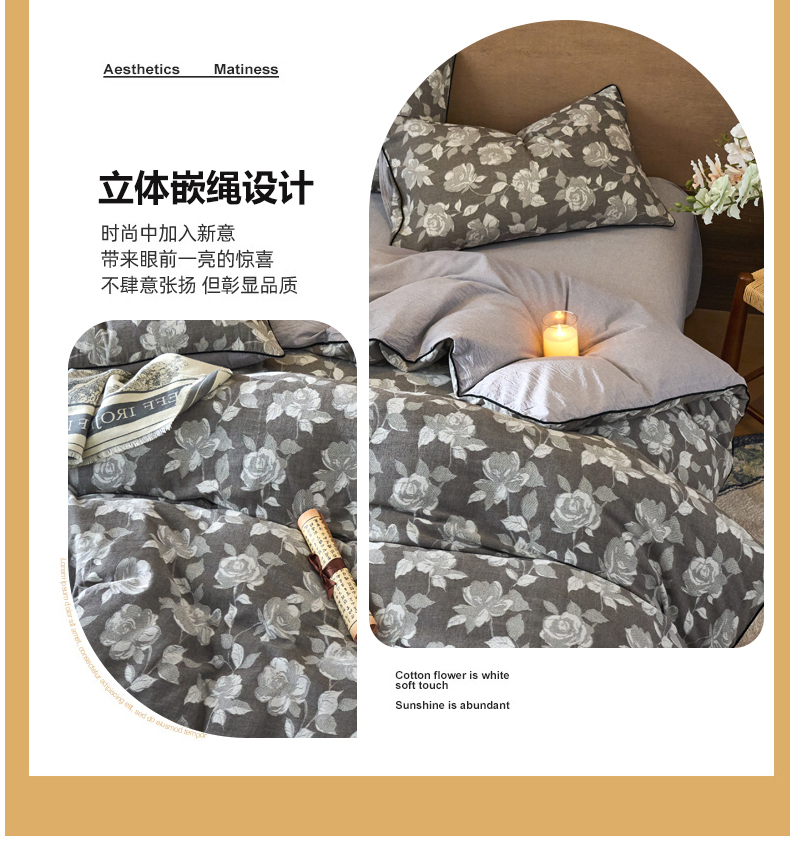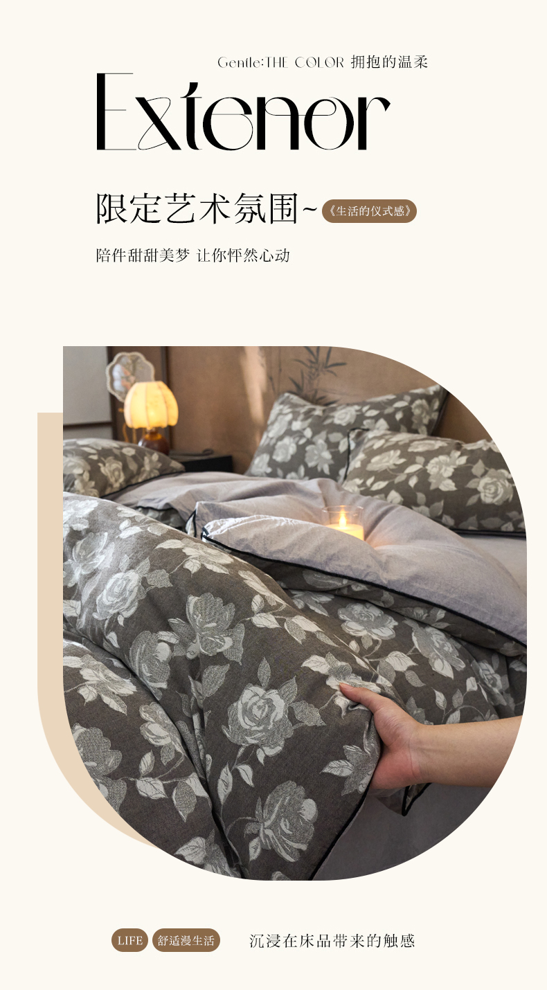 当前位置: 91家纺网 > 商品网购 > 床品套件 > 四件套 > 全棉普通四件套 > 兰紫橙家纺 2025新款全棉纯棉嵌边色织提花四件套 玫瑰之约-咖啡