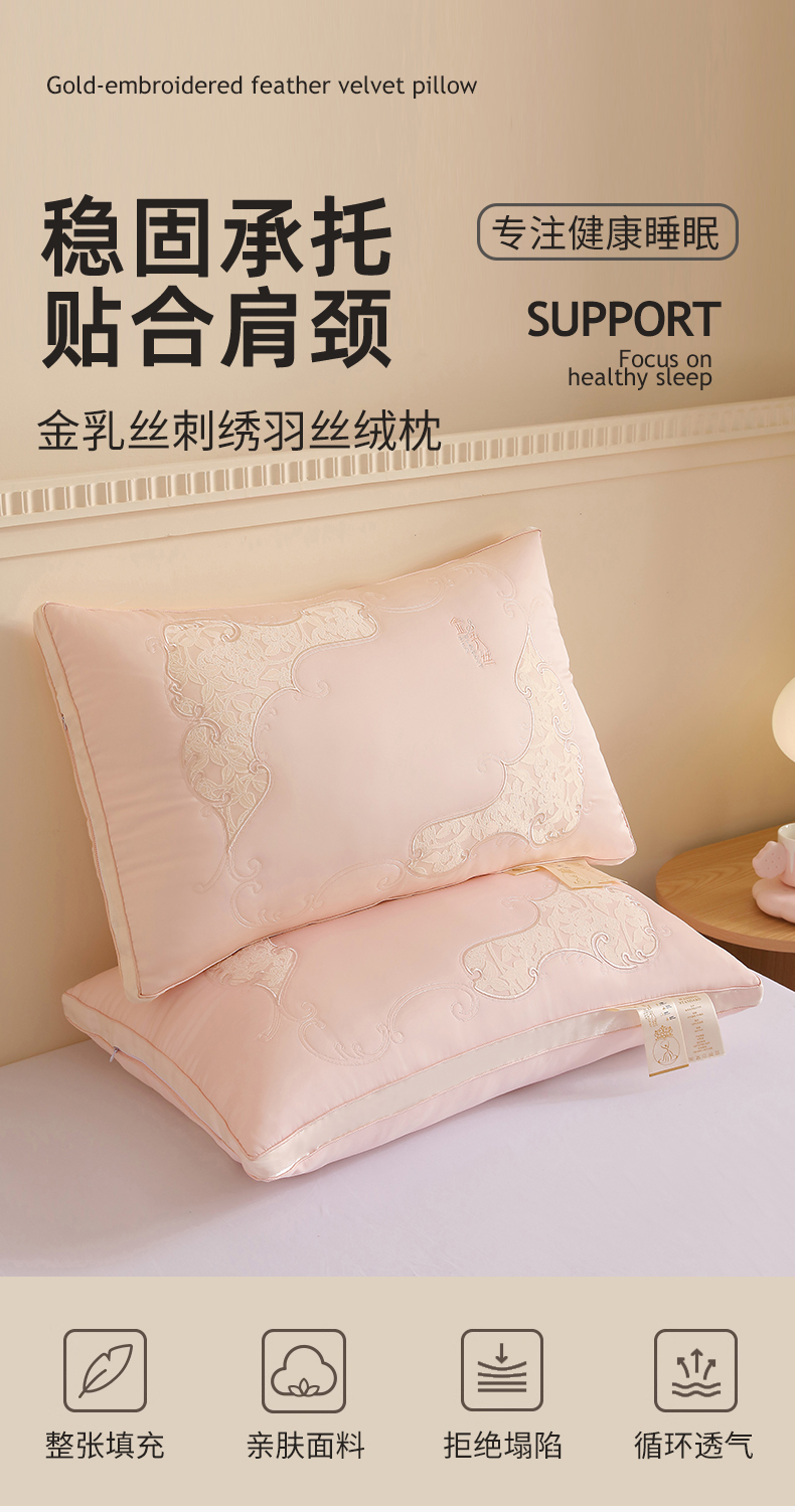 当前位置: 91家纺网 > 商品网购 > 枕头/枕芯/保健枕/颈椎枕 > 枕头枕芯 > (总)麦肯锡 2025新款金乳丝刺绣羽丝绒枕枕头枕芯