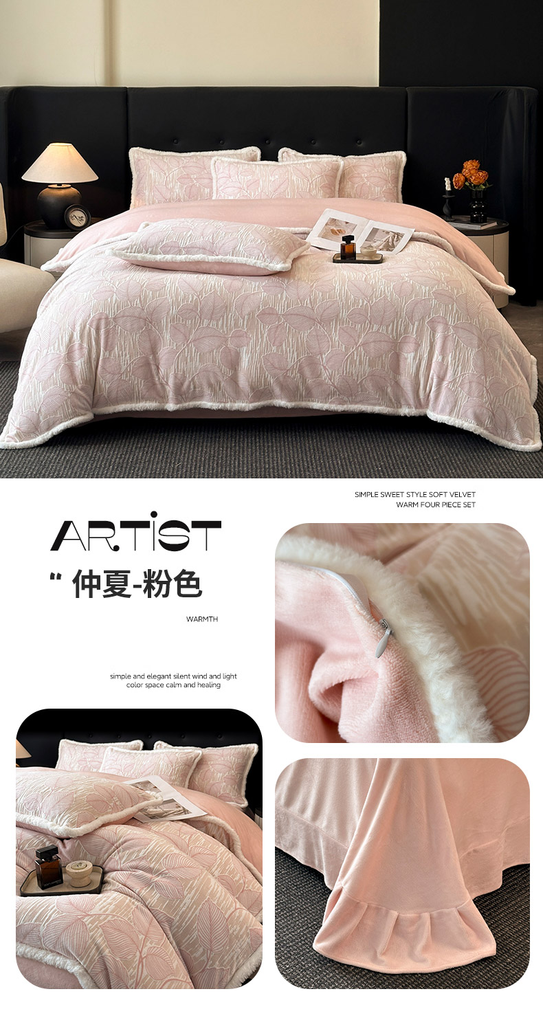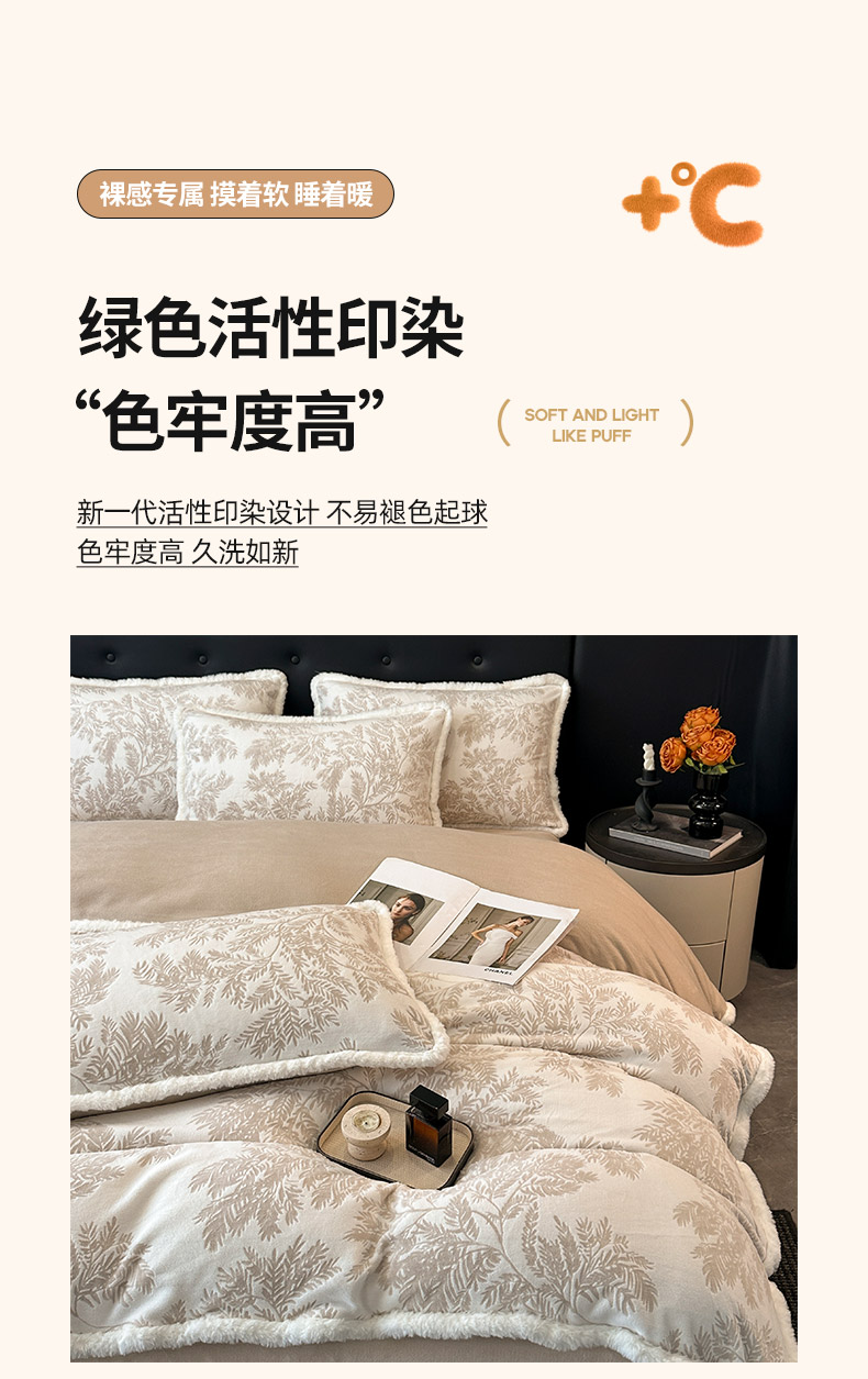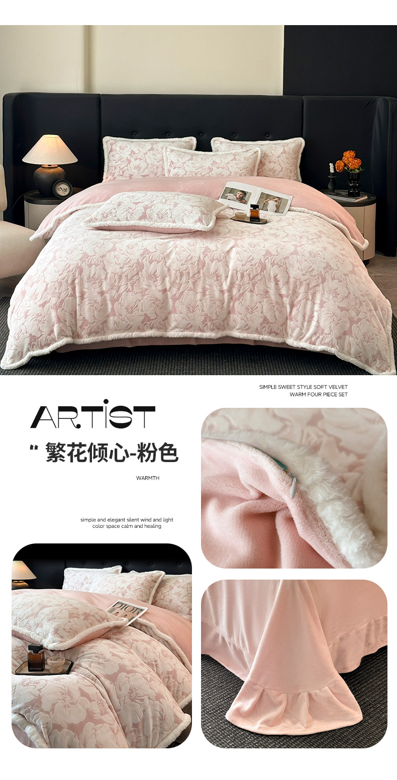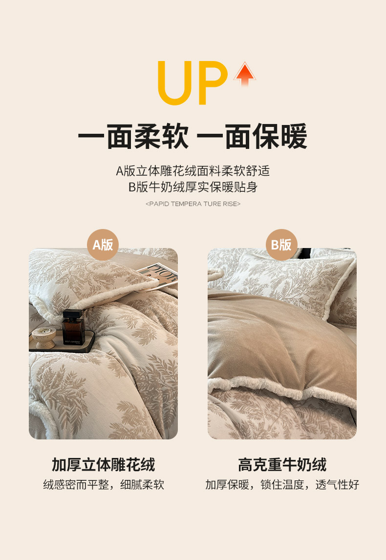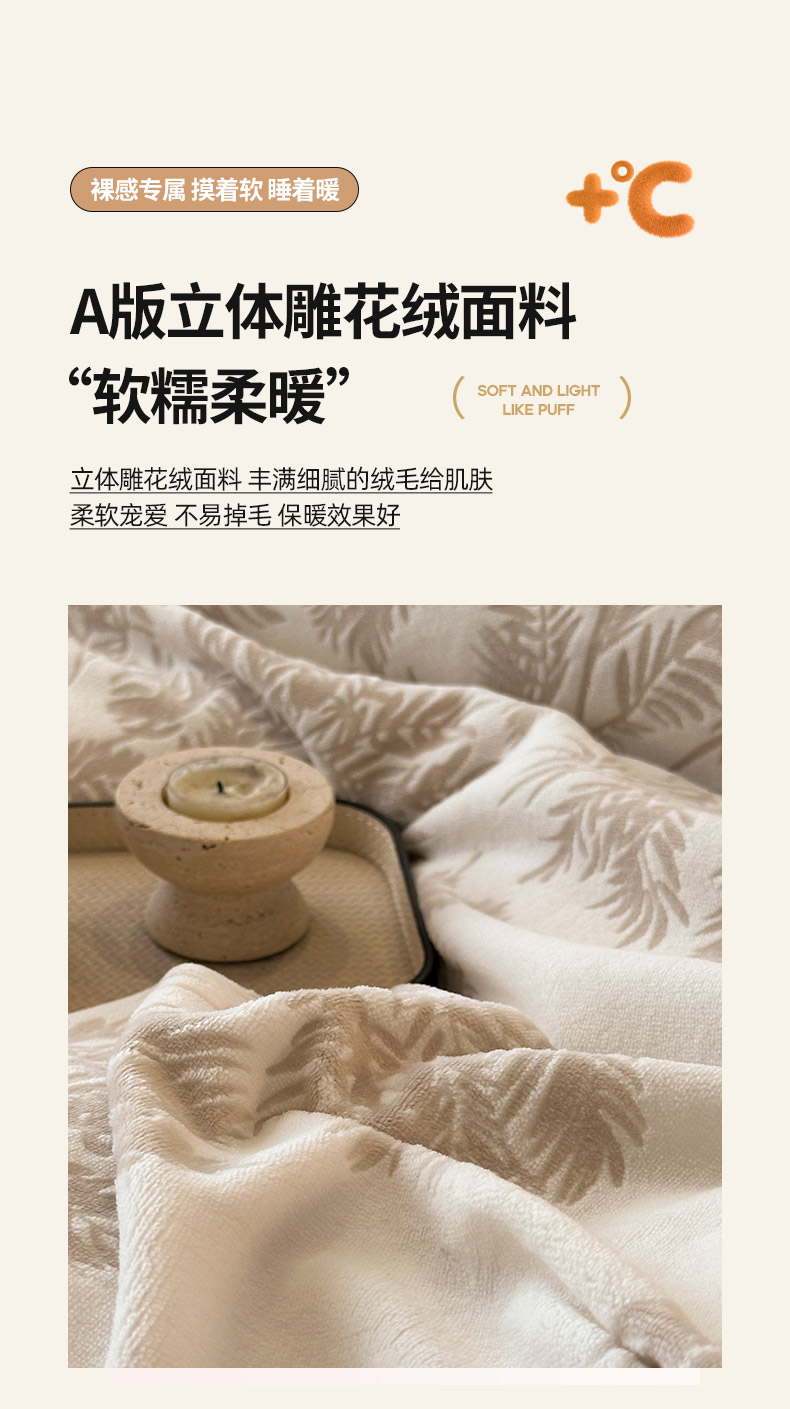 (总)金阳光家纺 2025新款A类雕花绒兔毛包边牛奶绒四件套