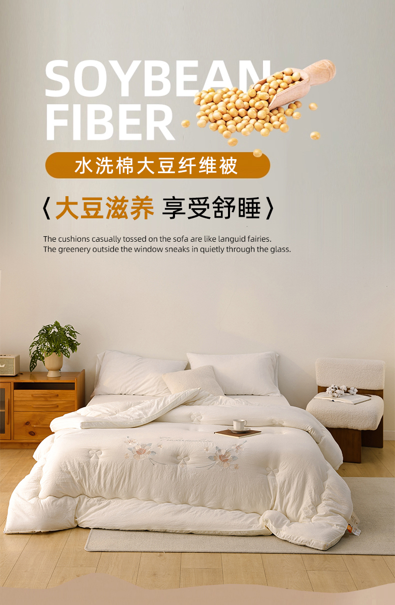 商品名称:(总)雯雨家纺 2025新款A类绣花立体麻绳大豆被被子冬被春秋被被芯纤维被冬被被子被芯