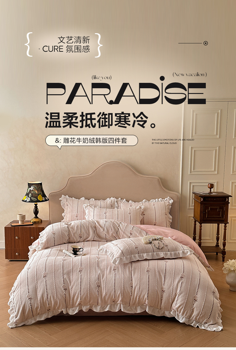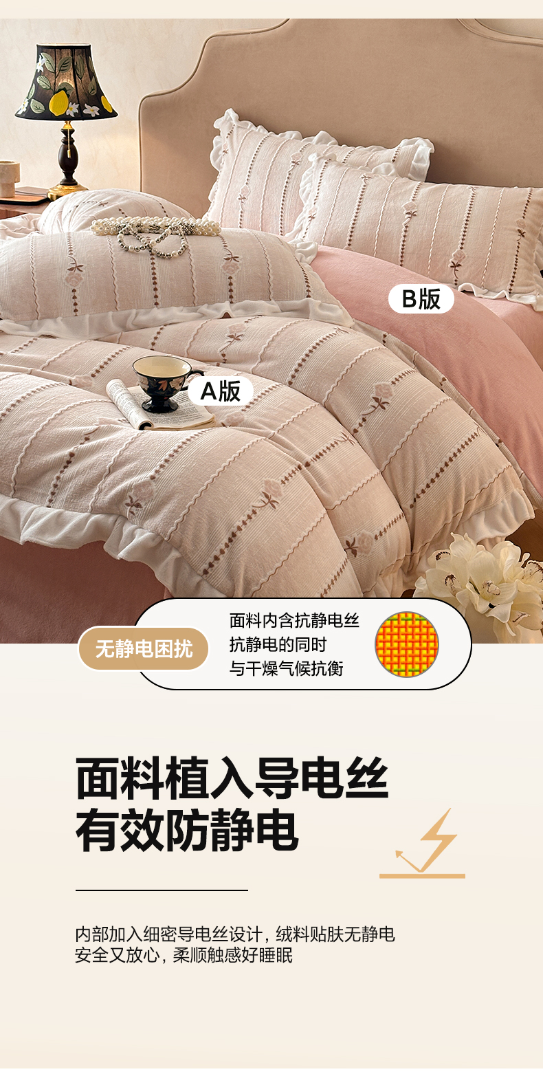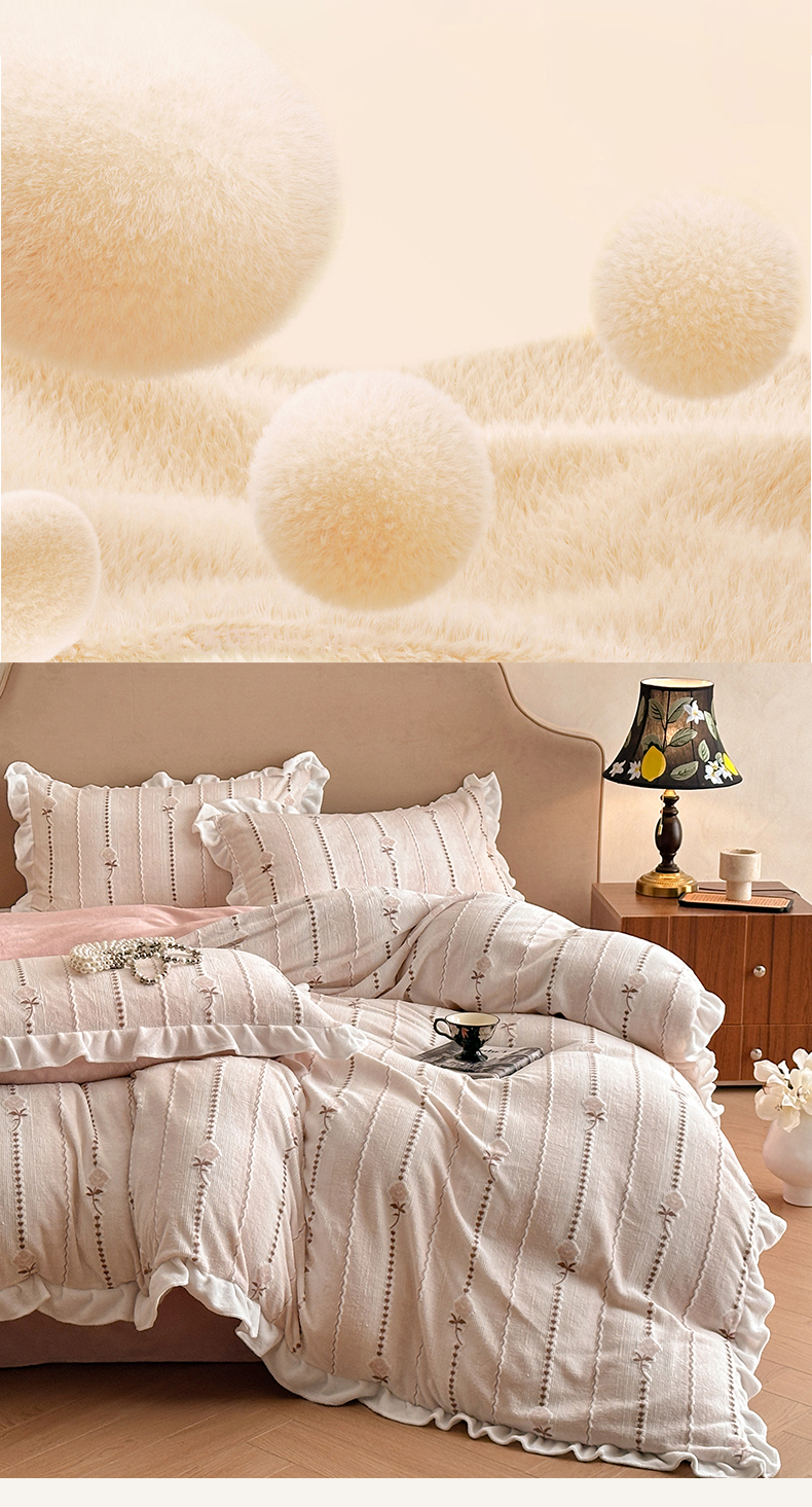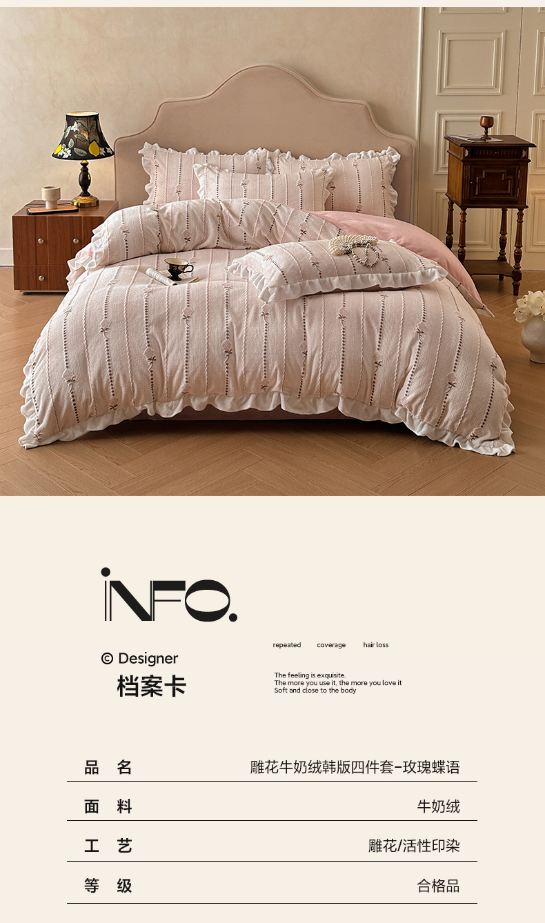 澳梵家居 2025新款雕花牛奶绒韩版四件套-玫瑰蝶语 糖霜玫瑰