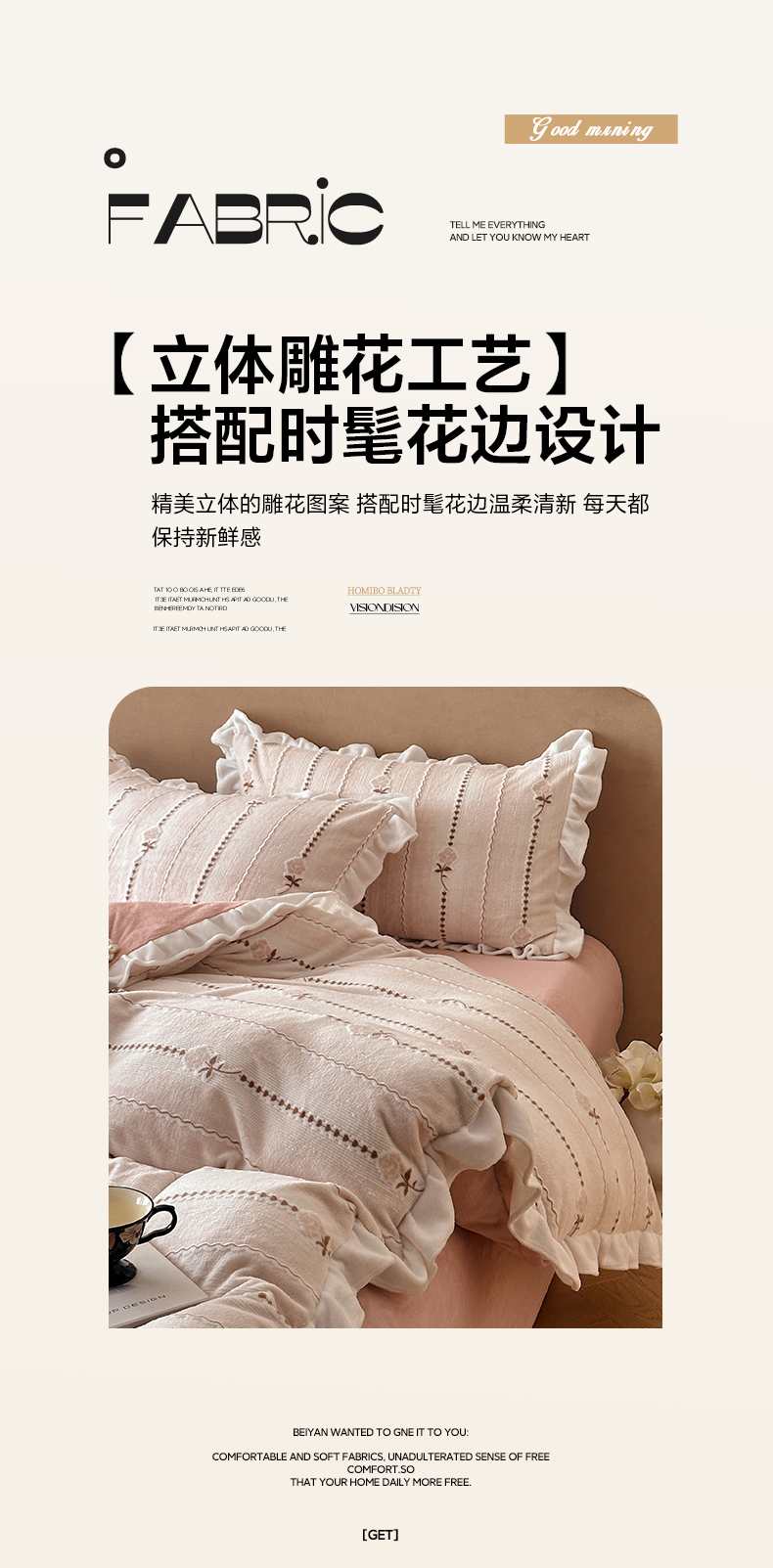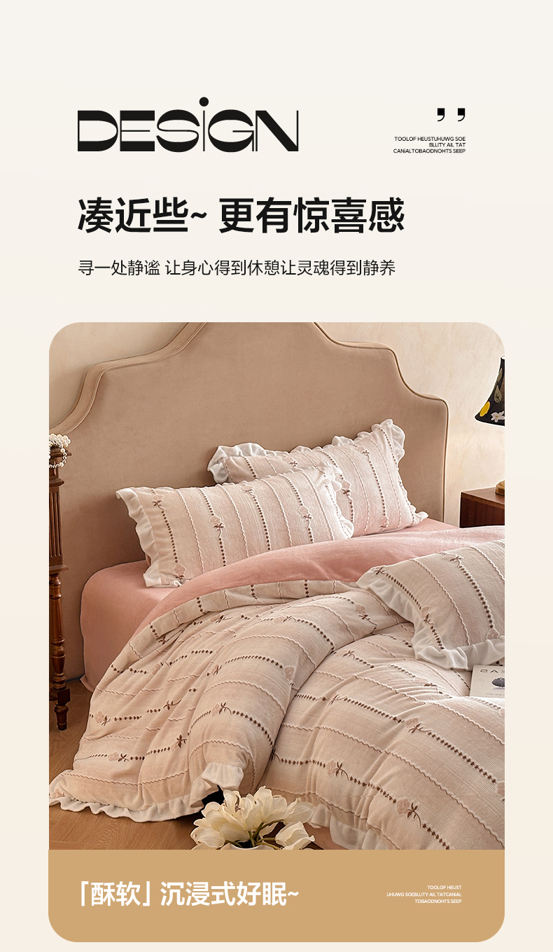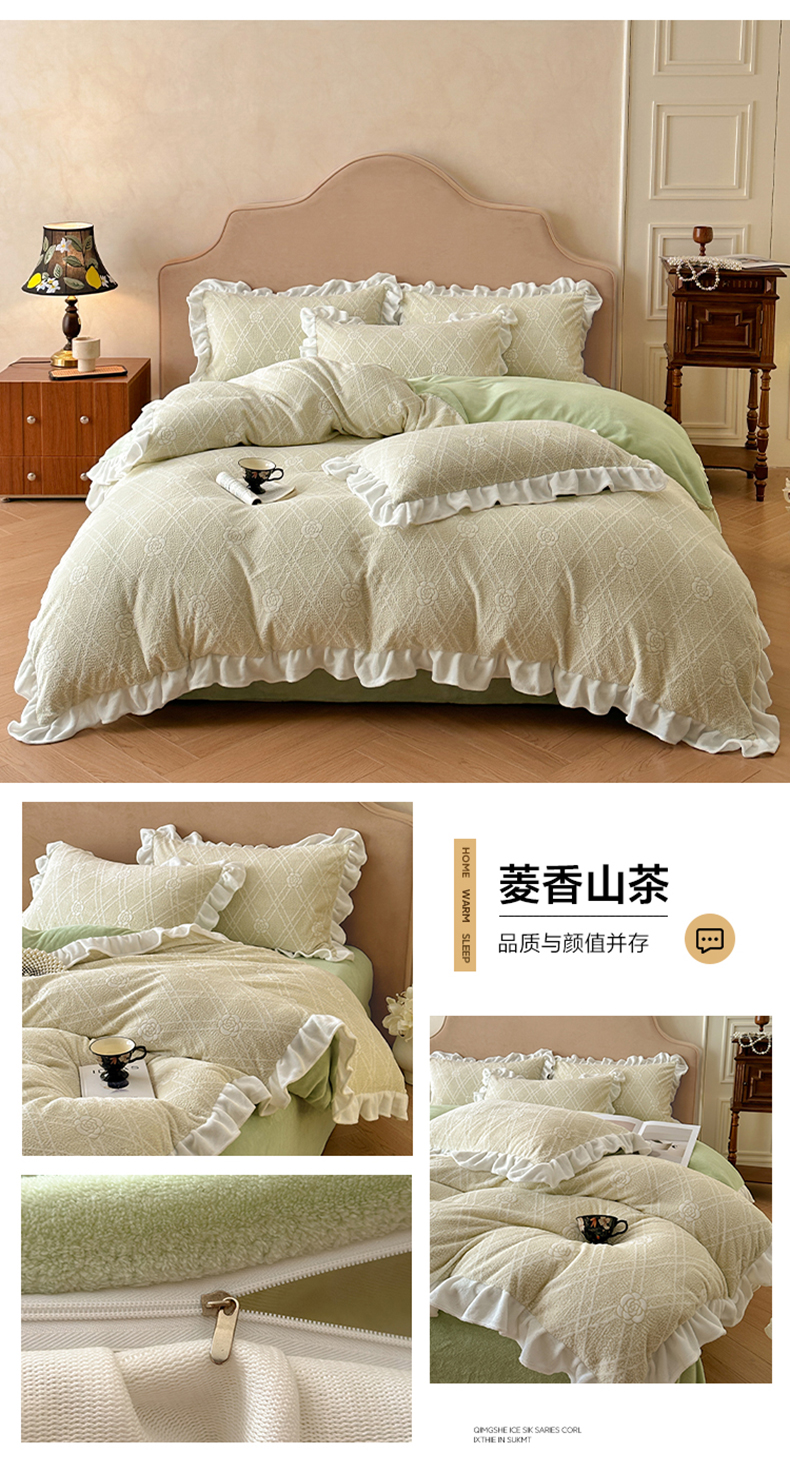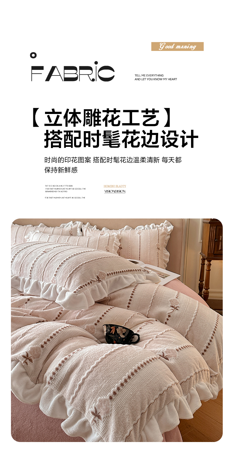 (总)澳梵家居 2025新款雕花牛奶绒韩版四件套-竹影柔柔,竹影柔柔,灰绿蝴蝶结,灰绿樱桃,卡其叶影,绿色叶影,漫调花语-粉,漫调花语-绿,玫瑰蝶语-蓝,玫瑰蝶语-绿,奶芙蝴蝶结,糖霜玫瑰-卡其