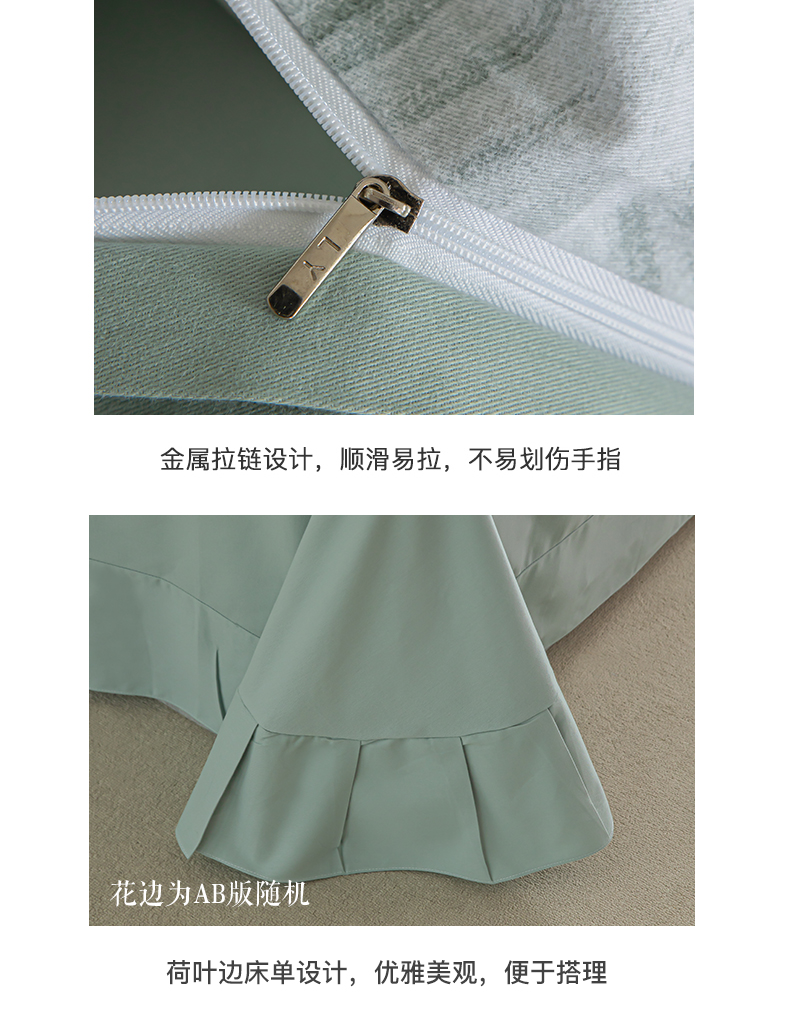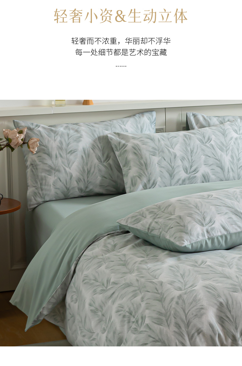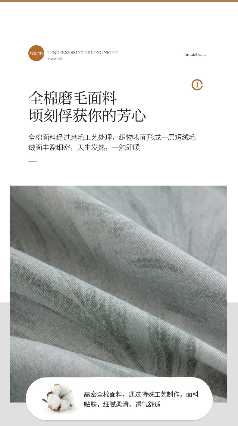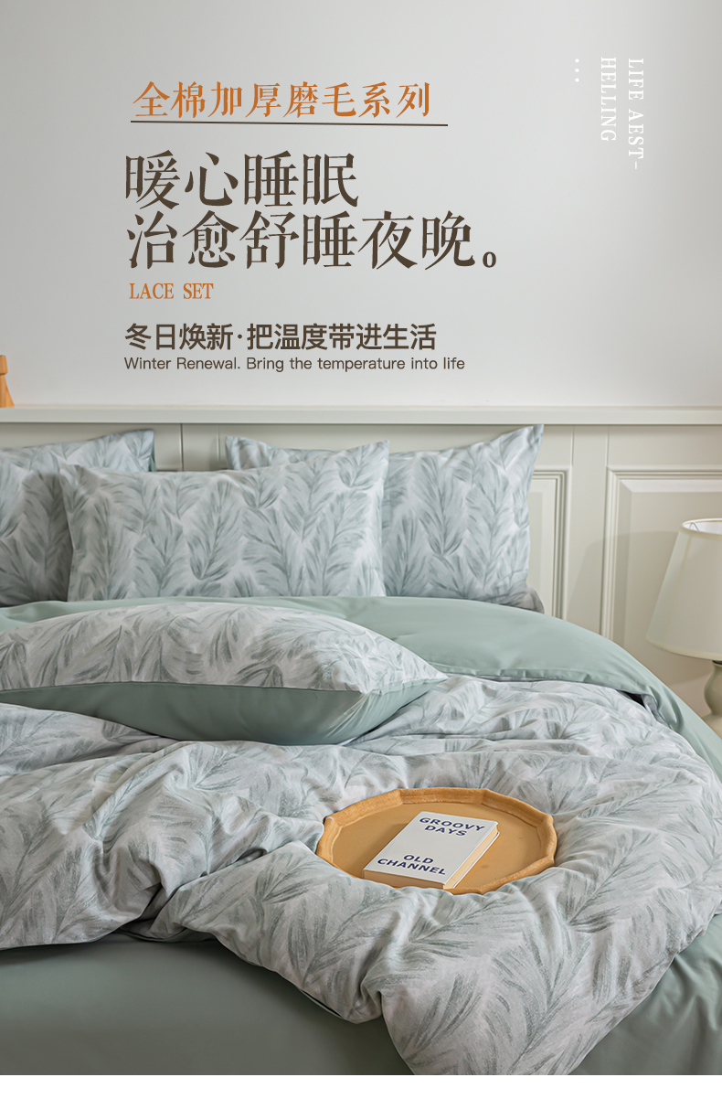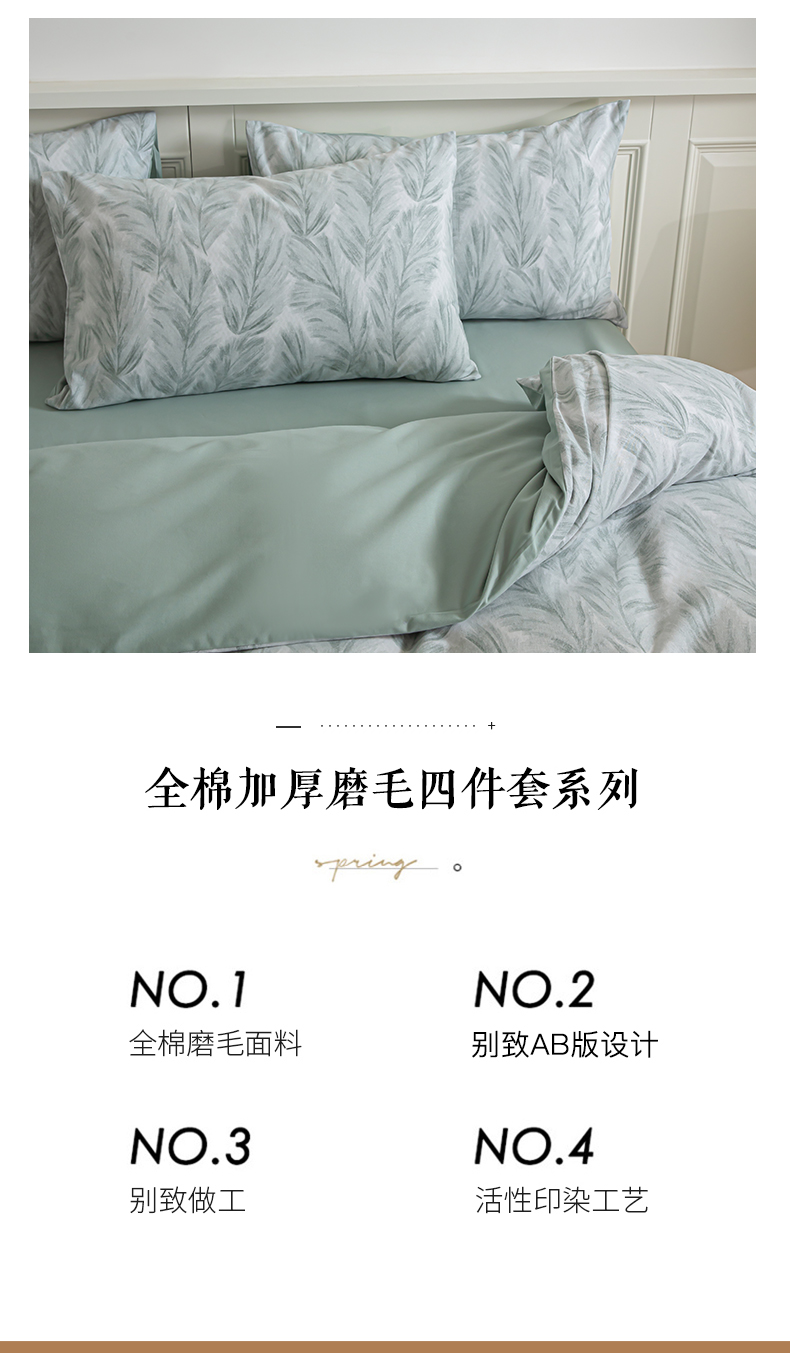 商品名称:绫韵家纺 2025秋冬新款印花全棉磨毛冬季加厚纯棉磨毛三件套四件套系列 羽裳-绿