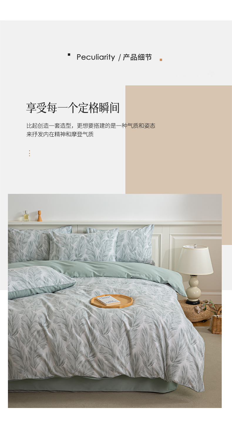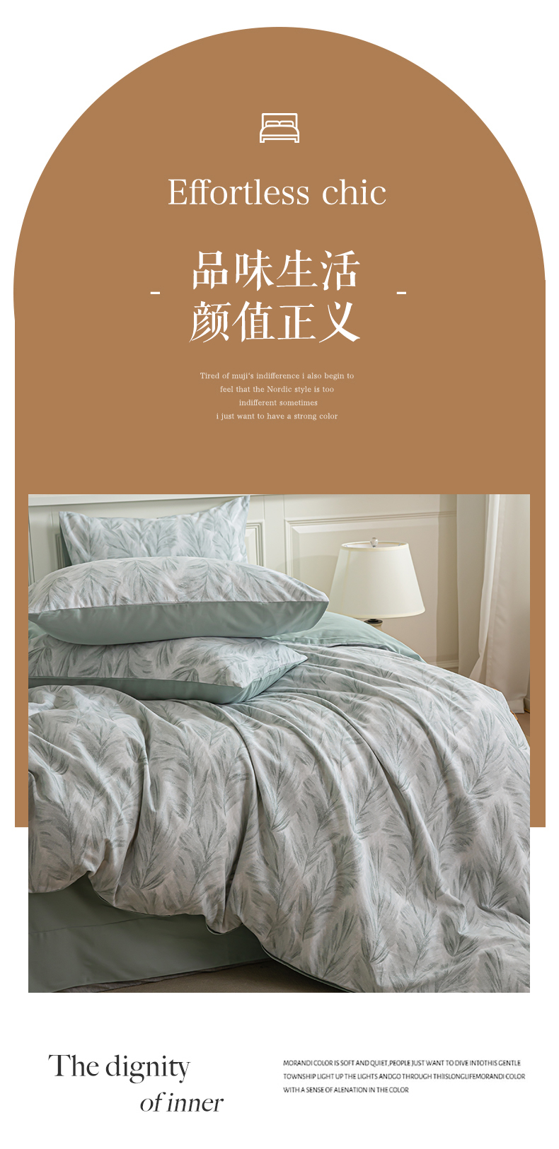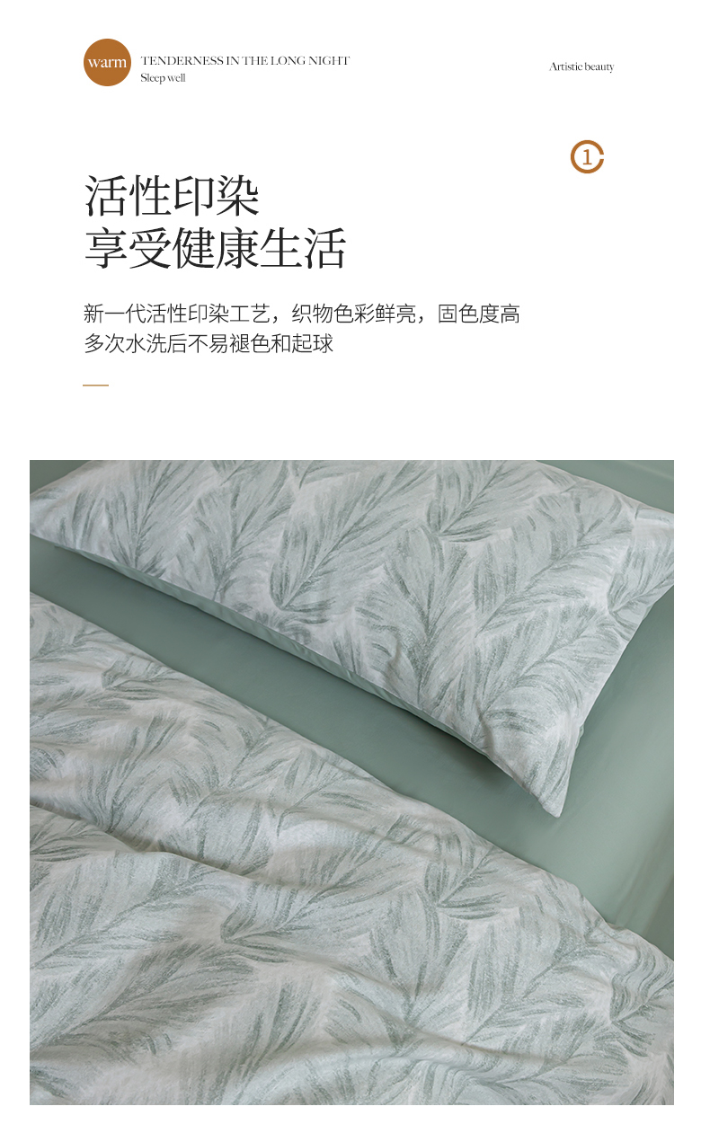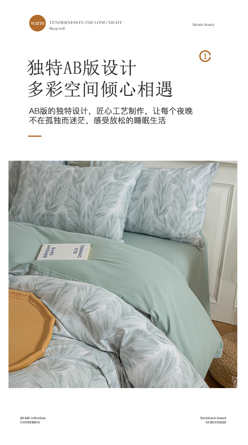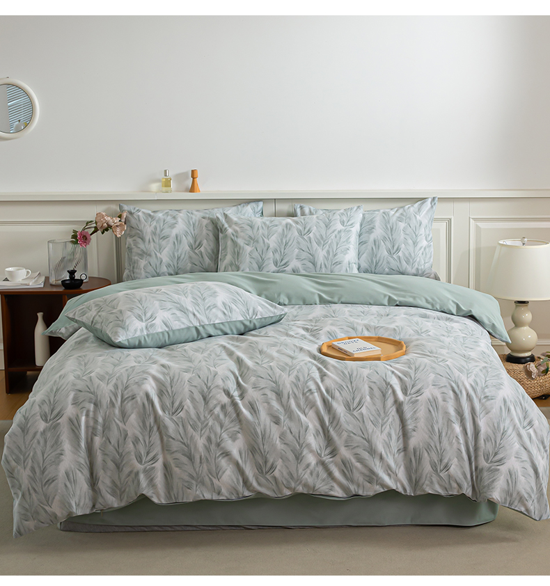 商品名称:绫韵家纺 2025秋冬新款印花全棉磨毛冬季加厚纯棉磨毛三件套四件套系列 羽裳-绿