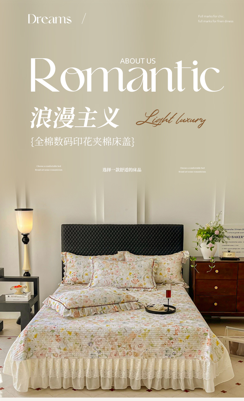 商品名称:(总)胜权家纺 2025秋冬新款全棉法式13372数码印花夹棉床盖单品系列