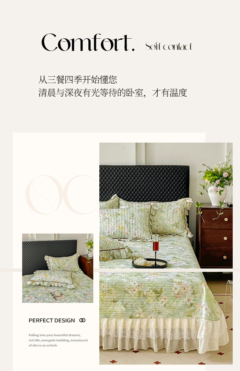 (总)胜权家纺 2025秋冬新款全棉法式13372数码印花夹棉床盖四件套系列,花非花粉,花非花绿,花海绿,锦绣繁华粉,锦绣繁华绿,妙颜粉