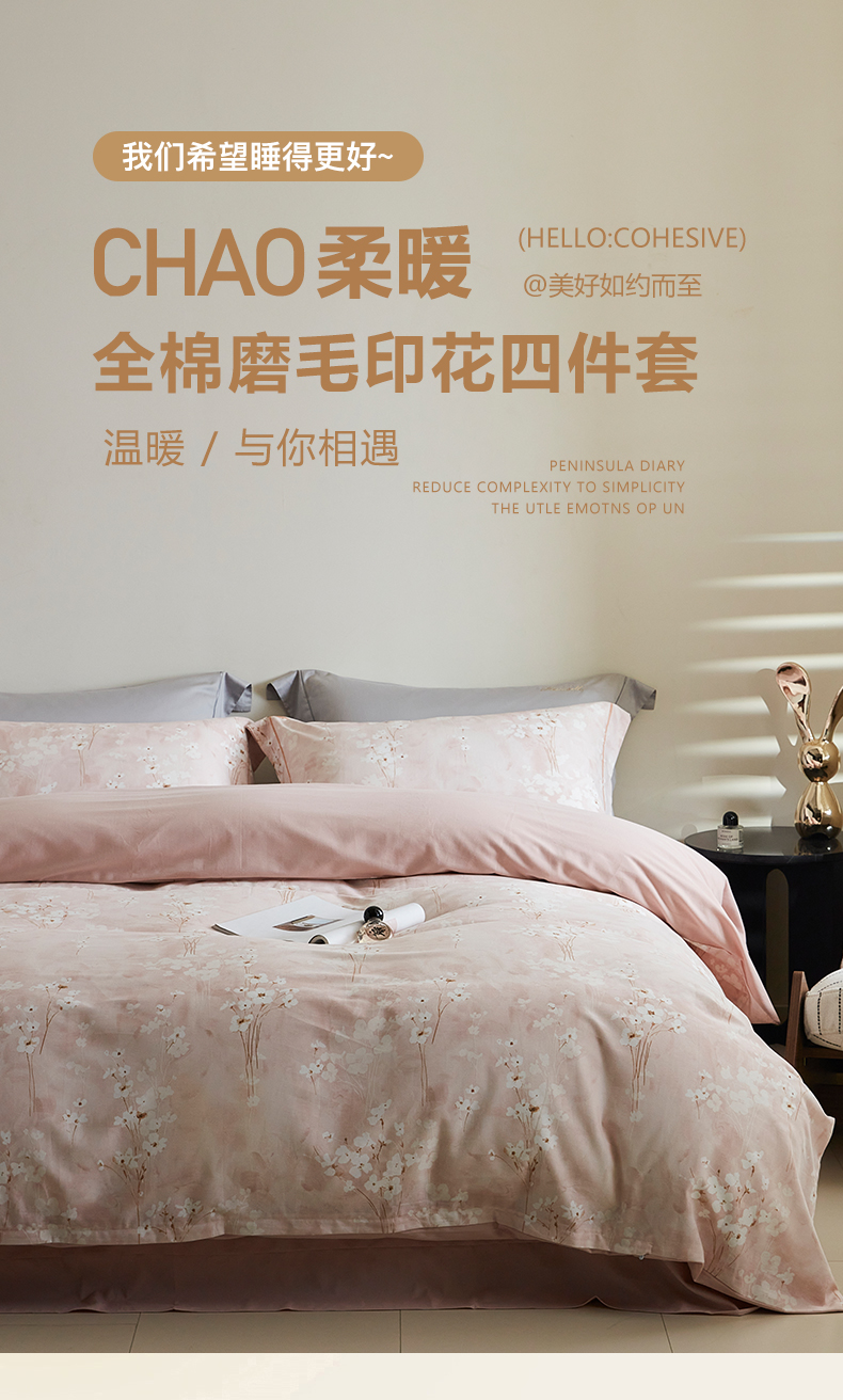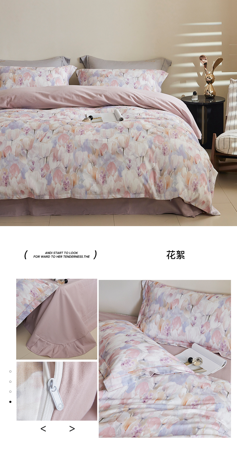 当前位置: 91家纺网 > 商品网购 > 床品套件 > 四件套 > 全棉普通四件套 > 嘉汀兰家居 2025新款全棉纯棉数码印花生态磨毛四件套 粉黛轻妆