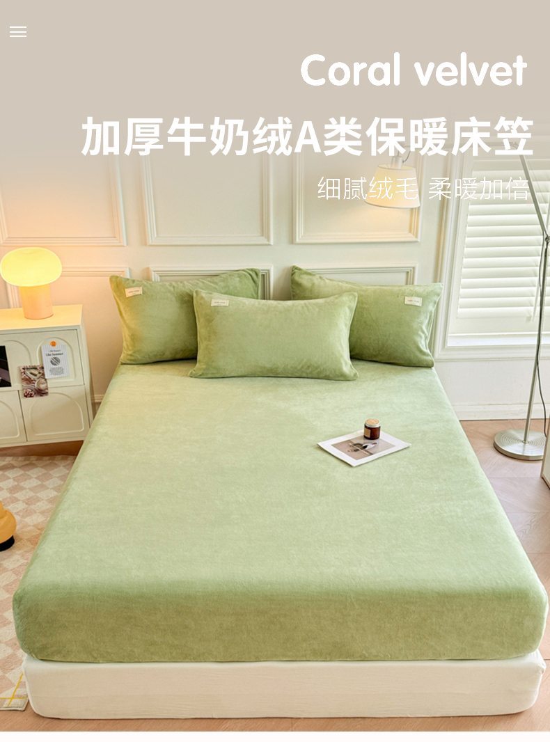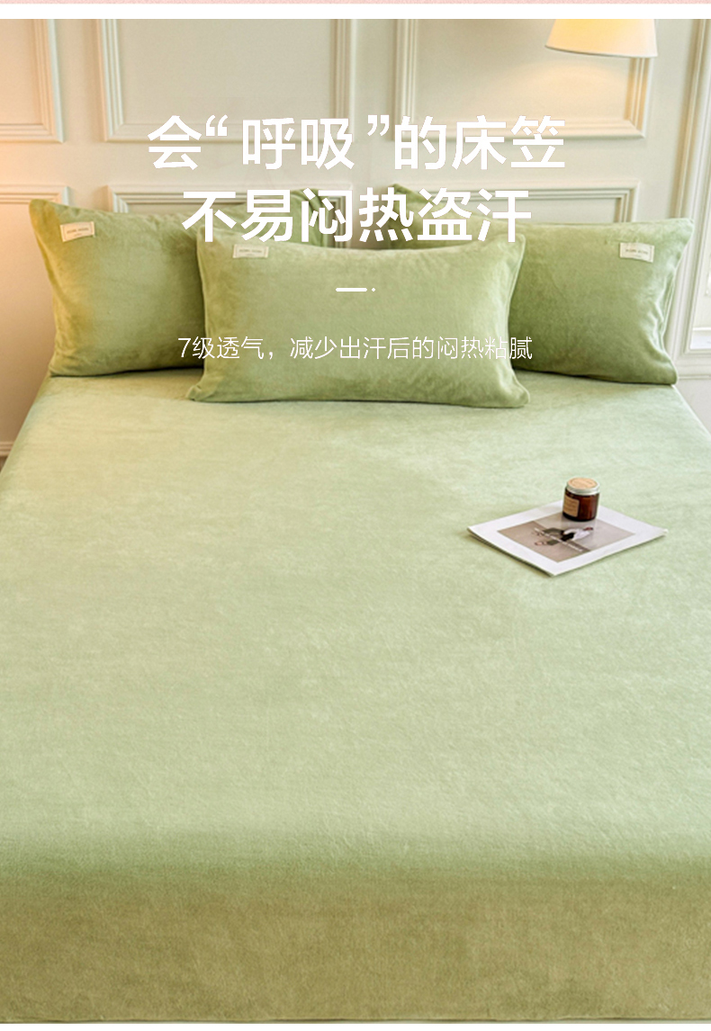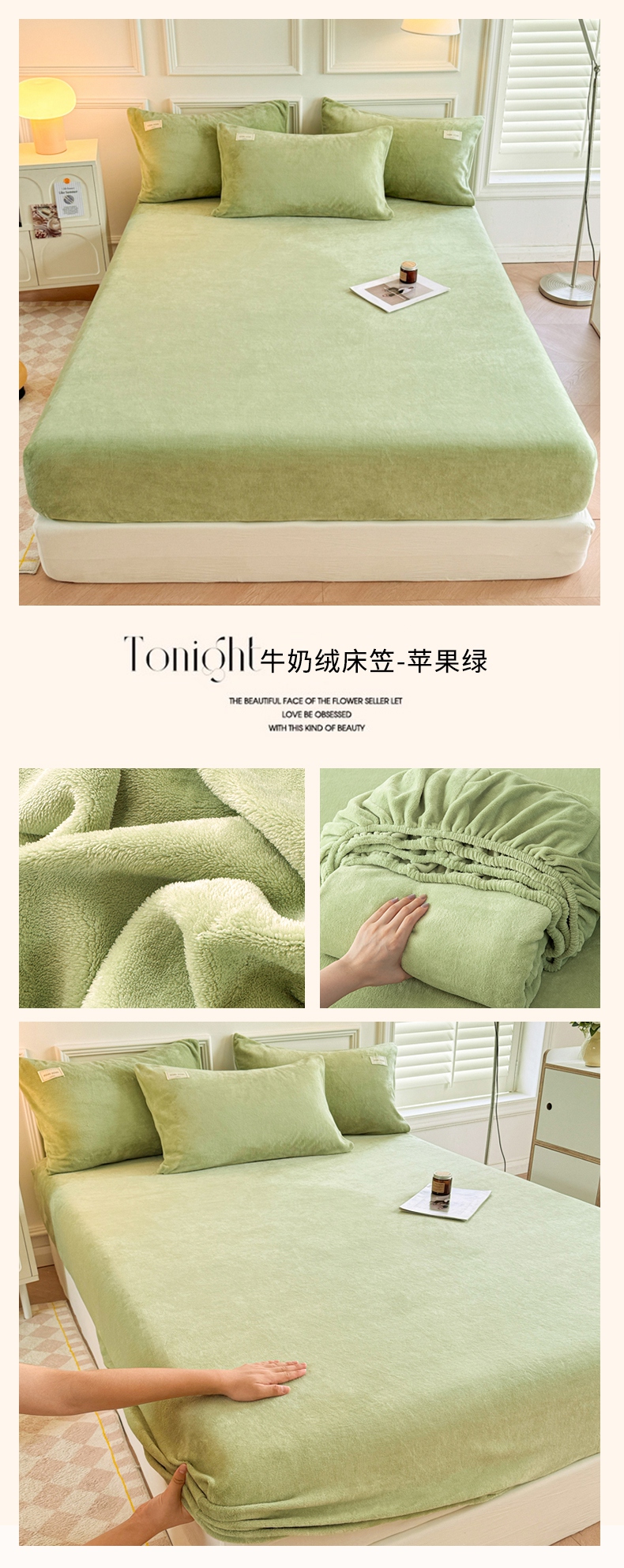 • 91家纺网 家纺一手货源 找家纺 眠博士 2025新款简约牛奶绒纯色单床笠 牛奶绒床笠-苹果绿