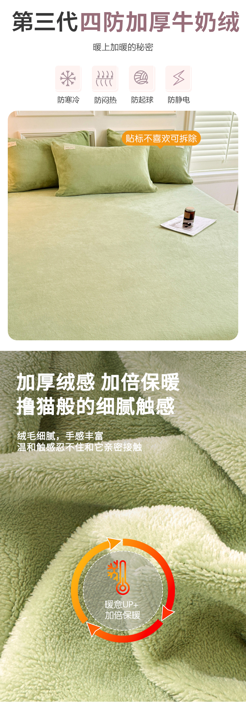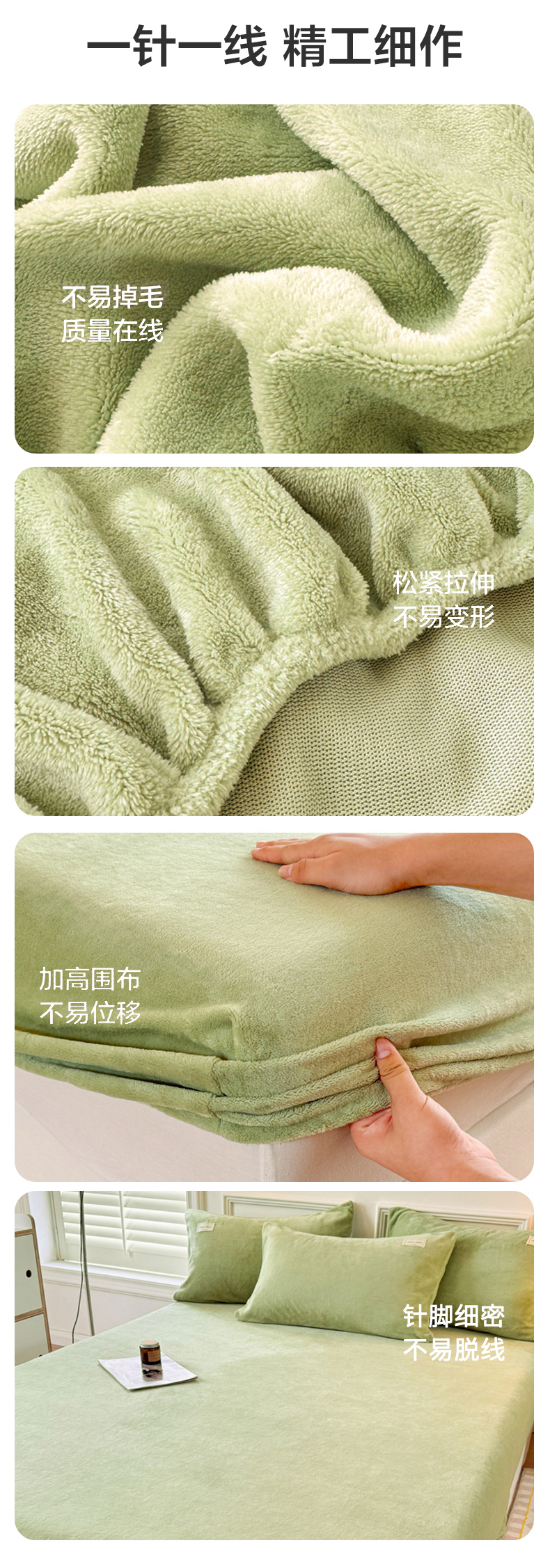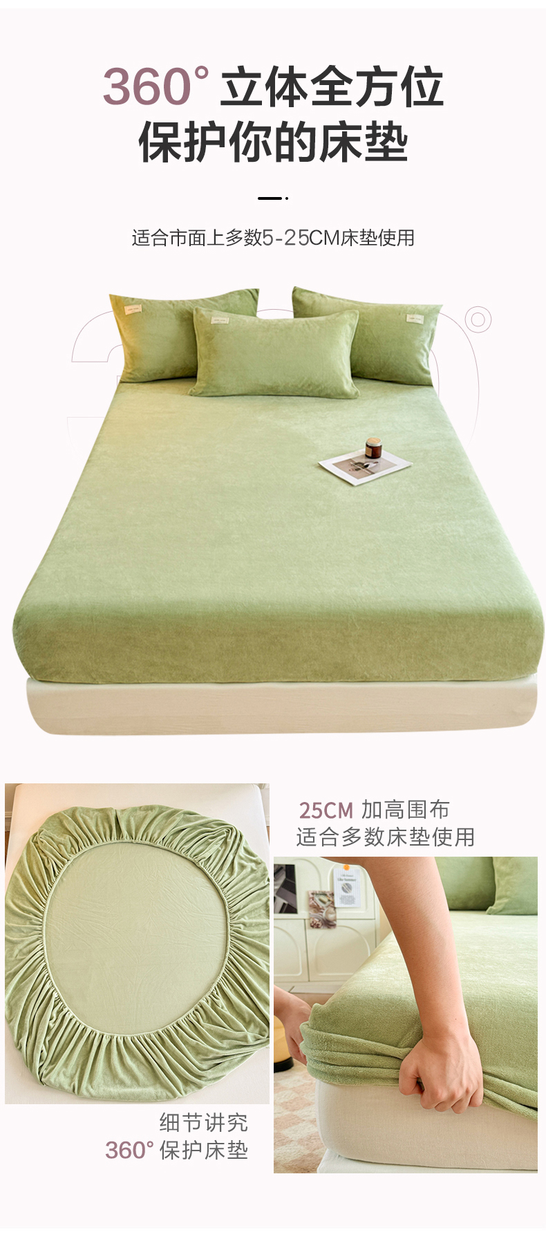 • 91家纺网 家纺一手货源 找家纺 眠博士 2025新款简约牛奶绒纯色单床笠 牛奶绒床笠-苹果绿