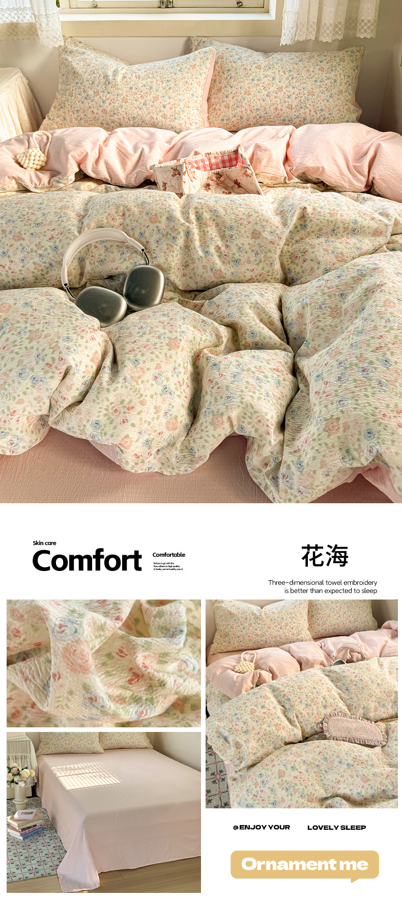当前位置: 91家纺网 > 商品网购 > 床品套件 > 四件套 > 化纤活性四件套 > 优兰朵 2025新款超柔云感木棉印花小清新四件套 花海