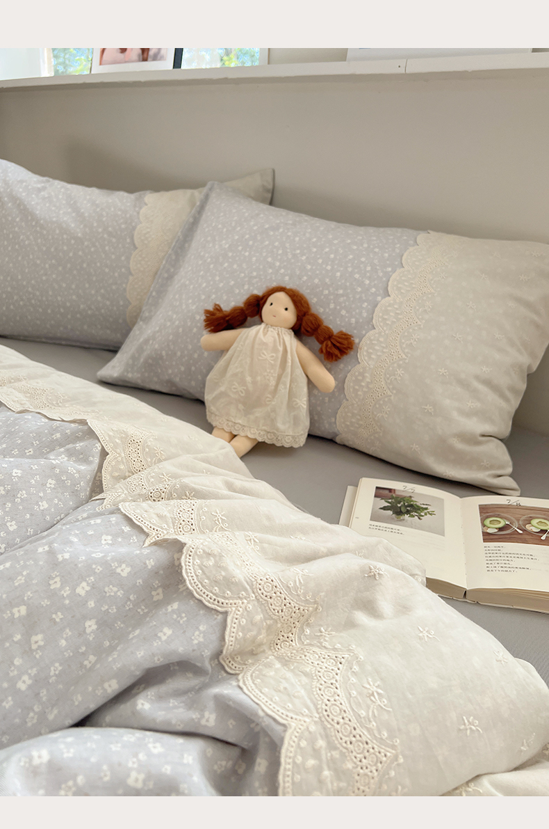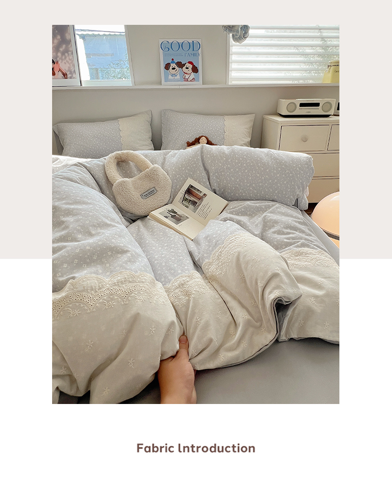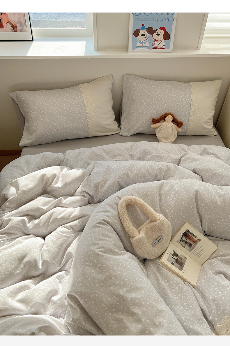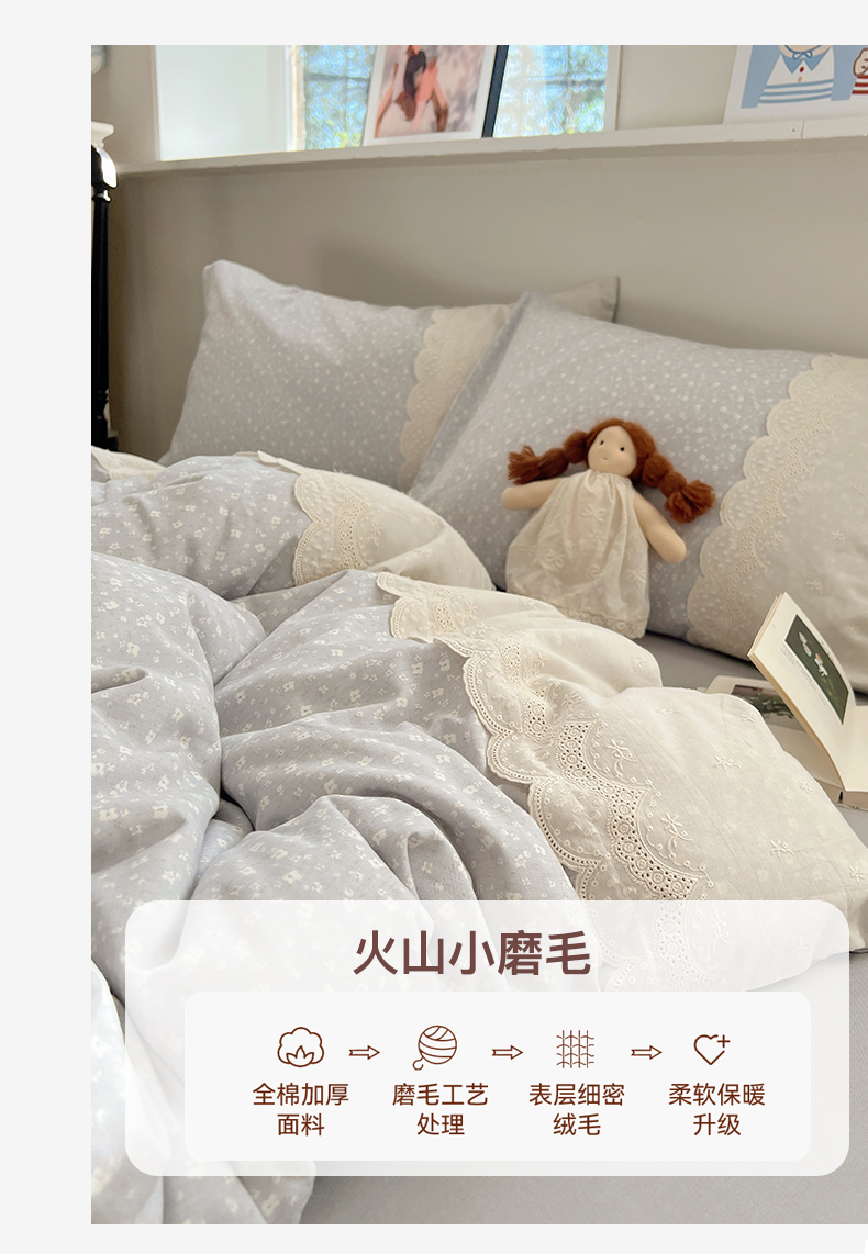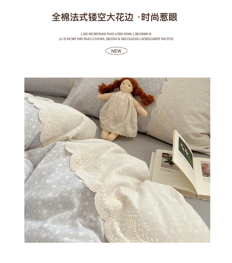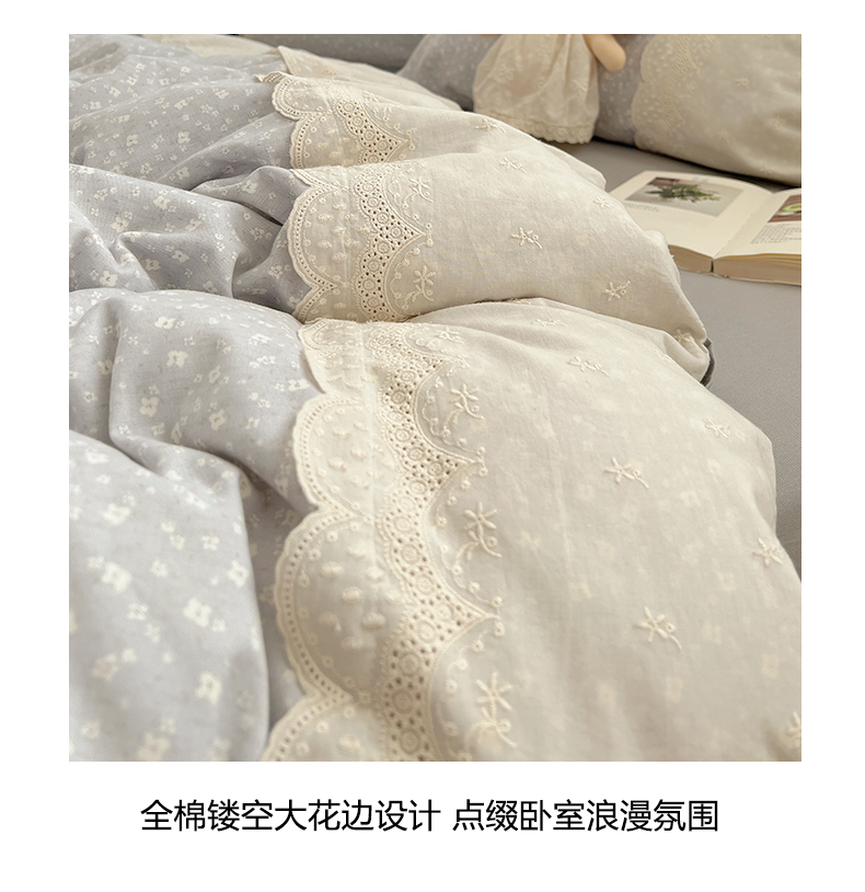 当前位置: 91家纺网 > 商品网购 > 床品套件 > 四件套 > 普通磨毛四件套 > XIWEN-希文家纺 2025新款全棉淑女花边数码印花磨毛四件套 小确幸-灰