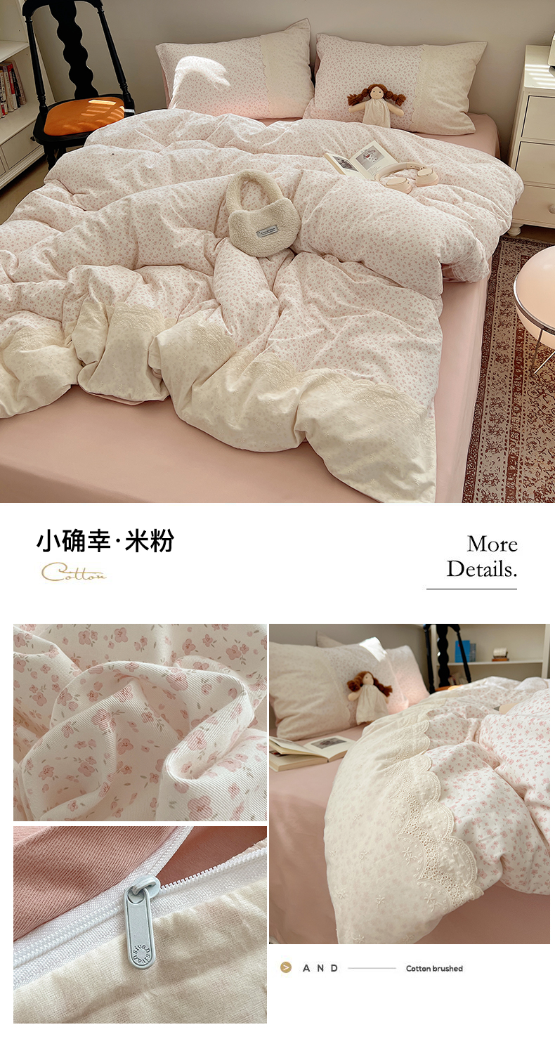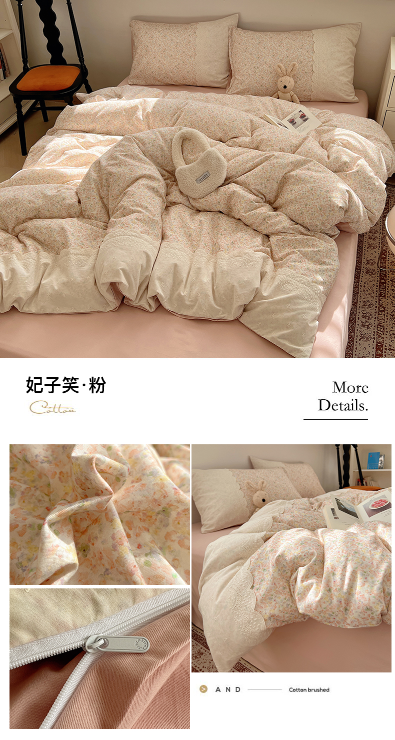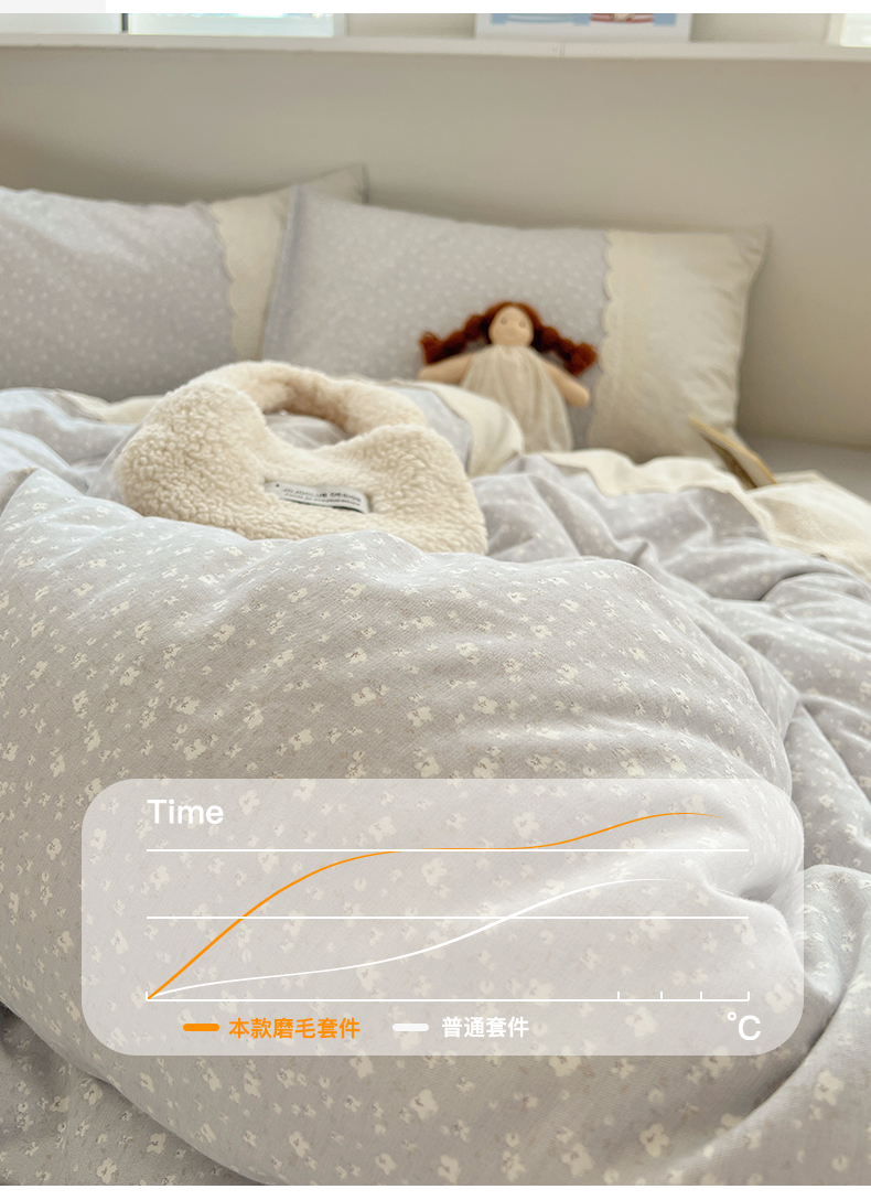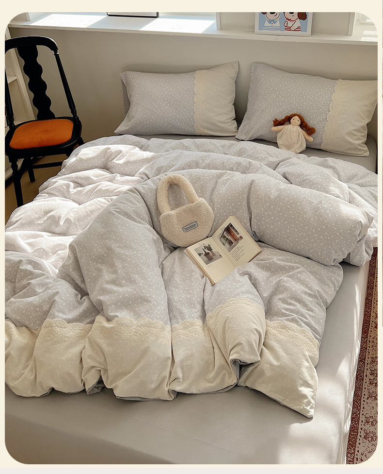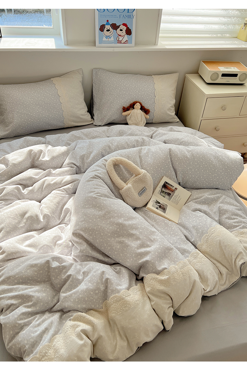 当前位置: 91家纺网 > 商品网购 > 床品套件 > 四件套 > 普通磨毛四件套 > XIWEN-希文家纺 2025新款全棉淑女花边数码印花磨毛四件套 小确幸-灰