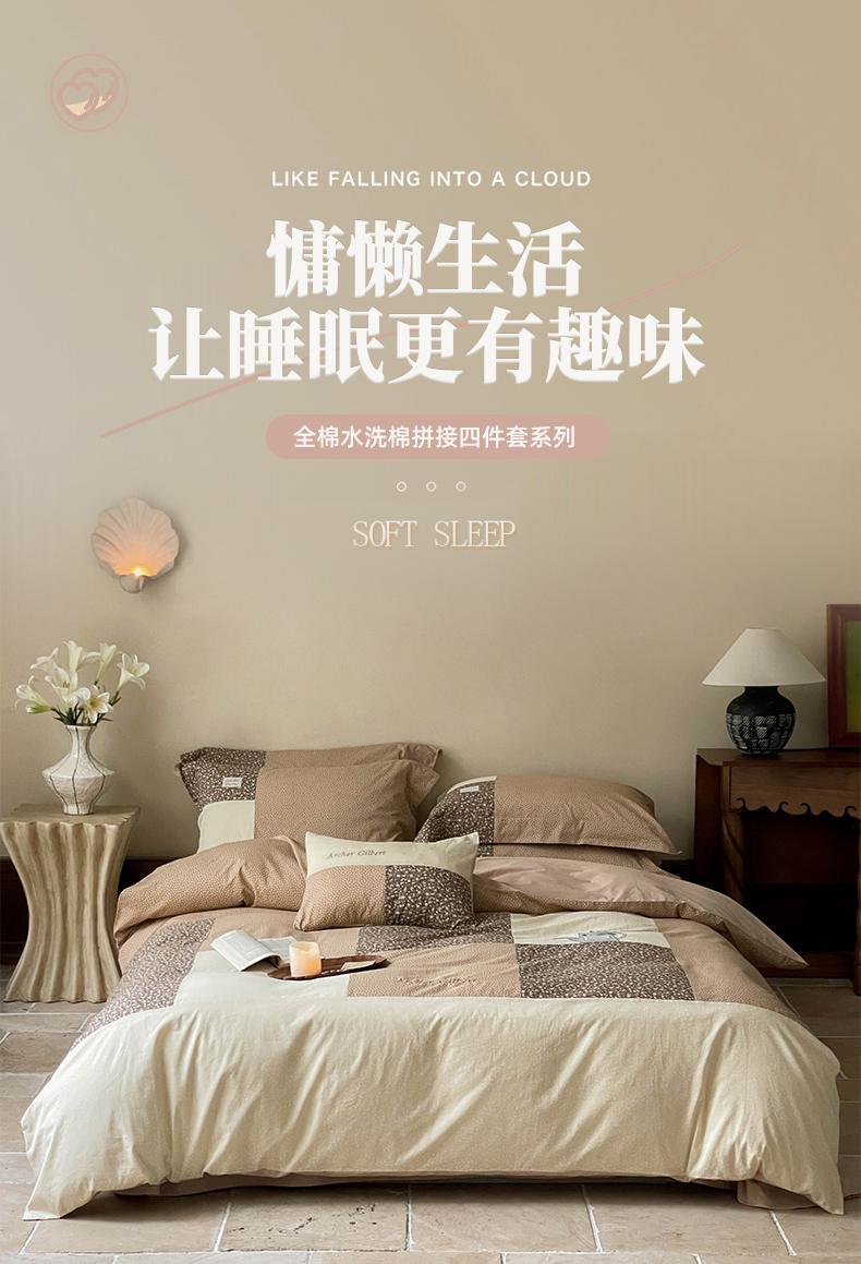 当前位置: 91家纺网 > 商品网购 > 床品套件 > 四件套 > 全棉普通四件套 > FORTWO家纺原创设计(FOR TWO家纺) 2025新款全棉纯棉百家布水洗棉印花绣花拼接款四件套 美拉德咖