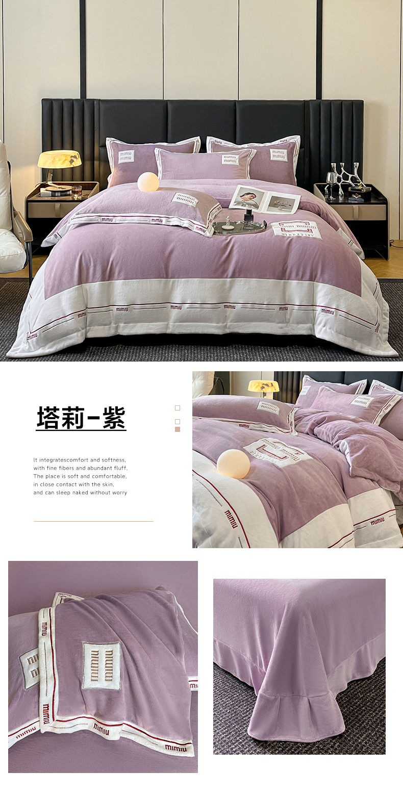 (总)苹果星家纺 2025新款高克重纯色牛奶绒刺绣四件套-奢香夫人,奢香夫人-粉,奢香夫人-杏,奢香夫人-紫,奢香夫人-蓝