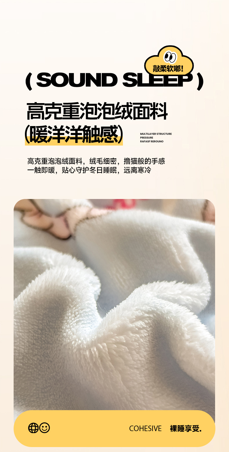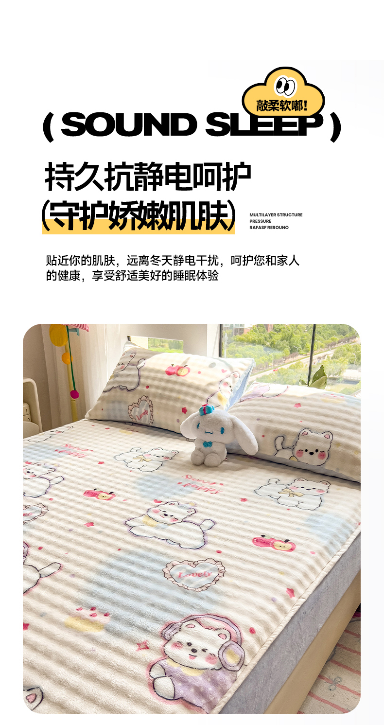 • 91家纺网 家纺一手货源 找家纺 摩妮卡 2025新款加厚牛奶绒泡泡绒床笠三件套 音乐猫咪