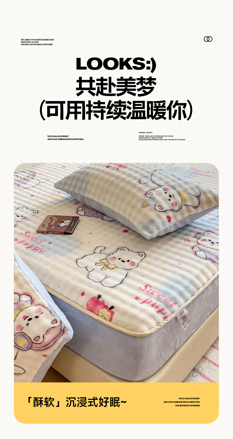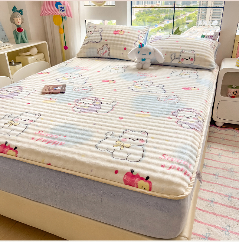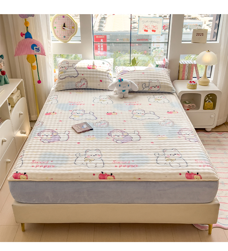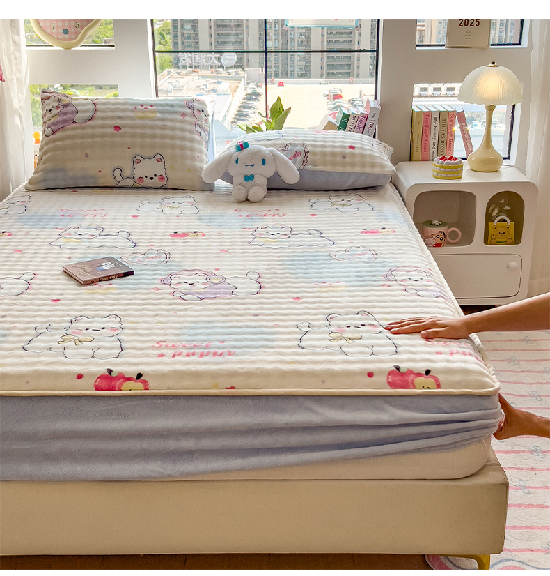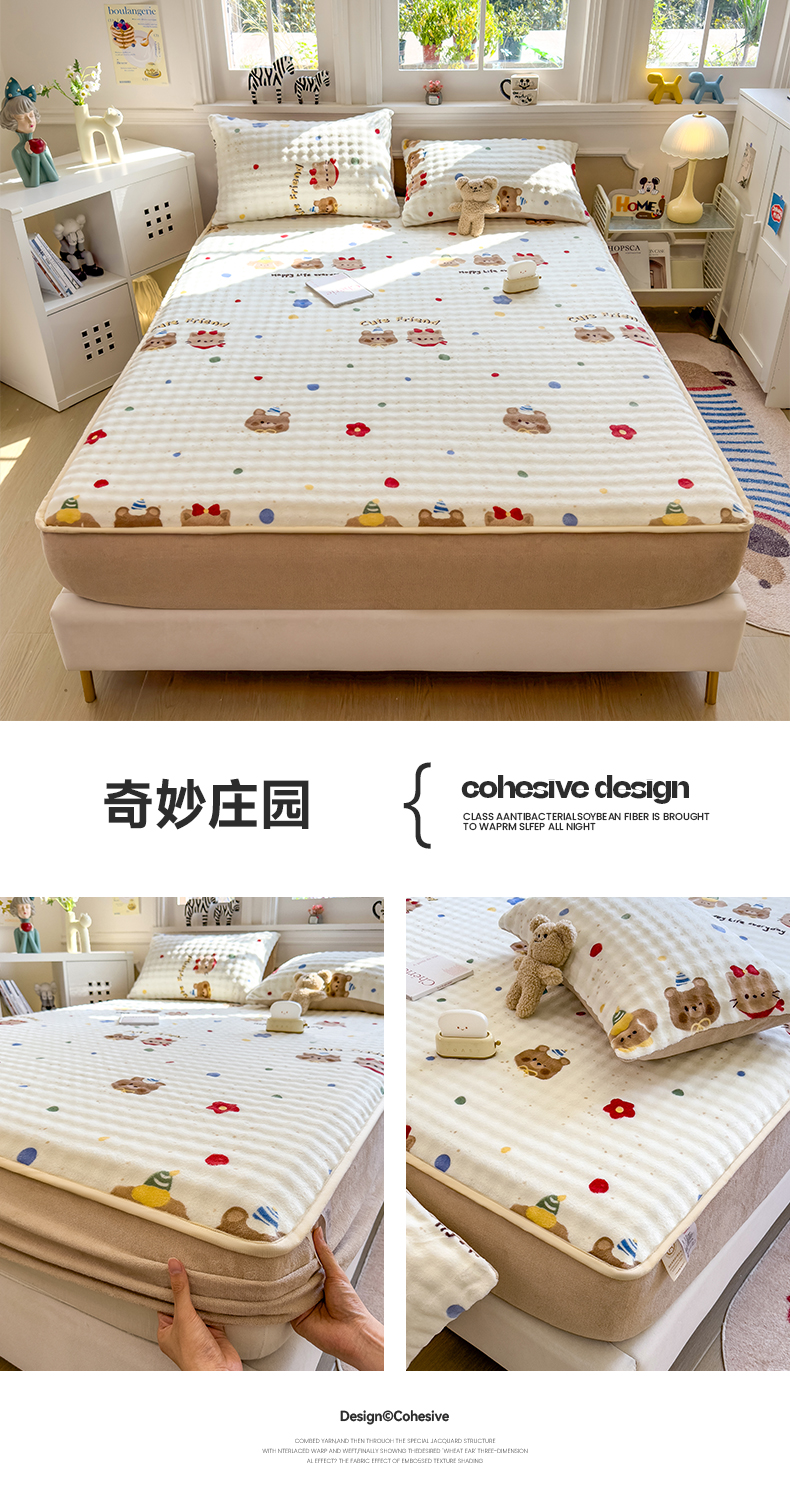(总)摩妮卡 2025新款加厚保暖牛奶绒夹棉绣花床垫三件套,呆呆熊-蓝,呆呆熊-黄,呆呆熊-咖,Kitty猫-白,Kitty猫-粉,Kitty猫-紫